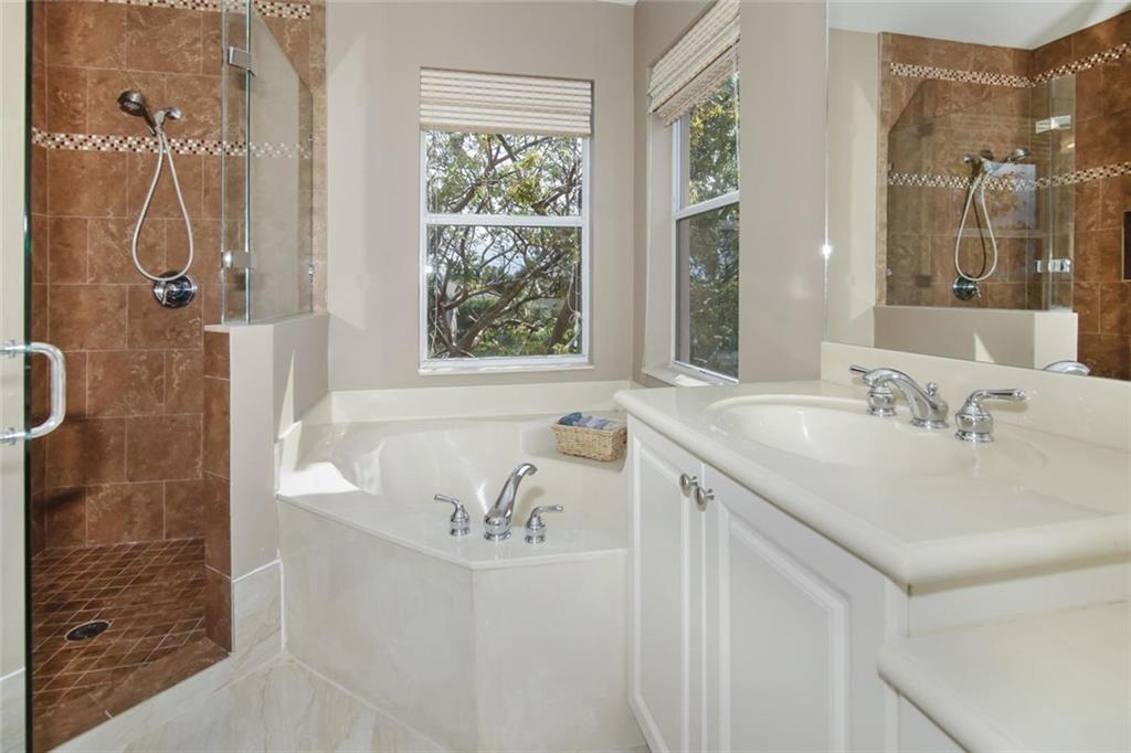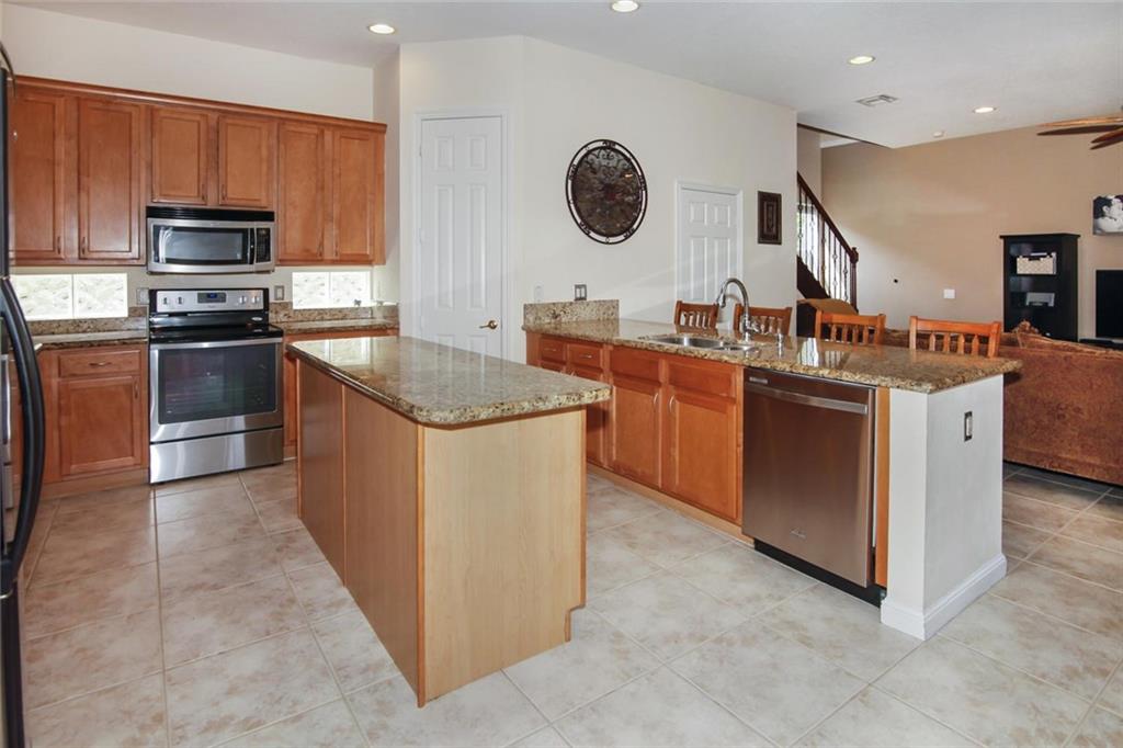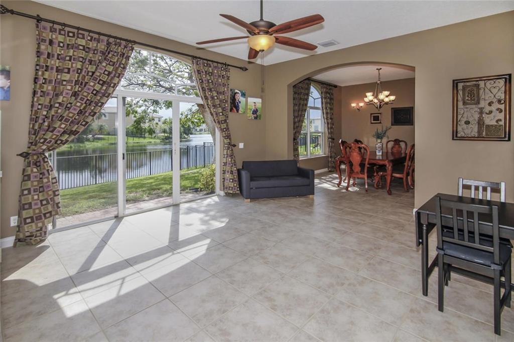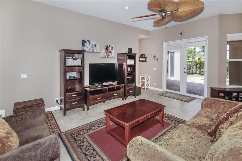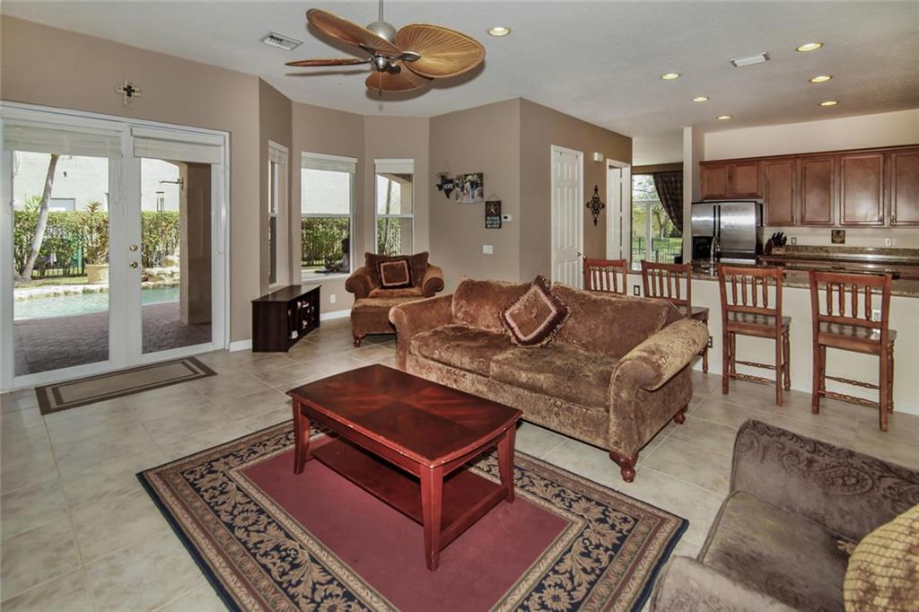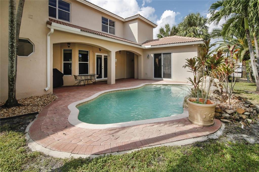 Waterfront Courtyard Home on oversize lot w/pool. Main House is 2609 sq ft , 4 bed, 2.5 bath, 1st floor living, dining, family, open granite, wood, stainless steel kitchen, ½ bath, 2nd floor: Split plan, master suite, walk in closet, bath, 3 bedrooms share hall bath. Separate Guest house is 304 sq ft w/full bath & AC. Home warranty included.
