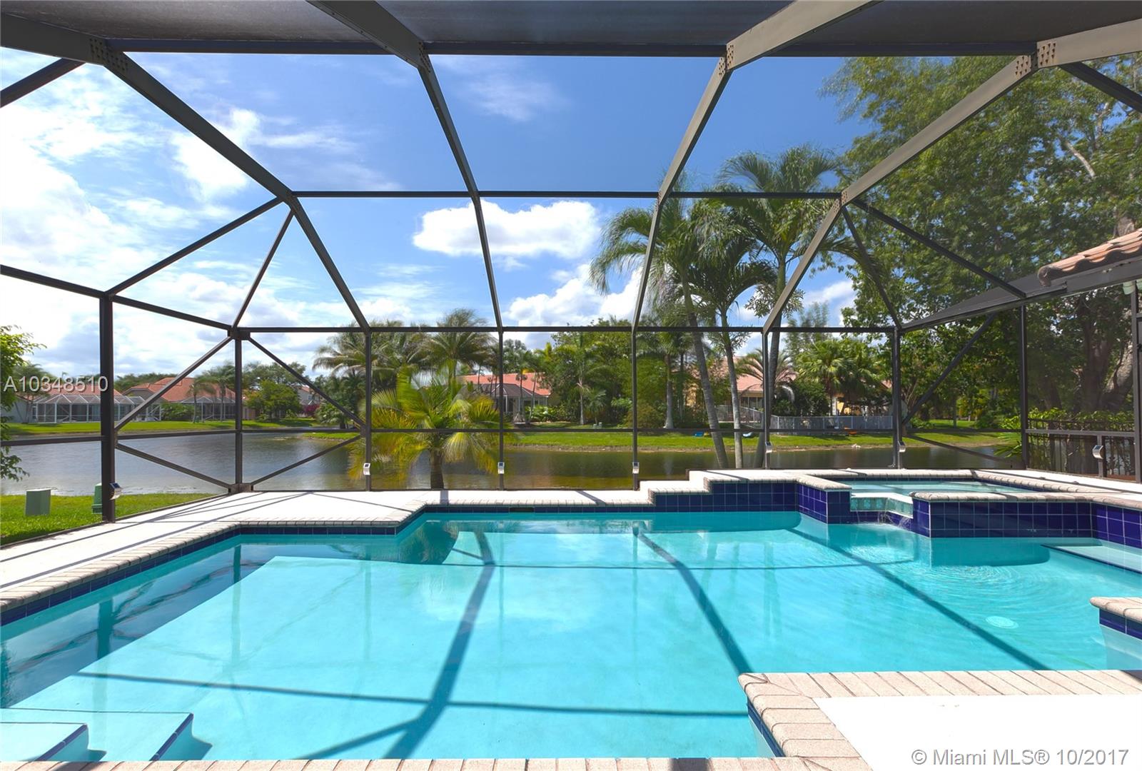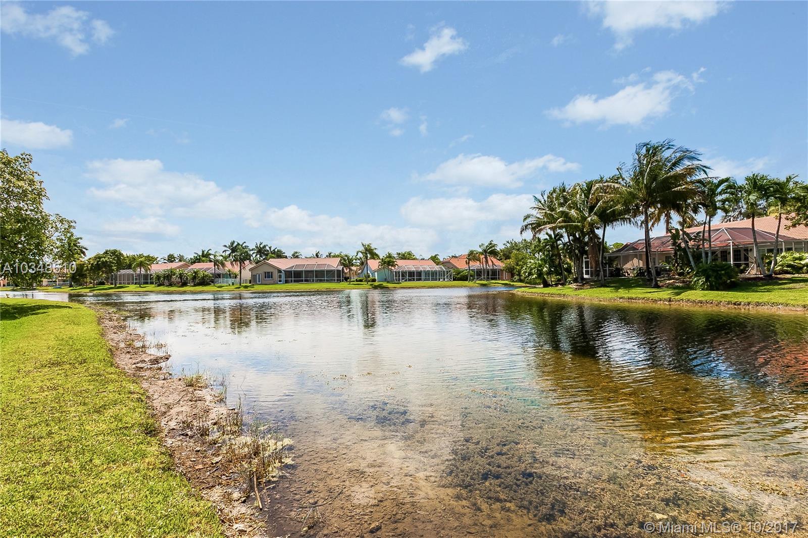 Charming one story home set on private waterfront lot with wide lake views in tree-lined Sunset Springs. Heated and screened geometric pool and spa take advantage of the beautiful vistas. Light and bright interior features skylights and vaulted ceilings. Interior boasts kitchen with wood cabinets, granite counter tops and stainless steel appliances, large neutral tile and updated baths. Recently painted inside and out! Upgraded front yard landscaping. Roof was installed 2014. Full house generator! Community tennis court and play area steps away!