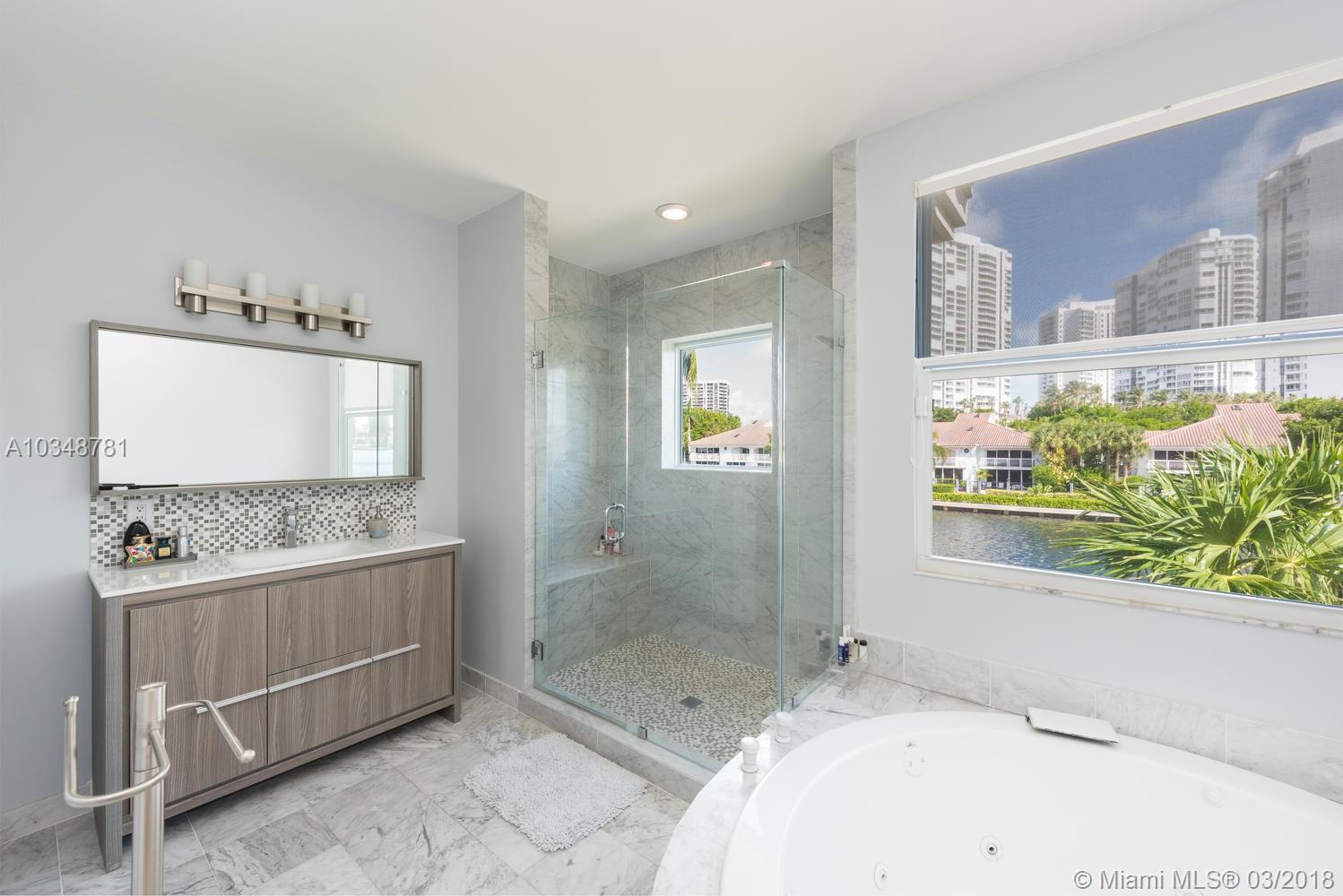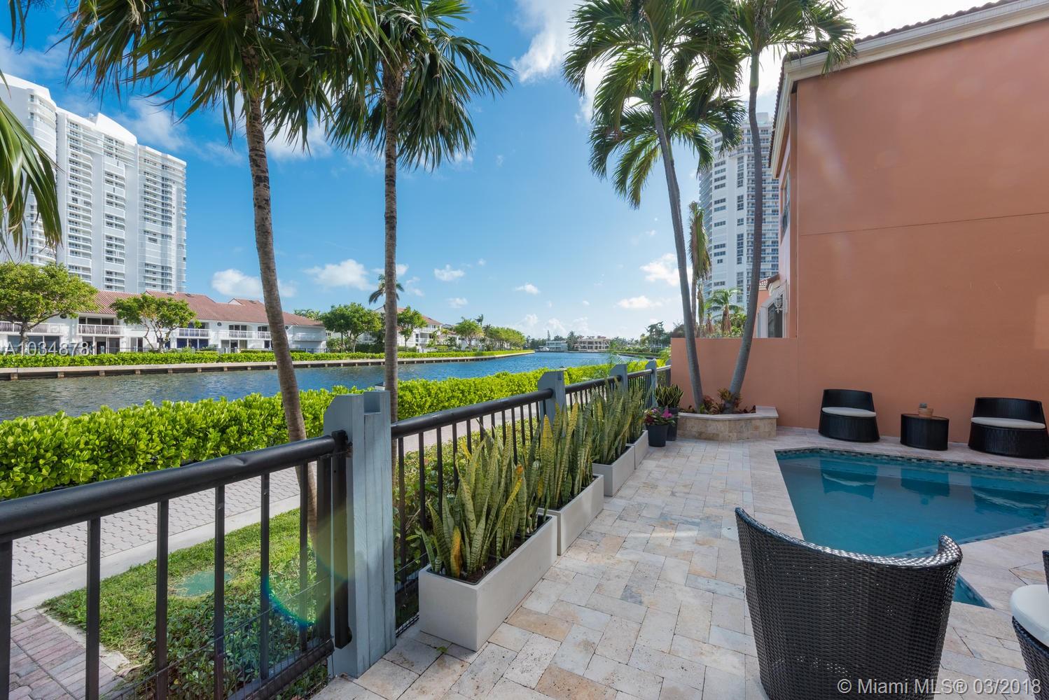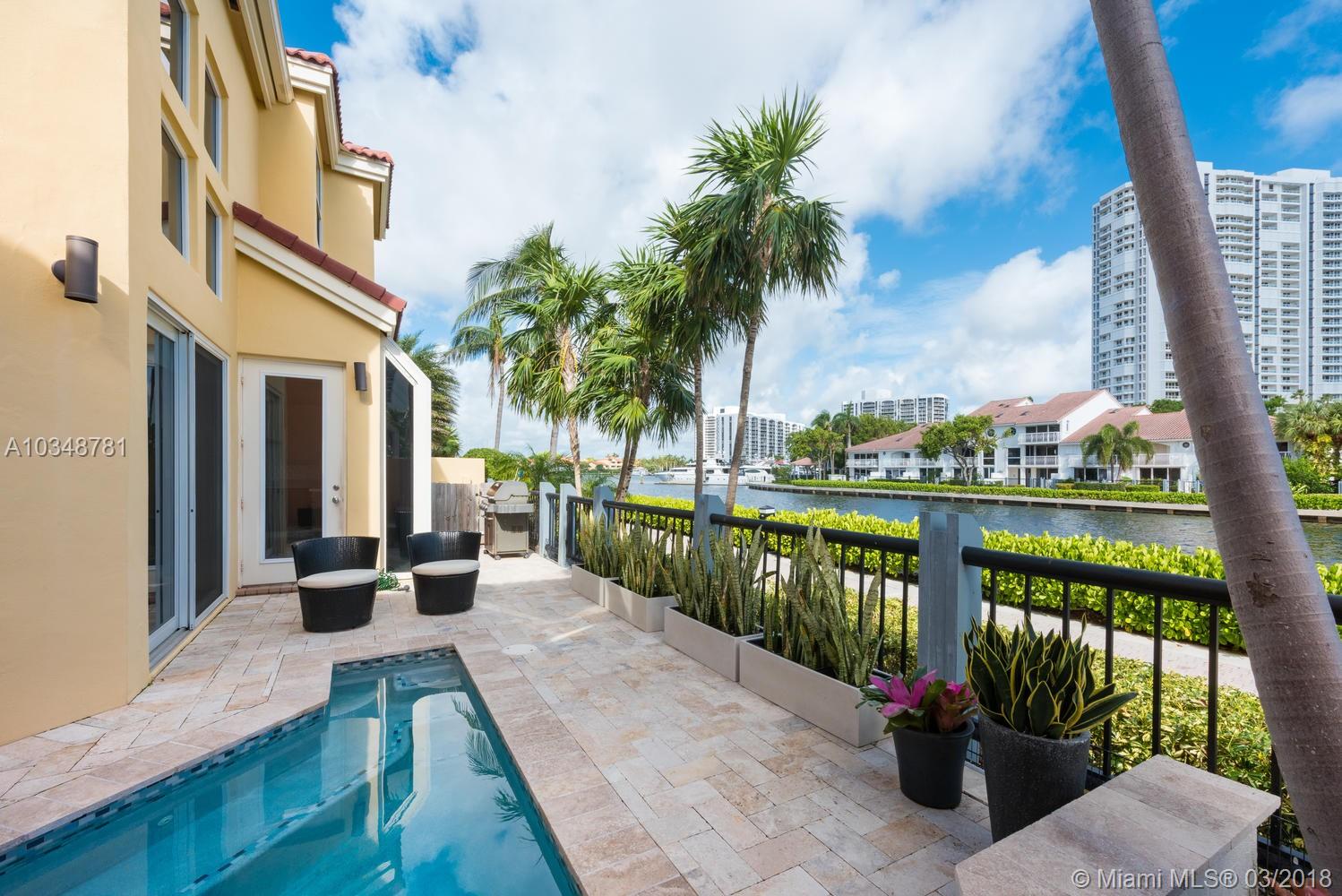 Rare opportunity to own the only waterfront home currently available in the 24/7 guard gated community of Island Way. This 2 story home has premium lot location in between the Waterways marina and the Intracoastal waterway. 4 bedroom 3 bathroom with attached 2 car garage was recently renovated. High ceilings in main living room area with expansive views of the water and boats. Outside patio with travertine tile has plunge pool, dining area and plenty of seating space. Beautifully renovated kitchen with top of the line Jenn-Air appliances. Porcelain tile floors downstairs and wood floors upstairs. Master suite upstairs with spacious bathroom and walk in closets in each upstairs room. Impact windows. Community pool & walking distance to Waterways Shops.