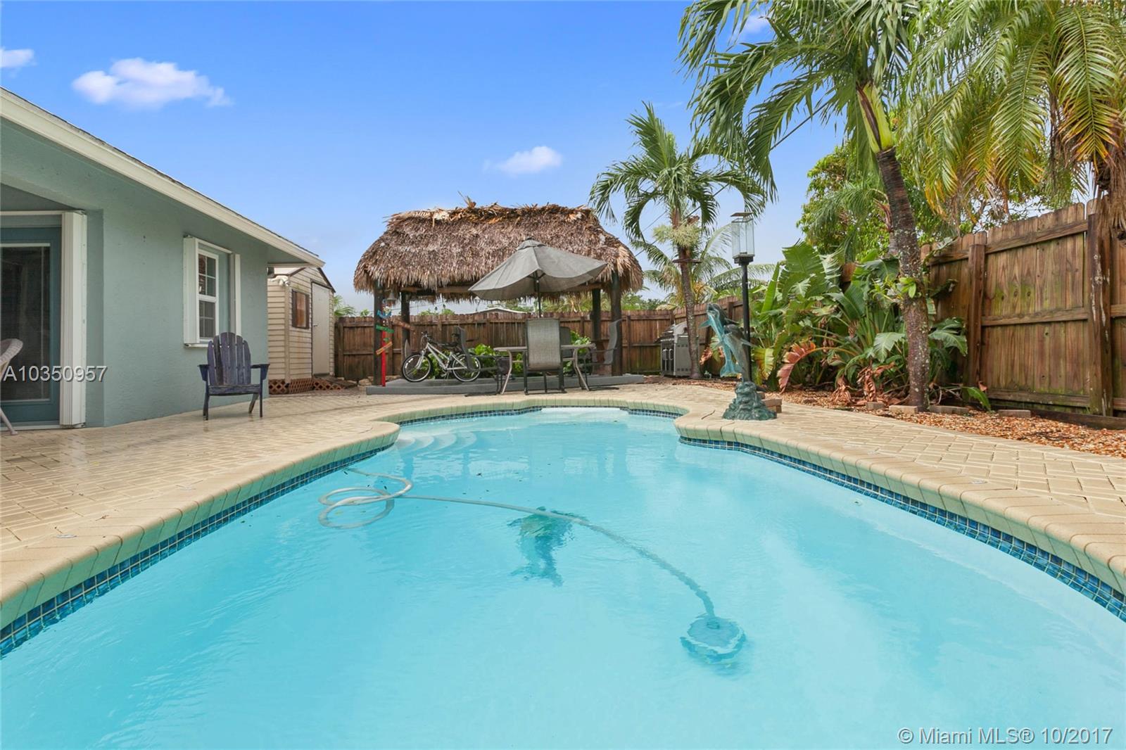 Beautiful 3 bedroom Pool Home located on a quiet street in family oriented Boulevard Estates. Completely Gutted and Remodeled in 2006. This Home boasts a Large Rear Yard with Tiki Hut, In Ground Pool for entertaining friends /family. Updated Kitchen, Stainless Steel Appliances, Granite Counter Tops, Tiled floors/bathrooms throughout, cozy living room with gas fireplace. Owner has added 500 SQFT to Home, Newly Shingled Roof, Storage Shed, Grill. Great home in a great area just adjacent to Pembroke Pines.