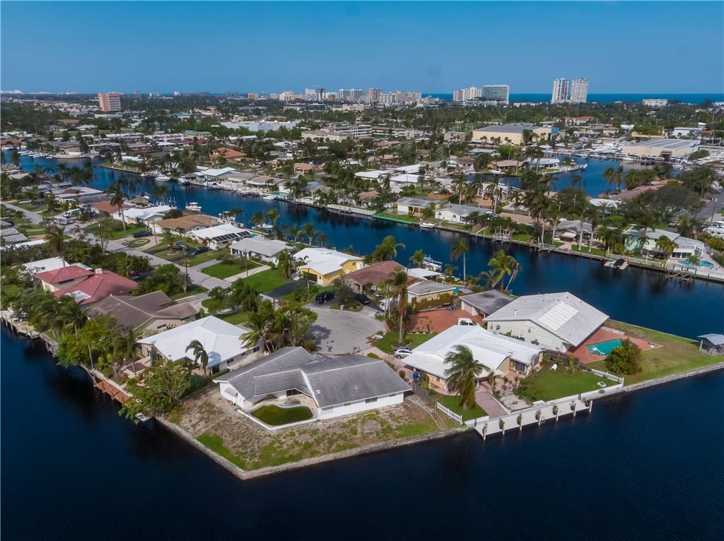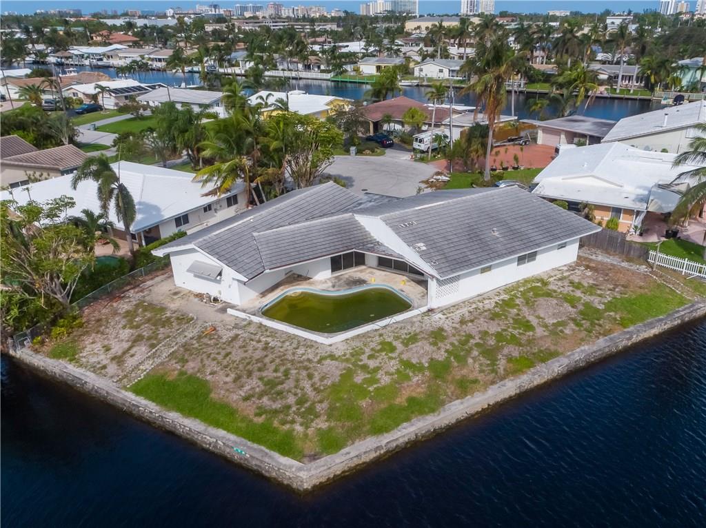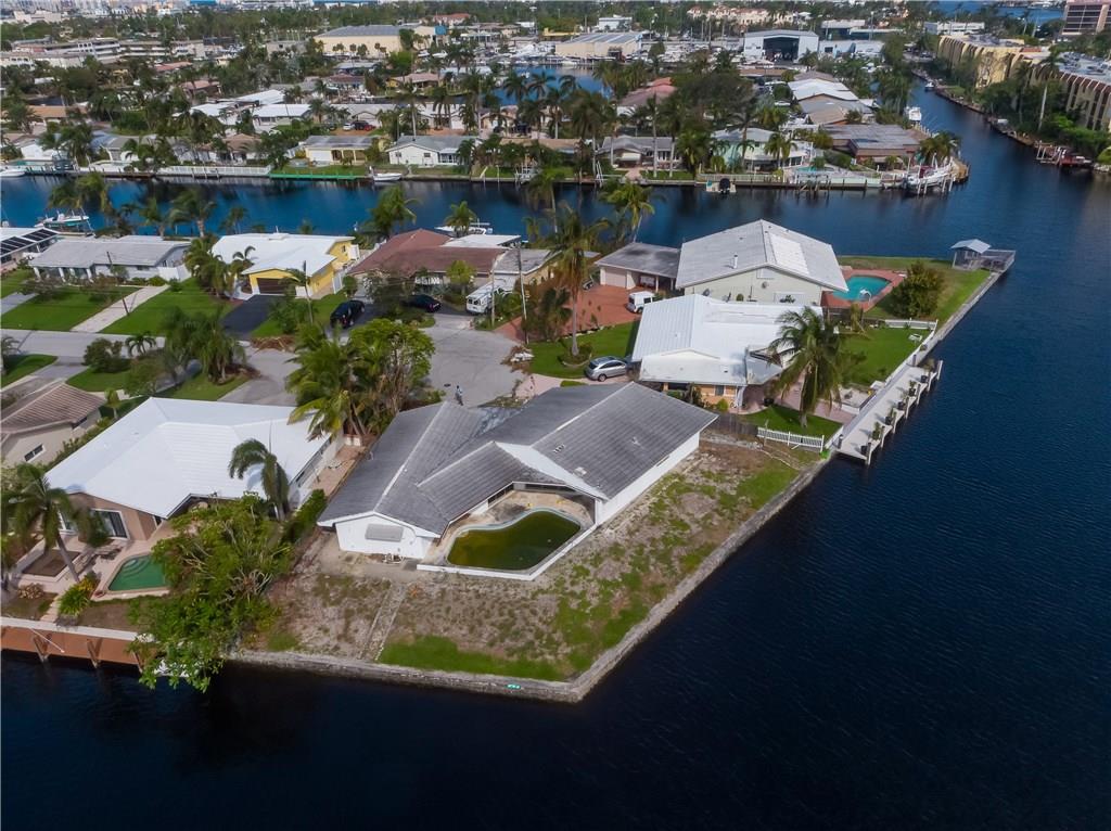 Stellar Point Lot with 161 ft of water frontage on a cul-de-sac in Snug Harbor. The views are expansive and just incredible. This is a steal! Right in the middle of the Pompano Beach CRA new development. You can purchase the lot alone OR Z Construction & Remodeling has plans for a super unique one level open floor plan capturing the infinity edge pool and the water [Lot+New Build: $1.350M].You can build to suit or remodel. Located on a beautiful street close to the beach and entertainment.