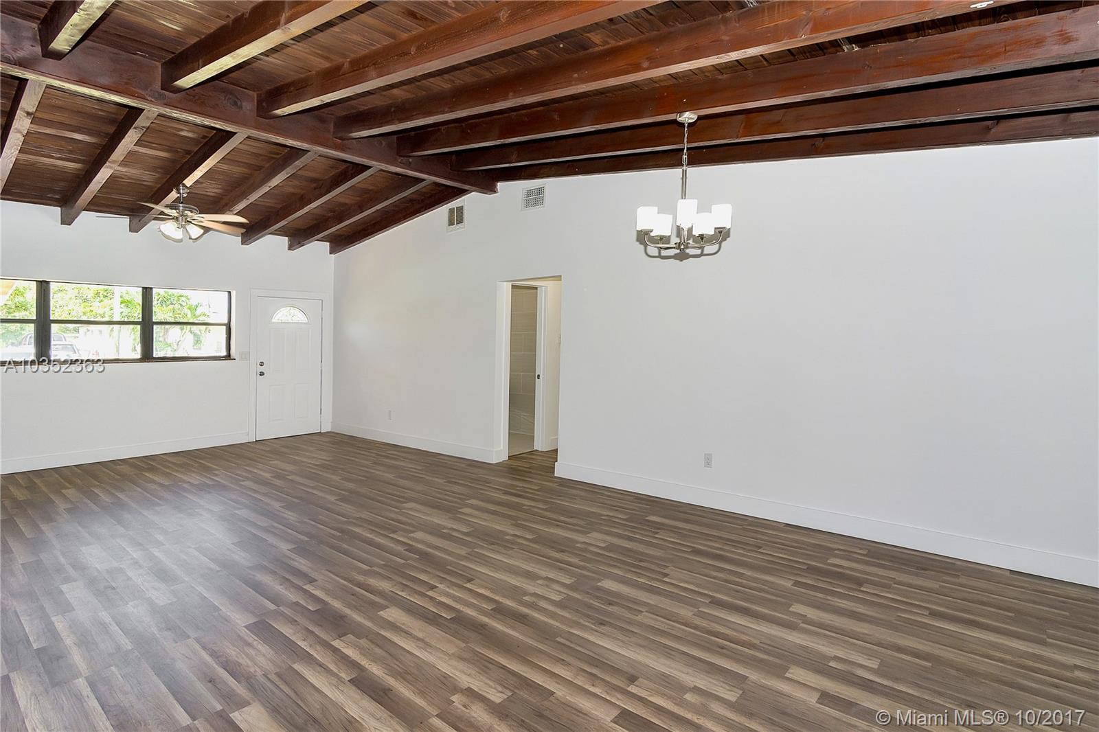 Stunning modern newly renovated 3 Bedrooms, 2 Bathrooms, Bonus room as Den/4th Bedroom, features oversized living area with super high ceiling, open plan family and dining, Features include: Just painted inside and out. Central A/C, Laminate Wood Floor, fully renovated bathrooms, kitchen with beautiful granite counter tops and new stainless steel appliances, LED lighting, new tankless water-heater, Easy access to I95, Palmetto Expressway and Turnpike. Close to shopping, grocery stores, restaurants and more.