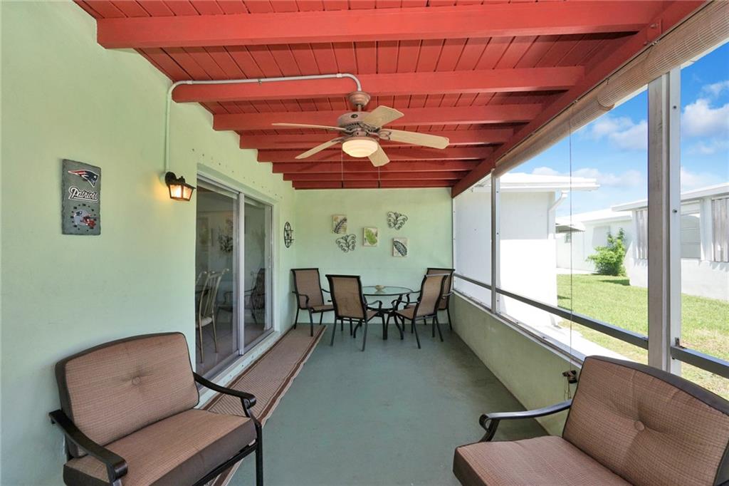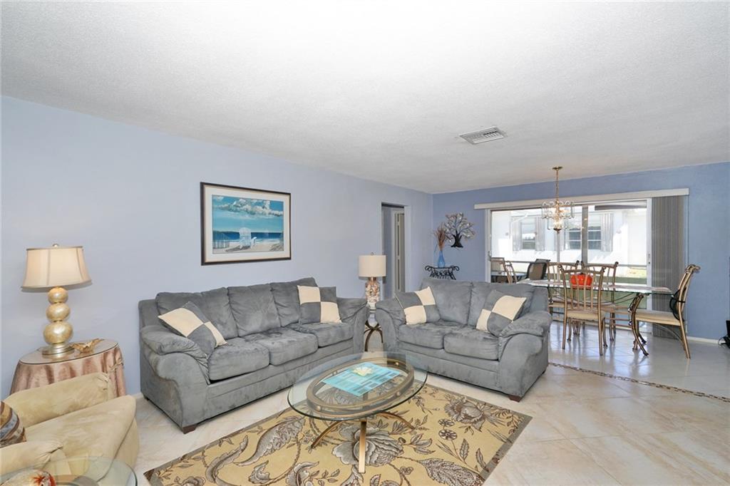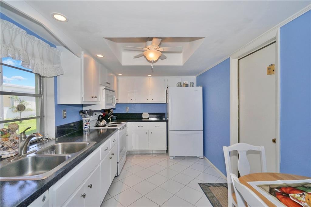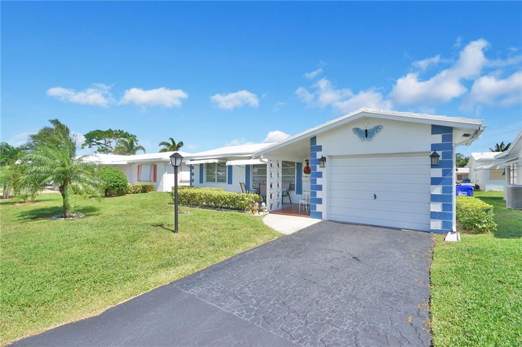 Lovely 2/2 with garage in this sought-after active 55+ community. Neutral tile throughout. Light and bright from the front door to the porch which has exposed beams and is a great place to enjoy your morning coffee. Bathrooms updated . Lots of counter space in the eat-in kitchen. Garage has a work shop area and plenty of storage space. HOA fee includes exterior painting, lawn and sprinkler care. There are two pools and clubhouses, exercise room, ping pong, and so much more. Move-in ready!