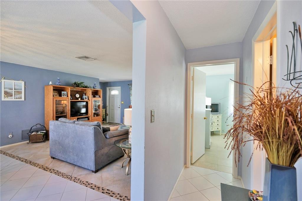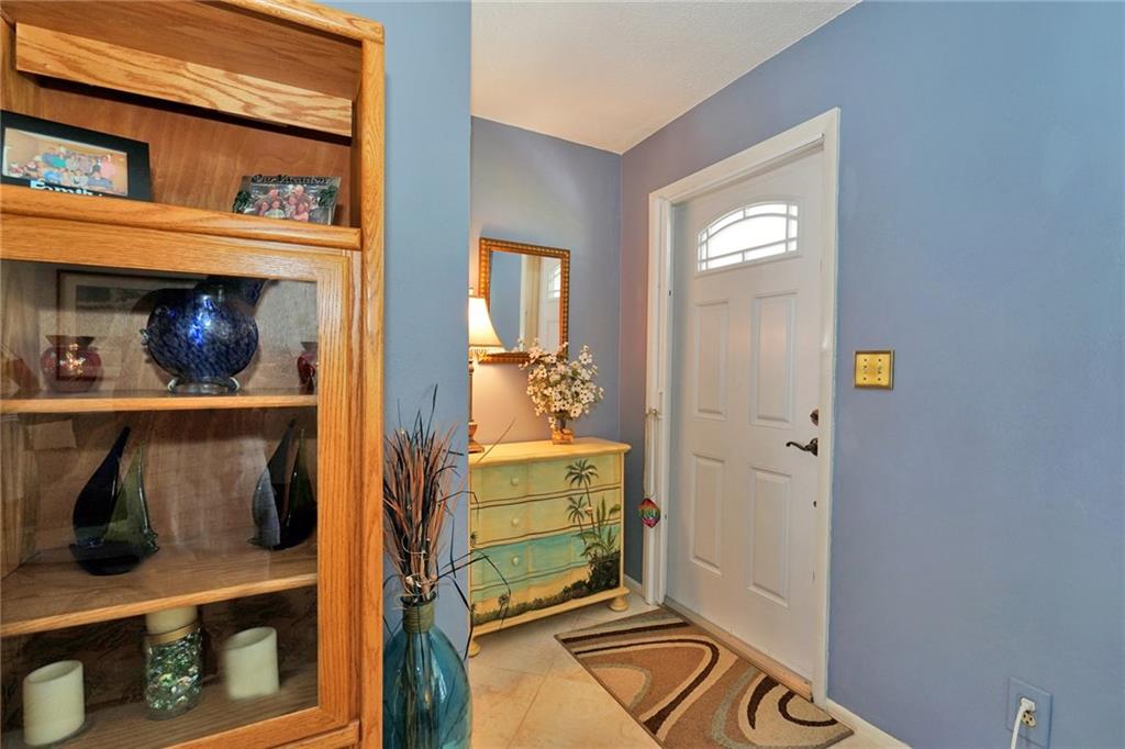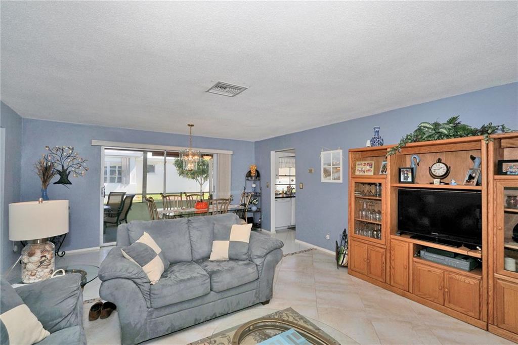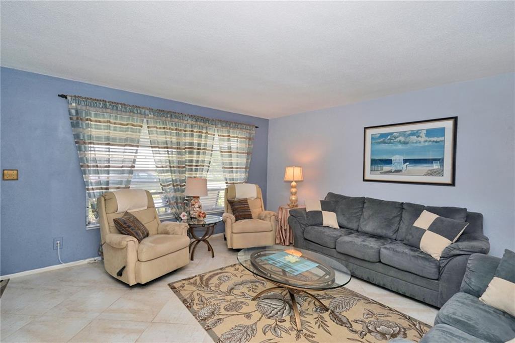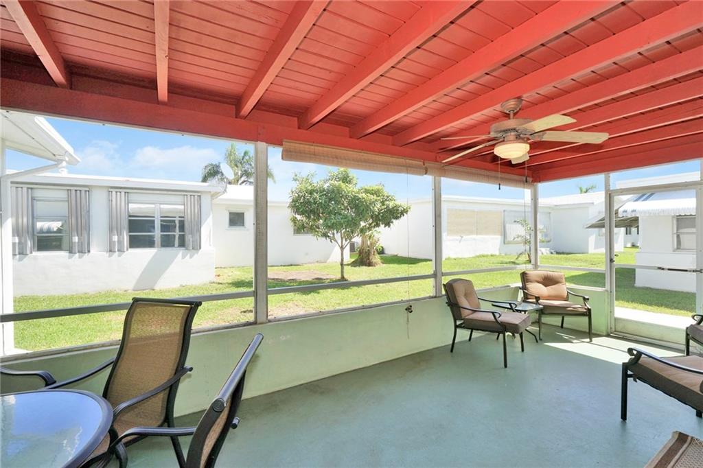 Lovely 2/2 with garage in this sought-after active 55+ community. Neutral tile throughout. Light and bright from the front door to the porch which has exposed beams and is a great place to enjoy your morning coffee. Bathrooms updated . Lots of counter space in the eat-in kitchen. Garage has a work shop area and plenty of storage space. HOA fee includes exterior painting, lawn and sprinkler care. There are two pools and clubhouses, exercise room, ping pong, and so much more. Move-in ready!