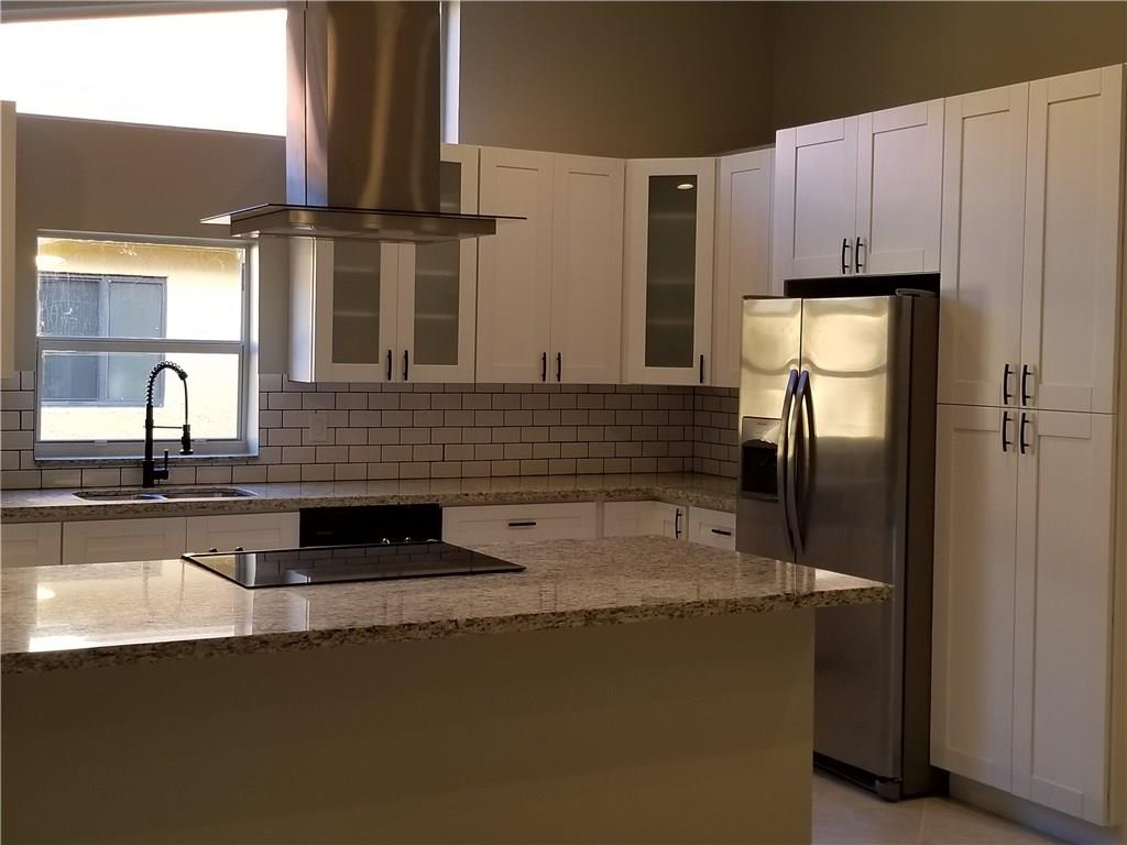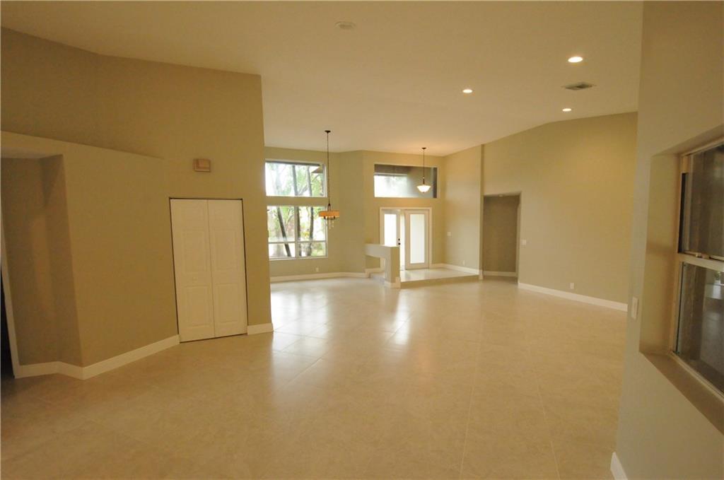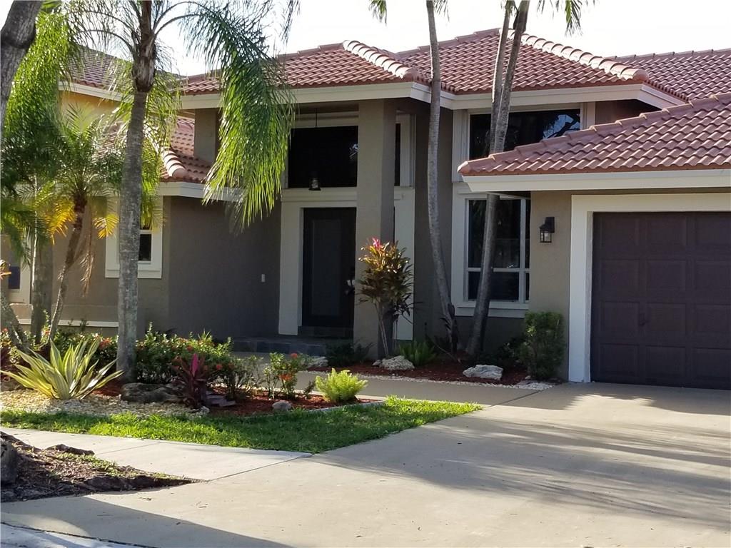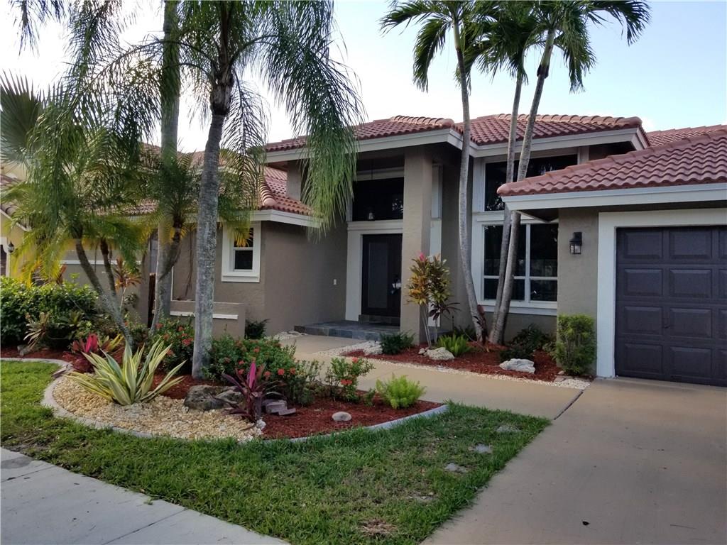 Remodeled 4bed/3bath pool home in Weston prestigous Sunset Springs community. Modern open floor plan, volume ceilings, natural light throughout, granite counters in kitchen, cooking island, snack bar, solid wood cabinetry, family & formal dining, new SS appliances. New porcelain tile & laminate wood floors. New A/C. Designer Master bath w/jacuzzi tub. Dual sinks & quartz vanities. New exterior & interior paint, new barrel tile roof (under construction) & landscaped curb appeal. A+ rated school district.