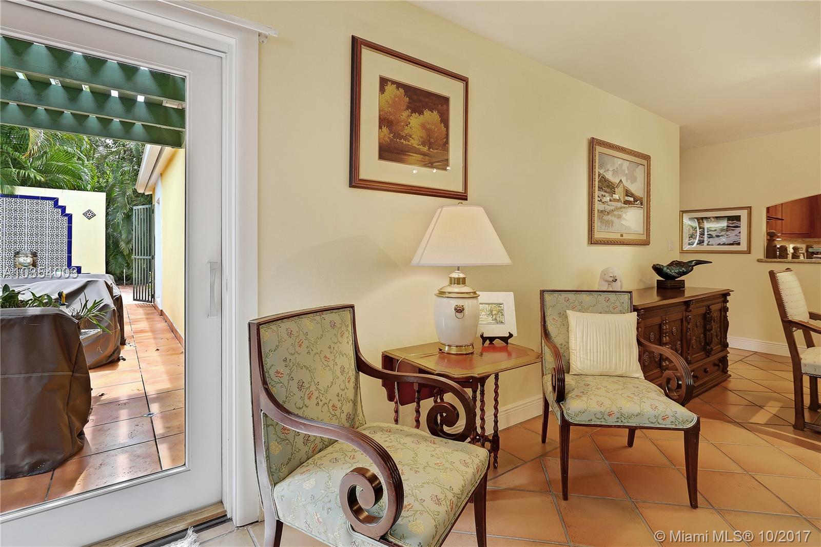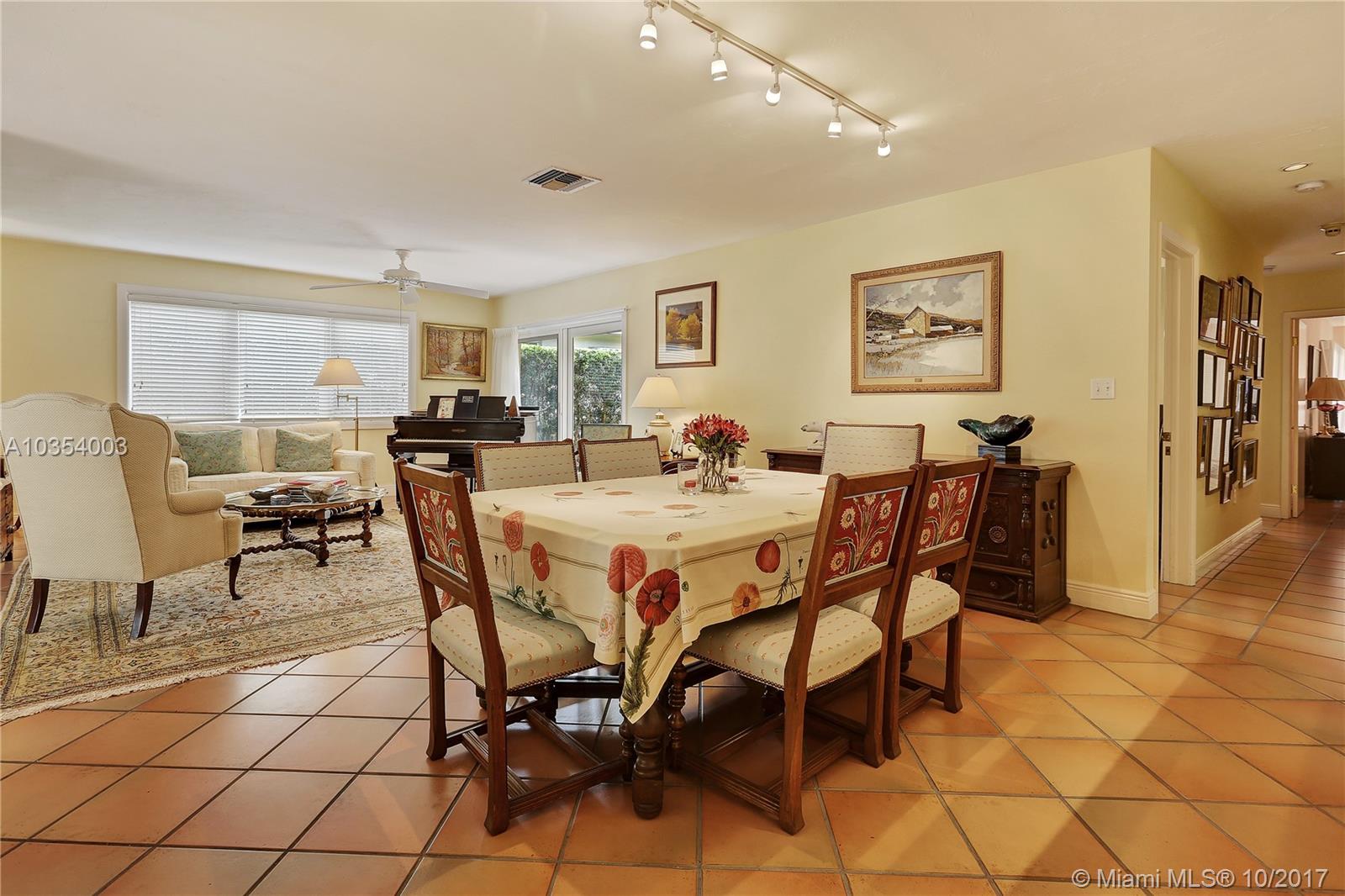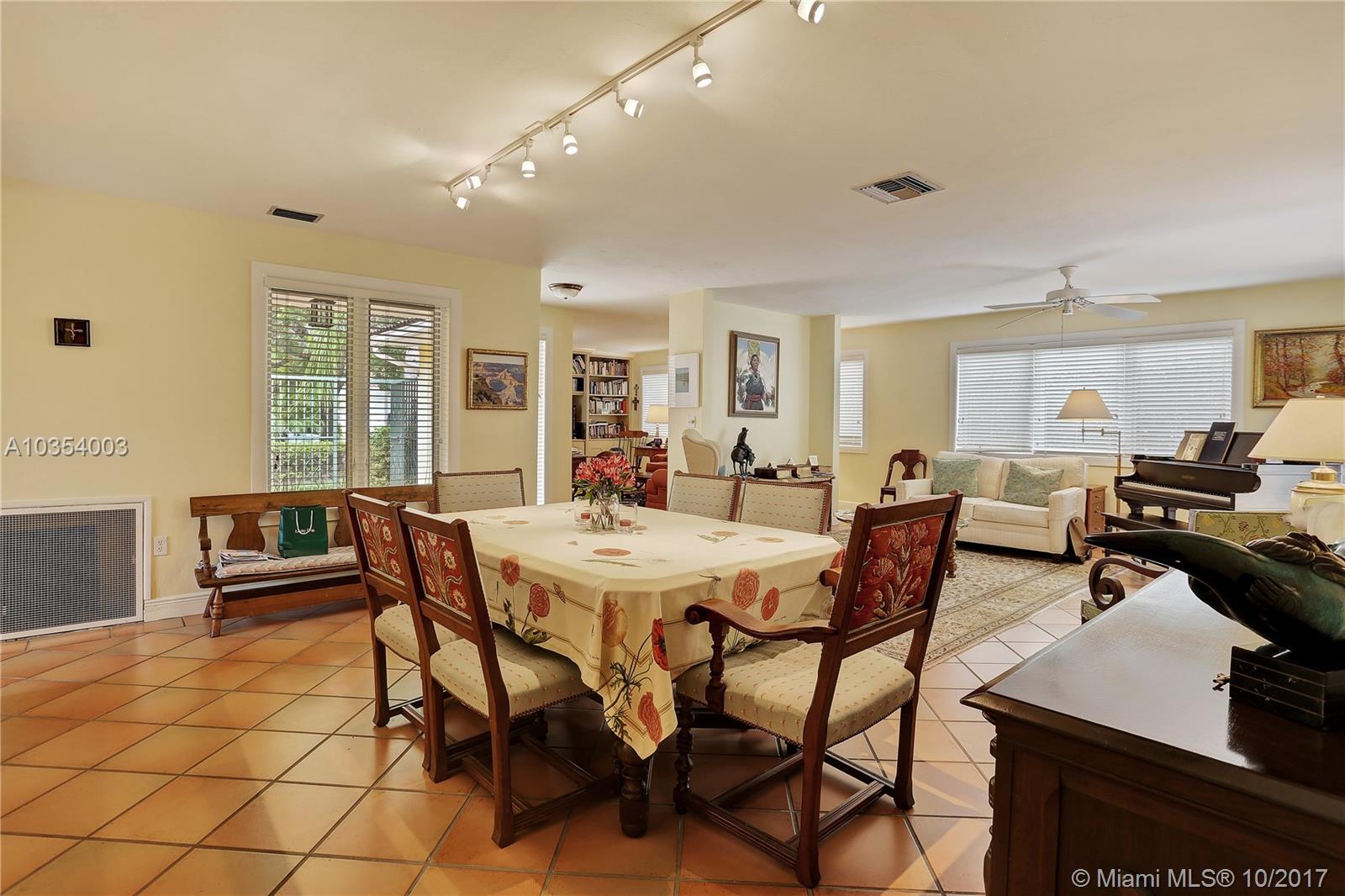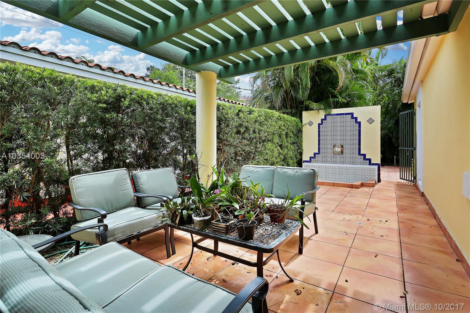 Come see this open and inviting 3 bedroom, 2 bathroom home in beautiful southeast Coral Gables. Step inside and be awed by the spacious living, family, and dining rooms. Large impact windows and doors allow natural light to stream in. The recently renovated kitchen with plenty of storage is perfect for parties and family get togethers. The master bedroom includes a Coral Gables rarity--2 walk-in closets and a large master bathroom with lots of potential! Want to relax after a hard day at work? Step outside under your beautiful pergola and enjoy the gentle trickle of the fountain and the large tile patio with plenty of room for outdoor seating, tables, and umbrellas.