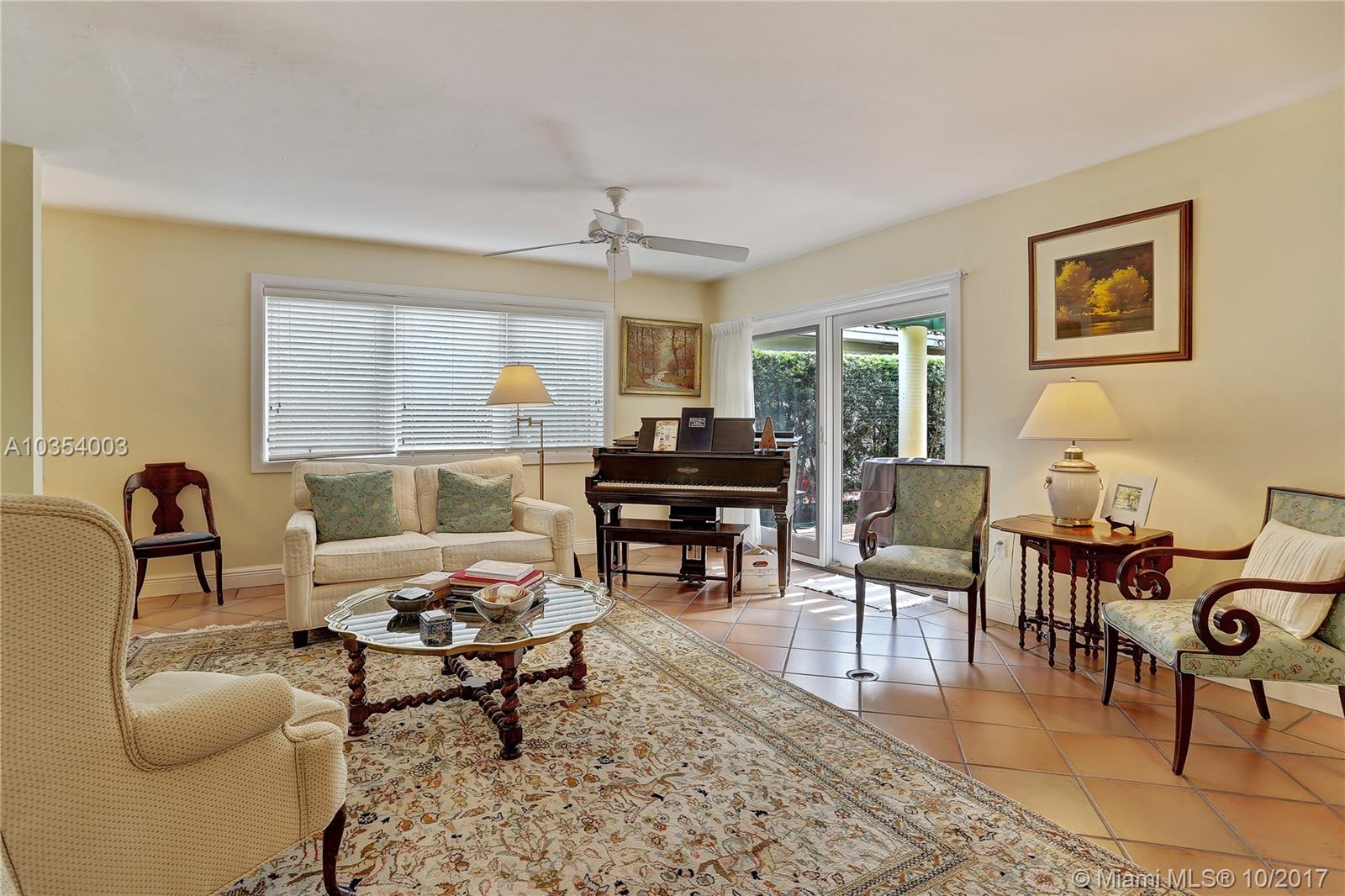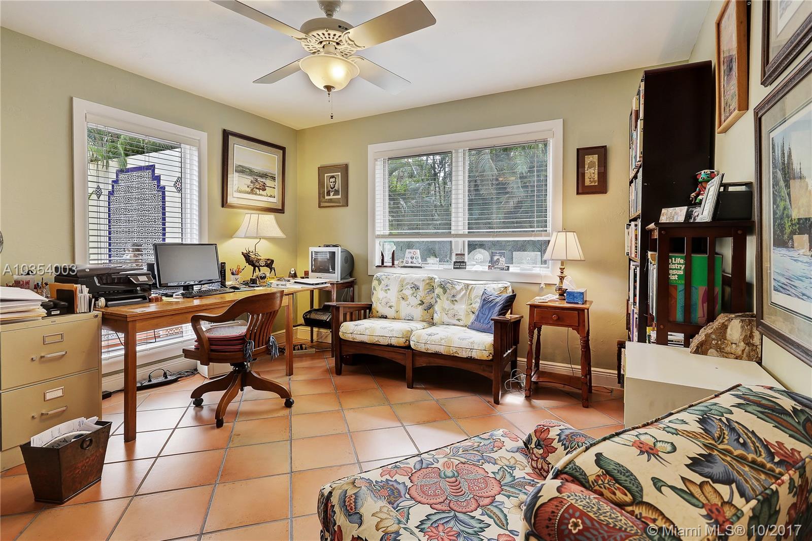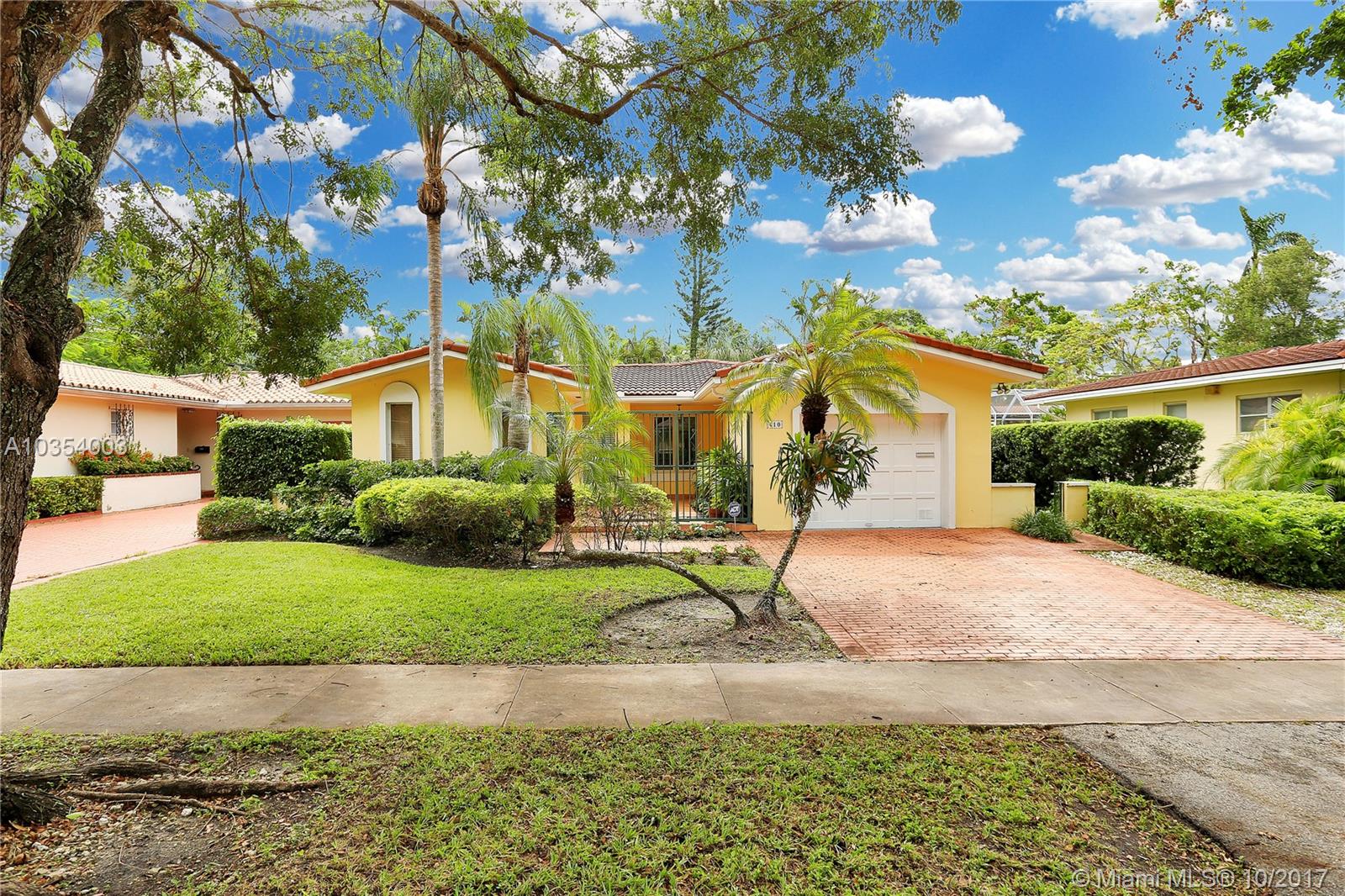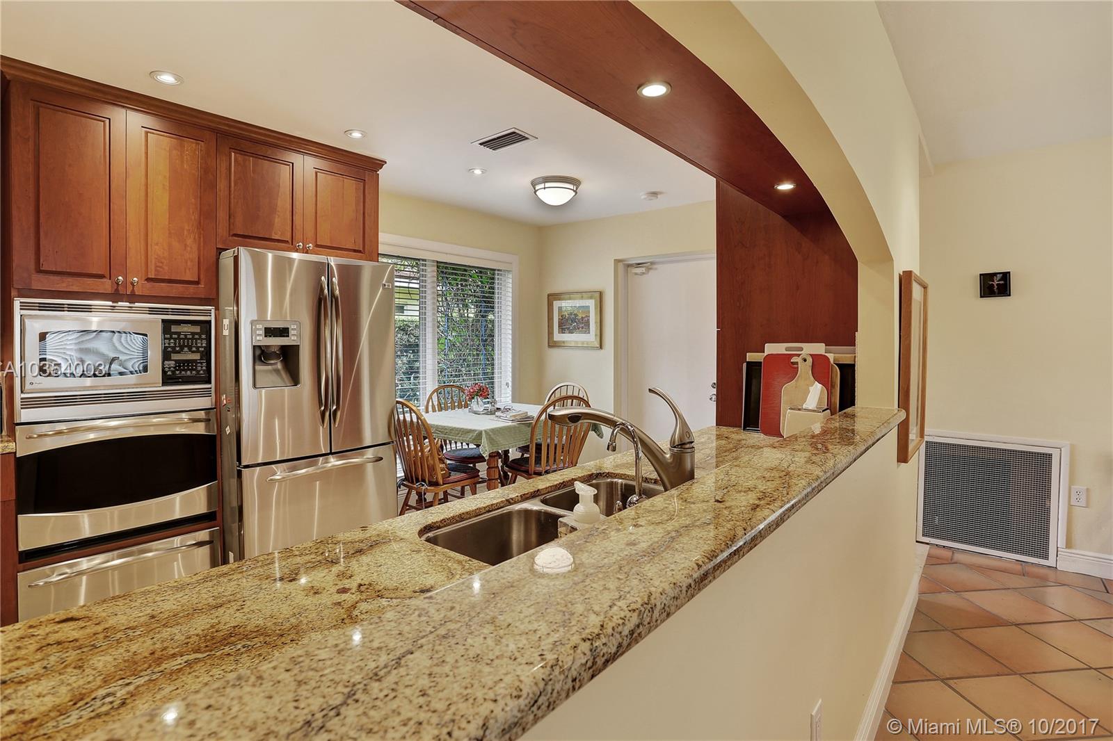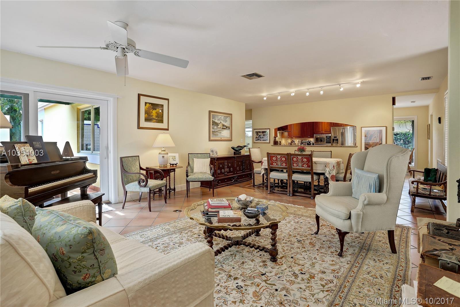 Come see this open and inviting 3 bedroom, 2 bathroom home in beautiful southeast Coral Gables. Step inside and be awed by the spacious living, family, and dining rooms. Large impact windows and doors allow natural light to stream in. The recently renovated kitchen with plenty of storage is perfect for parties and family get togethers. The master bedroom includes a Coral Gables rarity--2 walk-in closets and a large master bathroom with lots of potential! Want to relax after a hard day at work? Step outside under your beautiful pergola and enjoy the gentle trickle of the fountain and the large tile patio with plenty of room for outdoor seating, tables, and umbrellas.