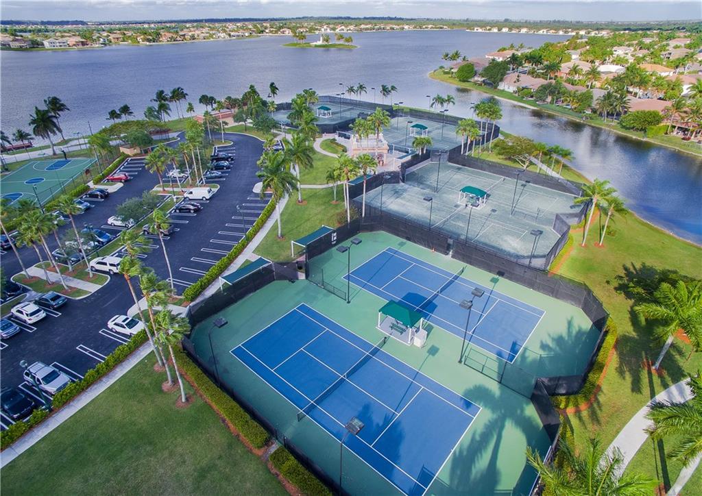 Largest model in the gated resort community of Sunset Lakes Grand Key! Beautiful open floor plan. Kitchen features corian counters. First floor has 18x18 ceramic titles with wood floors on stairs and entire second level. New A/C! Outside features accordion shutters and large screened patio for privacy and perfect for entertaining. Enjoy Sunset Lakes Amenities which include resort style pool, tennis, gym, playgrounds, basketball courts, private beach and clubhouse.