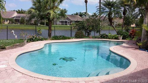 Beautiful location...beautiful home with newly painted interior with neutral colors throughout. Located on a nice sized lake with a heated pool. Within walking distance of "A" grade Fox Trail Elementary and Indian Ridge Middle schools. Large fenced in private yard gives the feeling of a tropical paradise. Split floor plan with a very large master bedroom and bathroom with a Roman tub, dual sinks, and separate frameless shower. Vaulted ceilings throughout. Many upgrades including granite countertops in kitchen and new cabinetry in bathrooms. Accordion style hurricane shutters, and impact resistant windows, and sliding glass door. Automatic hurricane resistant garage door. Automatic sprinkler system feeds from the lake. Brand new barrel tile roof to be installed in one month per contract.