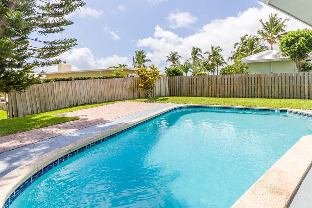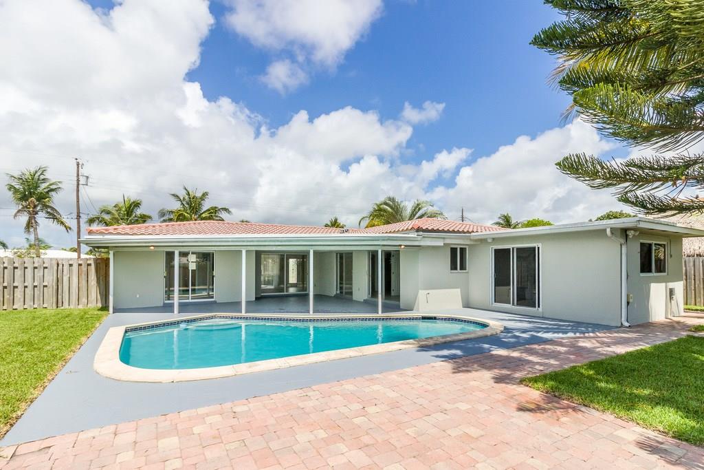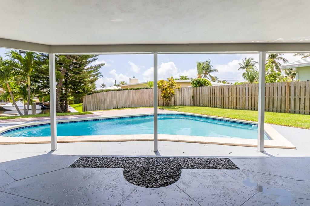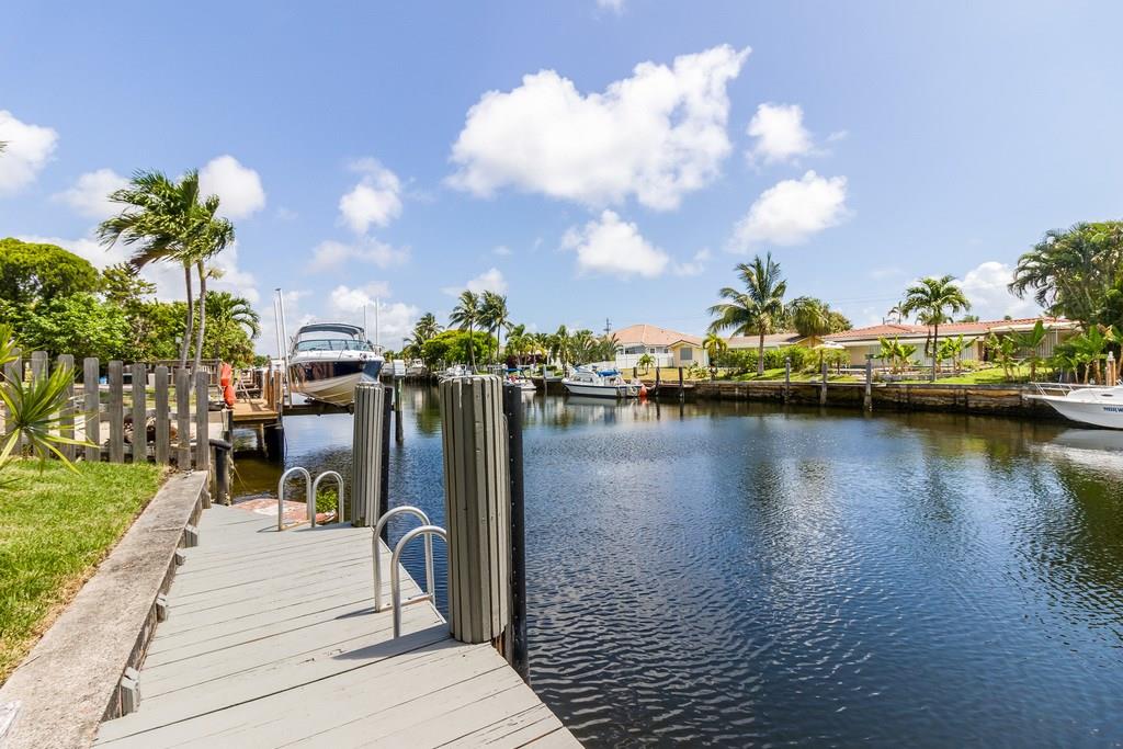 Waterfront, pool home on a wide canal with Ocean Access. 2 bedrooms, 2 bathrooms with pool and water views from every room. 2 master bedrooms and a bonus room. New S/S appliances, quartz countertops, neutral tile throughout. New A/C, resurfaced pool, newer roof, new flat roofs, impact windows, paver driveway/paths/patio. Dock your boat and enjoy the view from the private yard including a 400sf outdoor covered area.