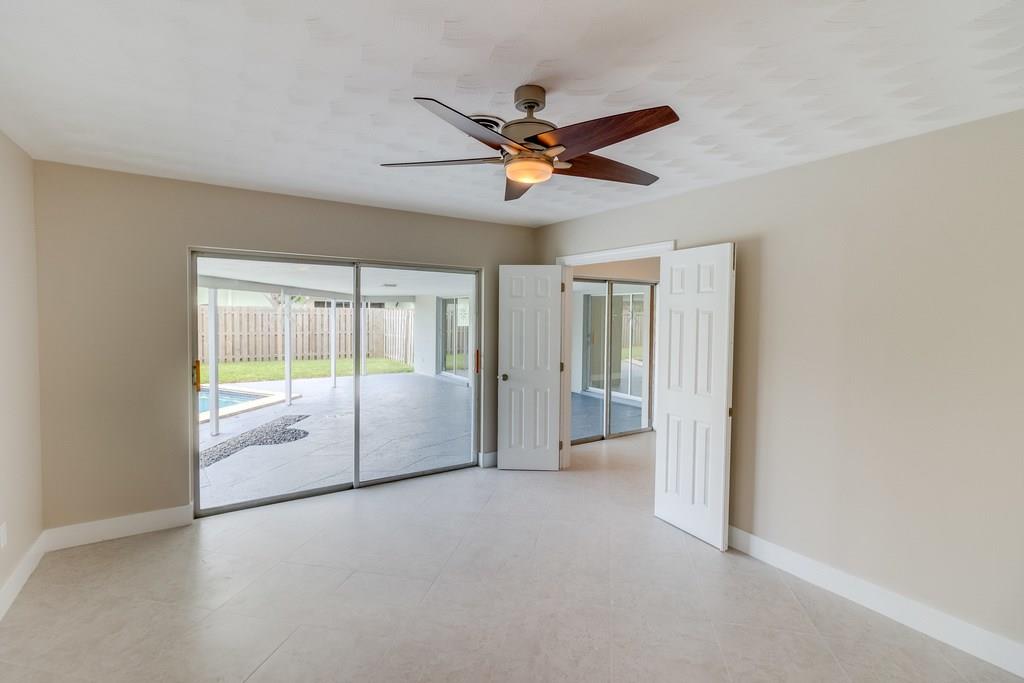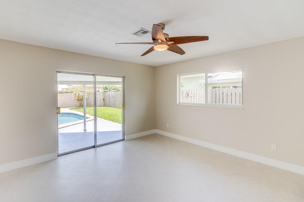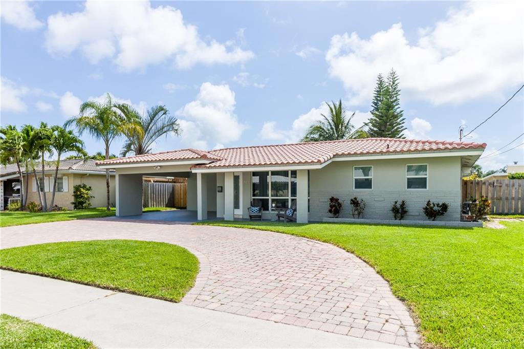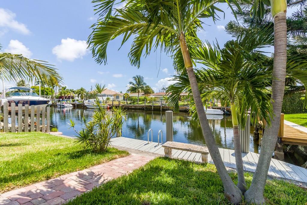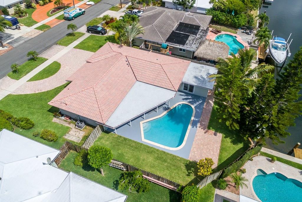 Waterfront, pool home on a wide canal with Ocean Access. 2 bedrooms, 2 bathrooms with pool and water views from every room. 2 master bedrooms and a bonus room. New S/S appliances, quartz countertops, neutral tile throughout. New A/C, resurfaced pool, newer roof, new flat roofs, impact windows, paver driveway/paths/patio. Dock your boat and enjoy the view from the private yard including a 400sf outdoor covered area.
