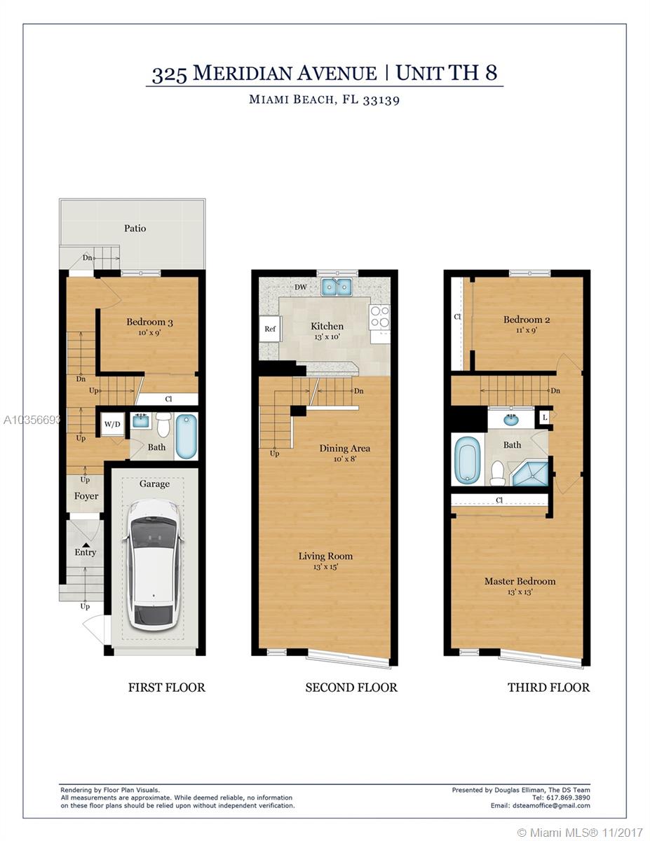 Boutique townhouse, immaculately maintained & ideally located along tree lined Meridian Ave South of 5th, adjacent to the ultra-luxurious Louver House. Updates in this 3-bed/2-bath include impact windows/doors, addtl kitchen counters/storage, tankless water heater, high-eff A/C, designer lighting, marble entry and kitchen floor, custom window treatments w/elect. black-out shades in master, custom railings along refinished oak staircases. Floor-to-ceiling windows and a skylight offer abundant natural light throughout. Deep private garage w/ ample storage shelves and a 2nd outdoor designated parking space. Private patio feat. Brazilian walnut fencing perfect for grilling & gardening. Steps from prestigious South Pointe elementary, the beach, South Pointe Park and restaurants.