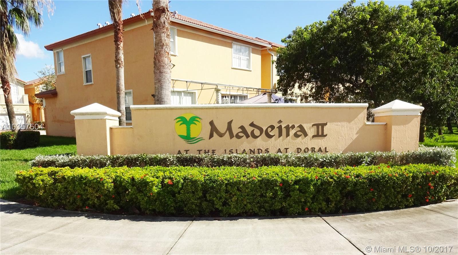 PRISTINE ISLANDS AT DORAL CONTEMPORARY CORNER TWO STORY CORNER 4 BEDROOM 2.5 BATH TOWNHOUSE WITH LAKE VIEWS ON THE EAST AND SOUTH SIDE OF THE HOME, A BRIGHT OPEN FLOOR PLAN, FORMAL LIVING AND DINING AREAS, VOLUME CEILINGS AND GOURMET KITCHEN WITH STAINLESS APPLIANCES, SNACK COUNTER & GLEAMING GRANITE COUNTERTOPS. UPSTAIRS ARE THREE NICE SIZED BEDROOMS, A LUXURIOUS MASTER BEDROOM & BATHROOM SUITE WITH ROMAN TUB & SEPARATE DUAL VANITIES. THERE IS TILE ON THE FIRST FLOOR,LAMINATE WOOD ON THE STAIRS AND SECOND FLOOR. OUTSIDE IS A PRIVATE YARD WITH STONE PAVER PATIO. EXTRAS INCLUDE HURRICANE SHUTTERS, SECURITY SYSTEM, PADDLE FANS AND MORE. AMENITIES INCLUDE COMMUNITY CLUBHOUSE AND POOL, THE DORAL MASTER COMMUNITY CENTER WITH TENNIS, GYM, SOCIAL ROOM AND WALKING DISTANCE TO SCHOOLS. HURRY!