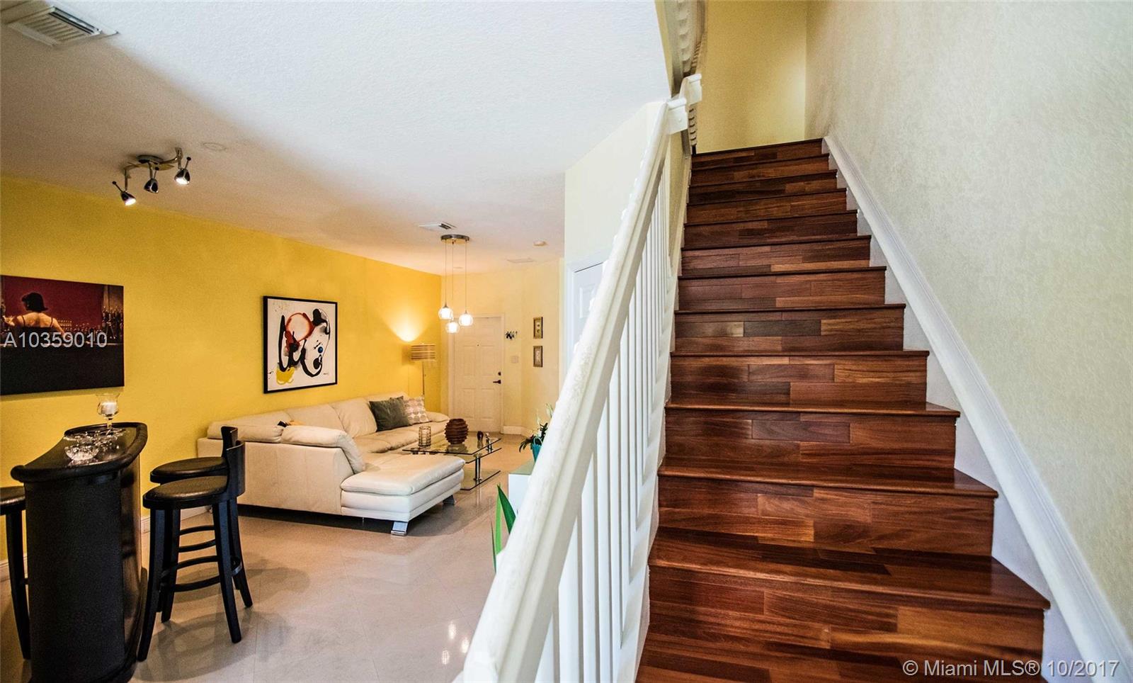 Beautiful 2-story townhouse completely renovated with 4 spacious bedrooms & 3 bathrooms. Fabulous layout with the right spaces. New gourmet kitchen, granite countertops and high end appliances. Looks like a model house! New marble & porcelain tiles & parquet wood flooring. Unique shelving system in master's walk-in closet. Love the soaring ceilings. A/C,2 Parking slots + Guests parking. Amazing club house.Highly rated schools.Well located! Shopping Centers at 0.6M. You may buy and lease. By appointment.