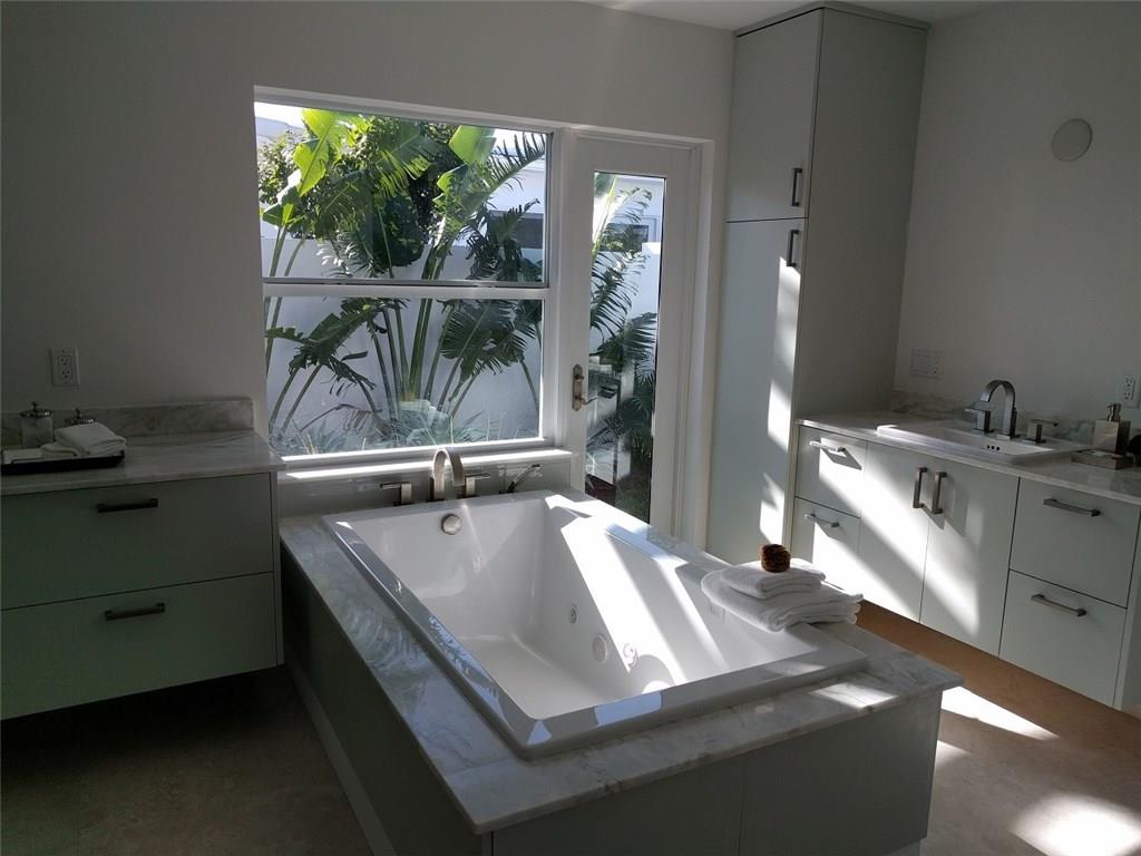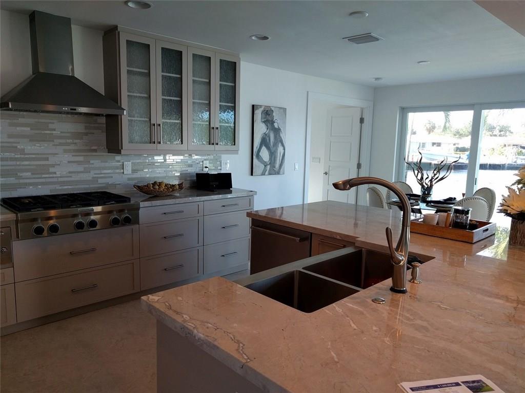 New Construction! Modern design, amazing water view in Bal Harbour gated community. Walking distance to restaurants and shops. Lg great room w/11 foot ceiling. Lg kitchen w/chef’s appliances - gas cooktop, warming drawer & 2 REFs. Natural stone Quartzite countertops & dbl pantry. Lg master En-Ste w/dbl WIC, dbl vanities, dbl shower, jetted tub. Separate toilet/bidet room and private garden. Split plan w/ 2nd En-Ste. Includes dock to be built to buyers specification. Middle River bridge clr over 10 ft.
