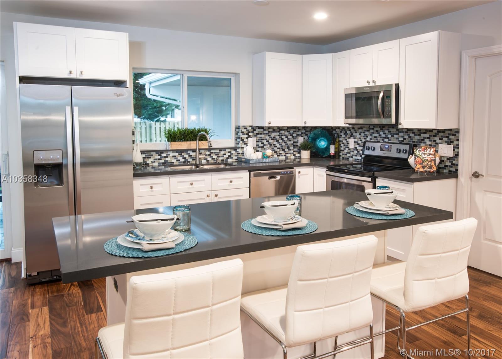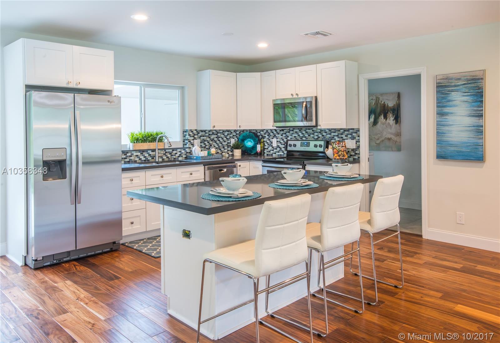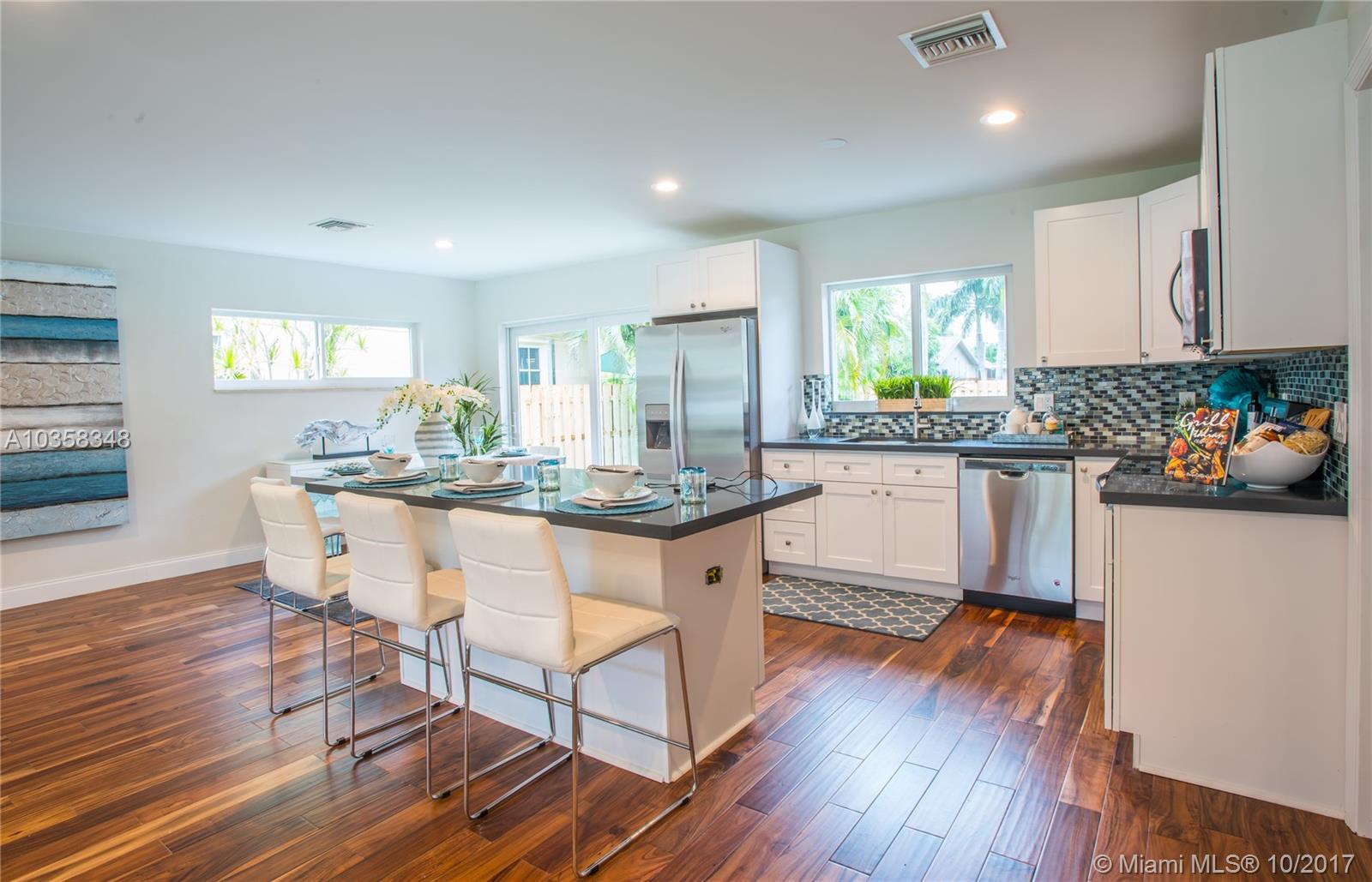 Pristine Home in Beautiful Hollywood Lakes' Northlake area. This home is tastefully done without missing a beat....Please see the photos, words only cannot do this masterpiece justice. ALL NEW: impact windows & doors, circular driveway, rear open & covered patios, fenced yard, wood floors throughout, kitchen with huge breakfast bar/island, all with quartz counter tops, stainless steel appliances, bathrooms, vanities (double sinks in master), ceiling fans, L.E.D. lighting, A/C system, tankless hot water heater. Upgraded exterior & interior electric panels. Short distance to beach, downtown Hollywood, Hollywood / Ft. Laud. Int'l Airport.