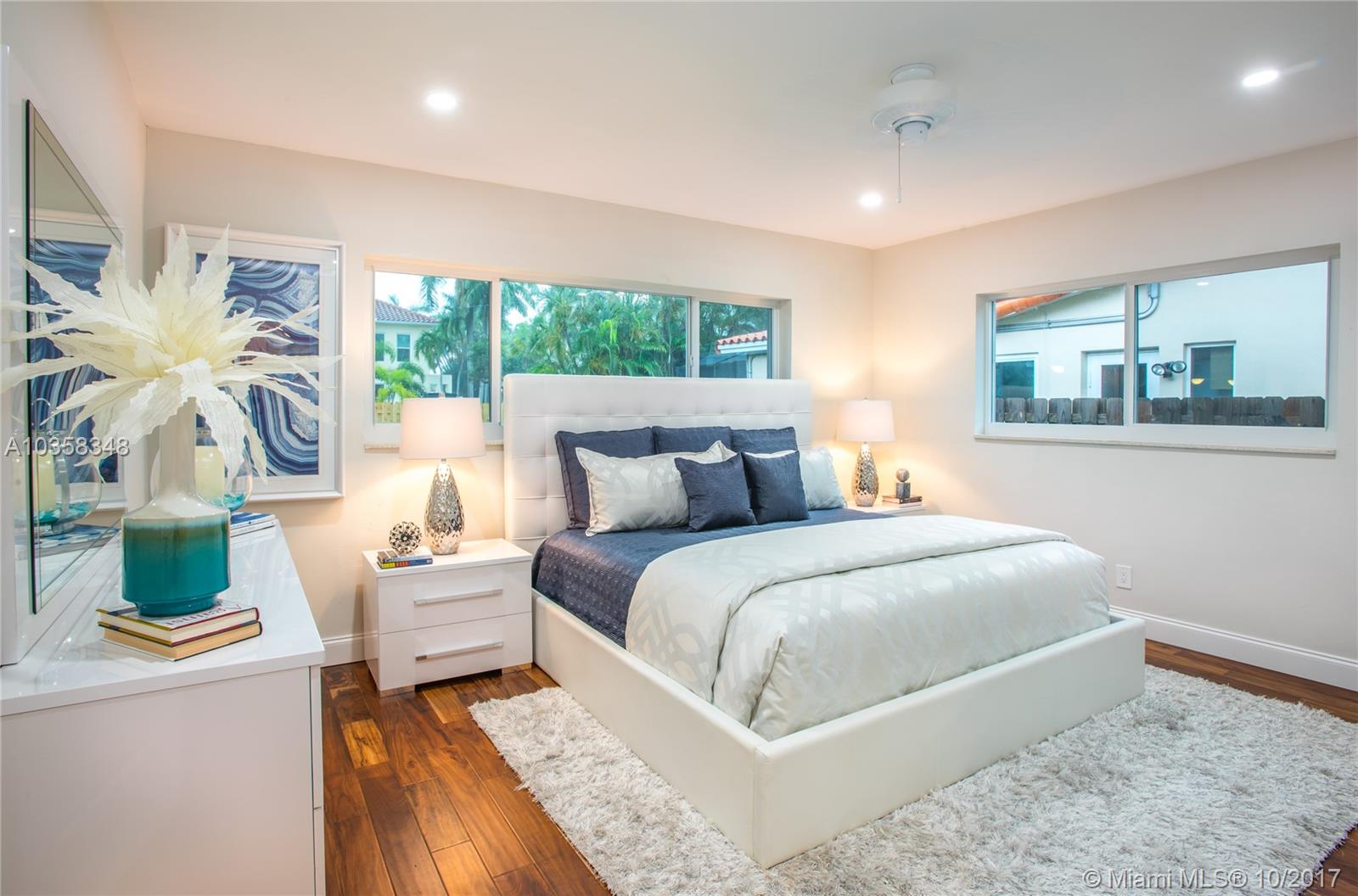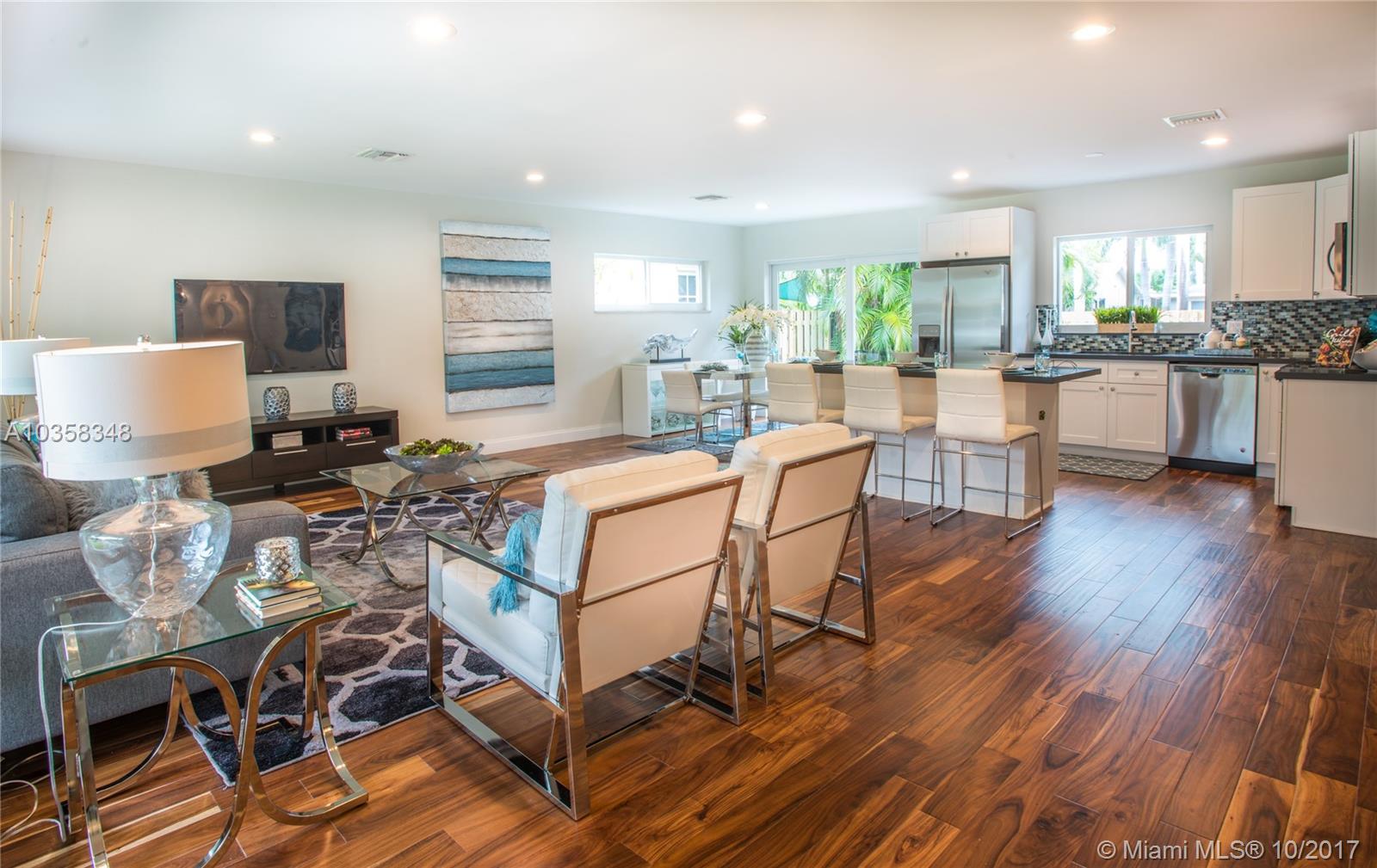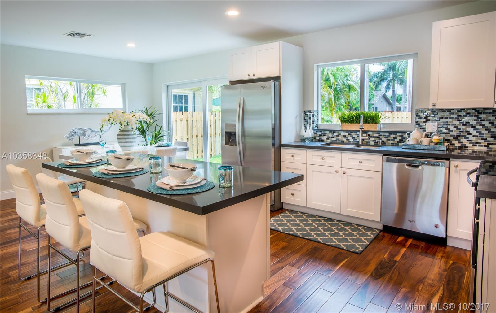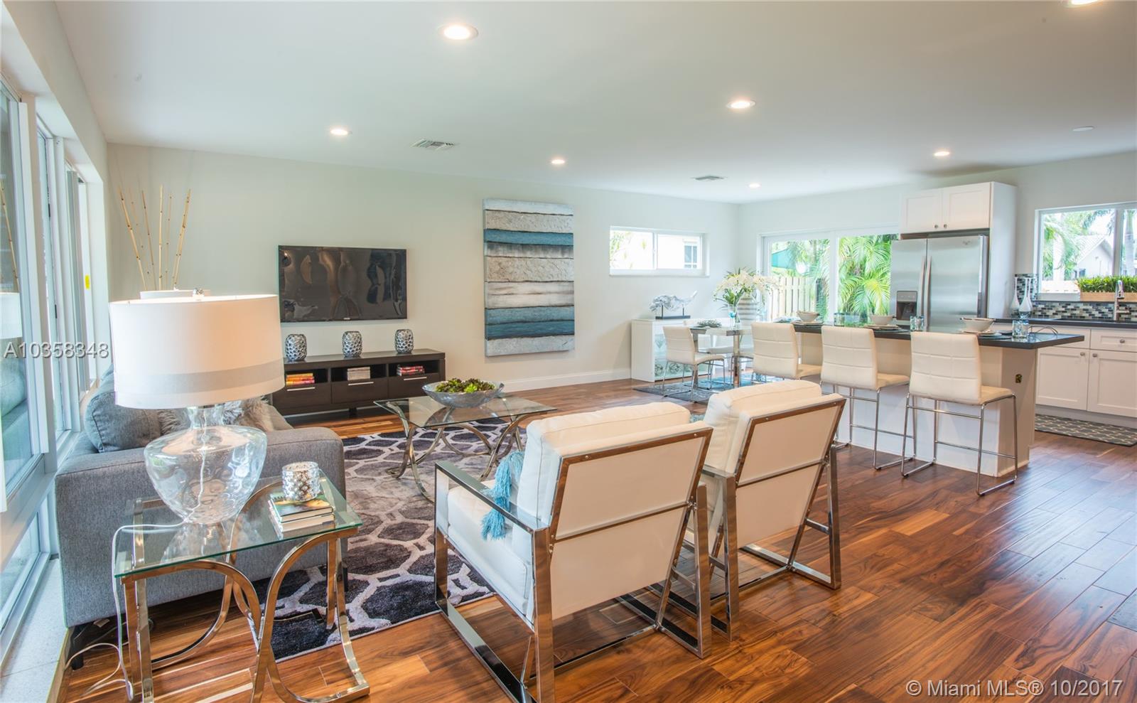 Pristine Home in Beautiful Hollywood Lakes' Northlake area. This home is tastefully done without missing a beat....Please see the photos, words only cannot do this masterpiece justice. ALL NEW: impact windows & doors, circular driveway, rear open & covered patios, fenced yard, wood floors throughout, kitchen with huge breakfast bar/island, all with quartz counter tops, stainless steel appliances, bathrooms, vanities (double sinks in master), ceiling fans, L.E.D. lighting, A/C system, tankless hot water heater. Upgraded exterior & interior electric panels. Short distance to beach, downtown Hollywood, Hollywood / Ft. Laud. Int'l Airport.
