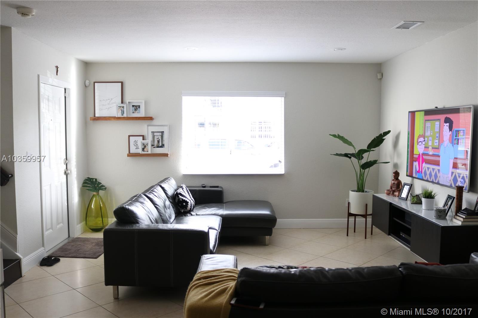 Immaculate 3/2 Lux interior townhome featured in the center of Palm Springs North. A dream starter home for any size family. This home has been completely remodeled with no corner left untouched. New beautiful Granite counter top, kitchen cabinets, stainless steel appliances, completely renovated bathrooms, 24 x24 tile and wood floors. Entertain your guests in your very own bar, sit back and relax in the backyard or come out and see the meteor shower in the upstairs balcony patio. Parking for up to 3 cars. ( One bed room and full bath downstairs )