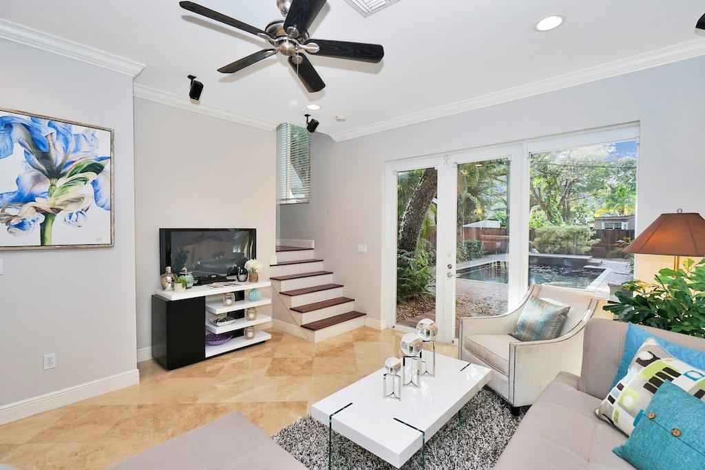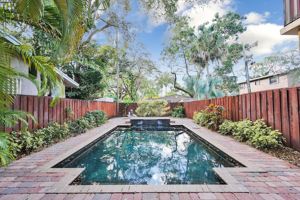 RARE PRIVATE POOL!! FABULOUS ONE OF A KIND DELUXE TOWNHOUSE. CONVENIENTLY LOCATED CLOSE TO LAS OLAS, DOWNTOWN AND HIGHWAYS. TROPICAL BACKYARD WITH SHEER DESCENT WATERFALL IN LAGOON POOL, LARGE PAVER DECK, COMPLETELY FENCED. GRANITE AND STAINLESS IN THE KITCHEN. HIGH END FINISHES THROUGHOUT. SATURNIA FLOORS DOWN, BRAZILIAN CHERRY IN BEDRMS. MASTER OVERLOOKS POOL. 2 CAR GARAGE W/ TILE FLOOR, NEW AC, IMPACT WINDOWS, INEXPENSIVE INSURANCE. LARGE LANDING AT TOP OF STAIRS FOR OFFICE AREA. HURRY. NO HOA.