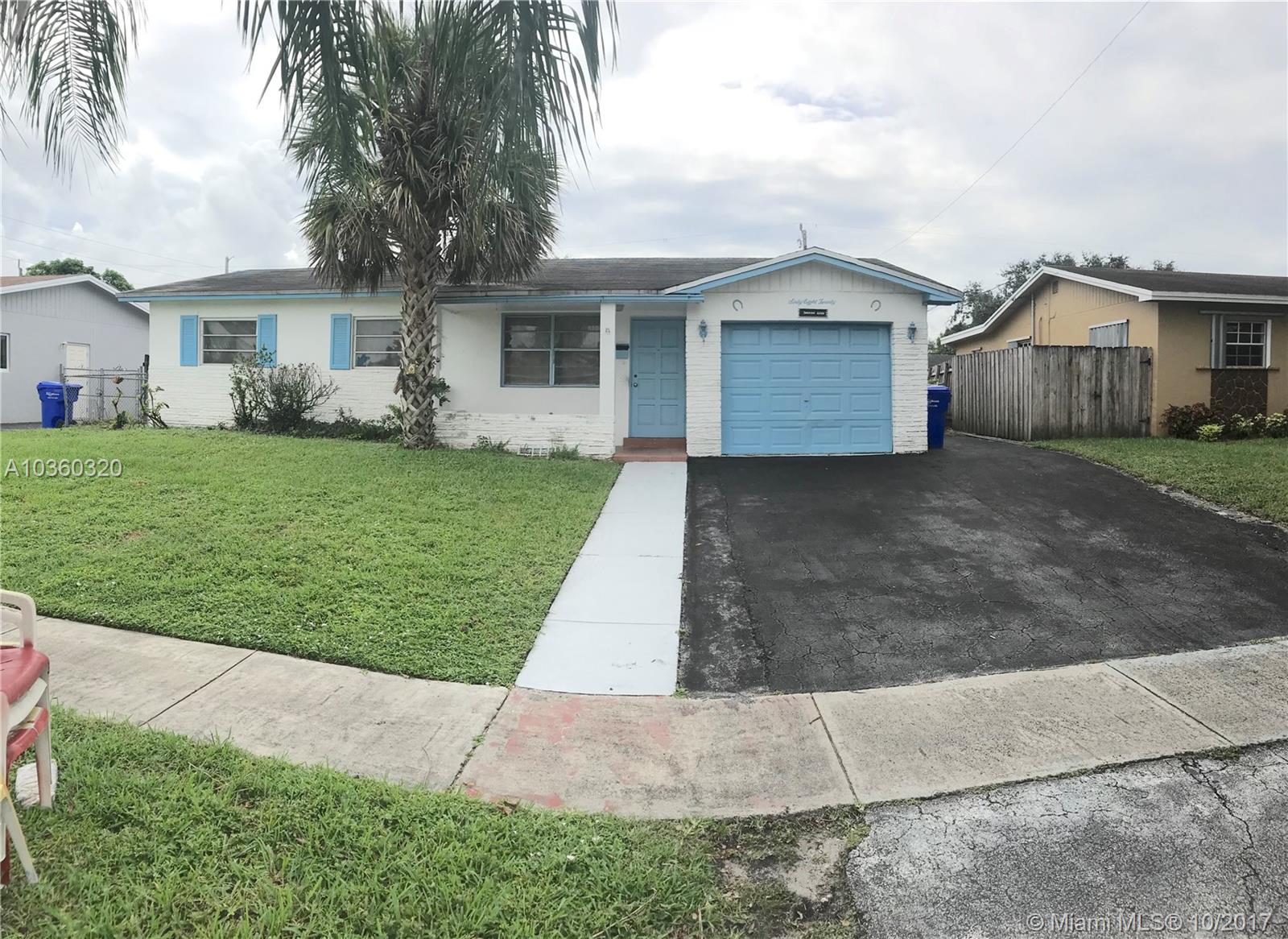 Spacious 3 bedroom/2 bath with great curb appeal in the heart of Hollywood. Featuring a brand new A/C unit and Refrigerator. Minutes away from the Turnpike, Hard Rock Casino, and the new WAWA. This fixer-upper is perfect for investors or first time home buyers. Lots of space in this open floor plan home, two separate living areas, large laundry room, huge backyard and a 1 car garage. Must see to appreciate. All it needs is a little TLC. Turn this house into your dream home!