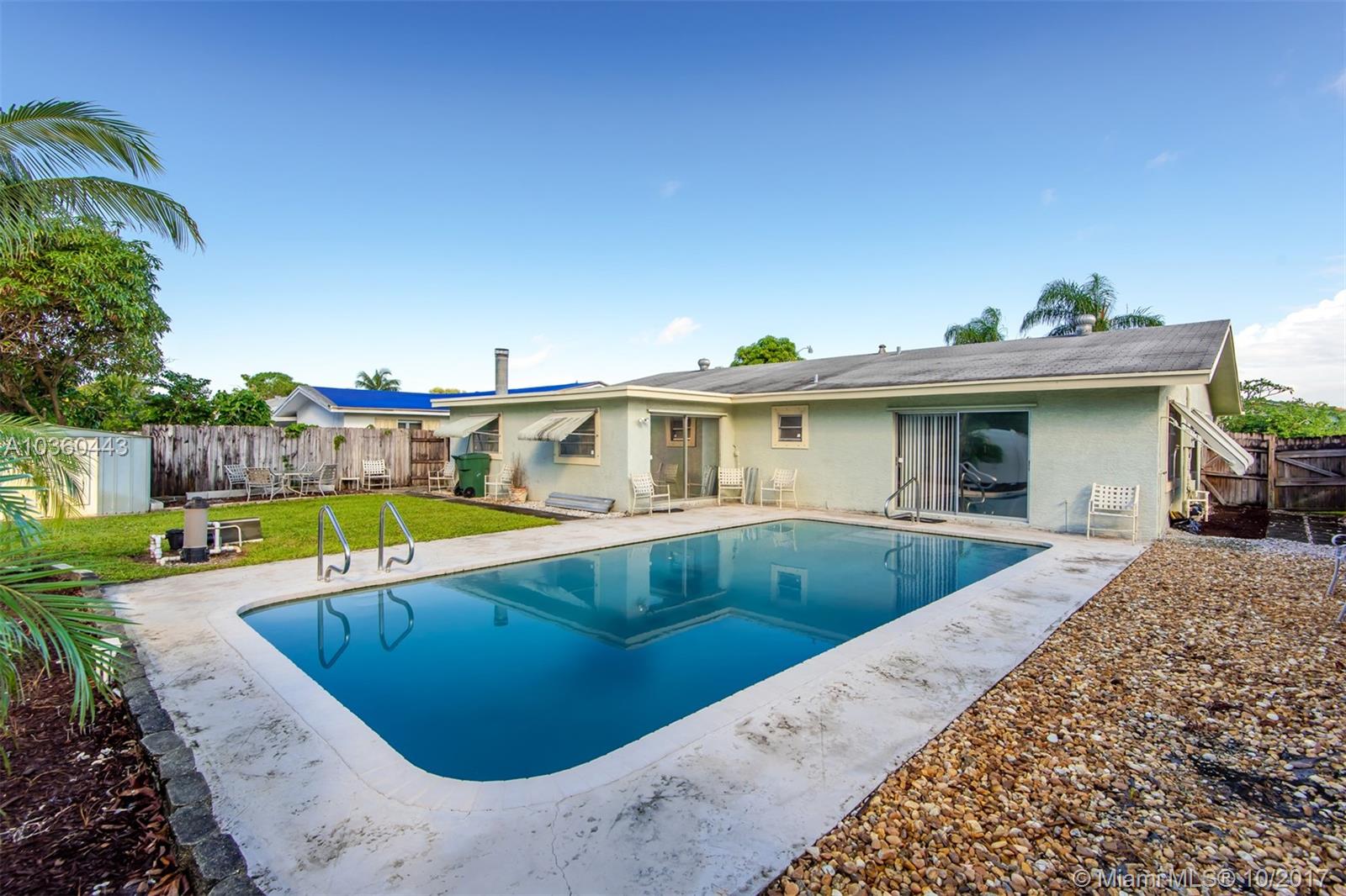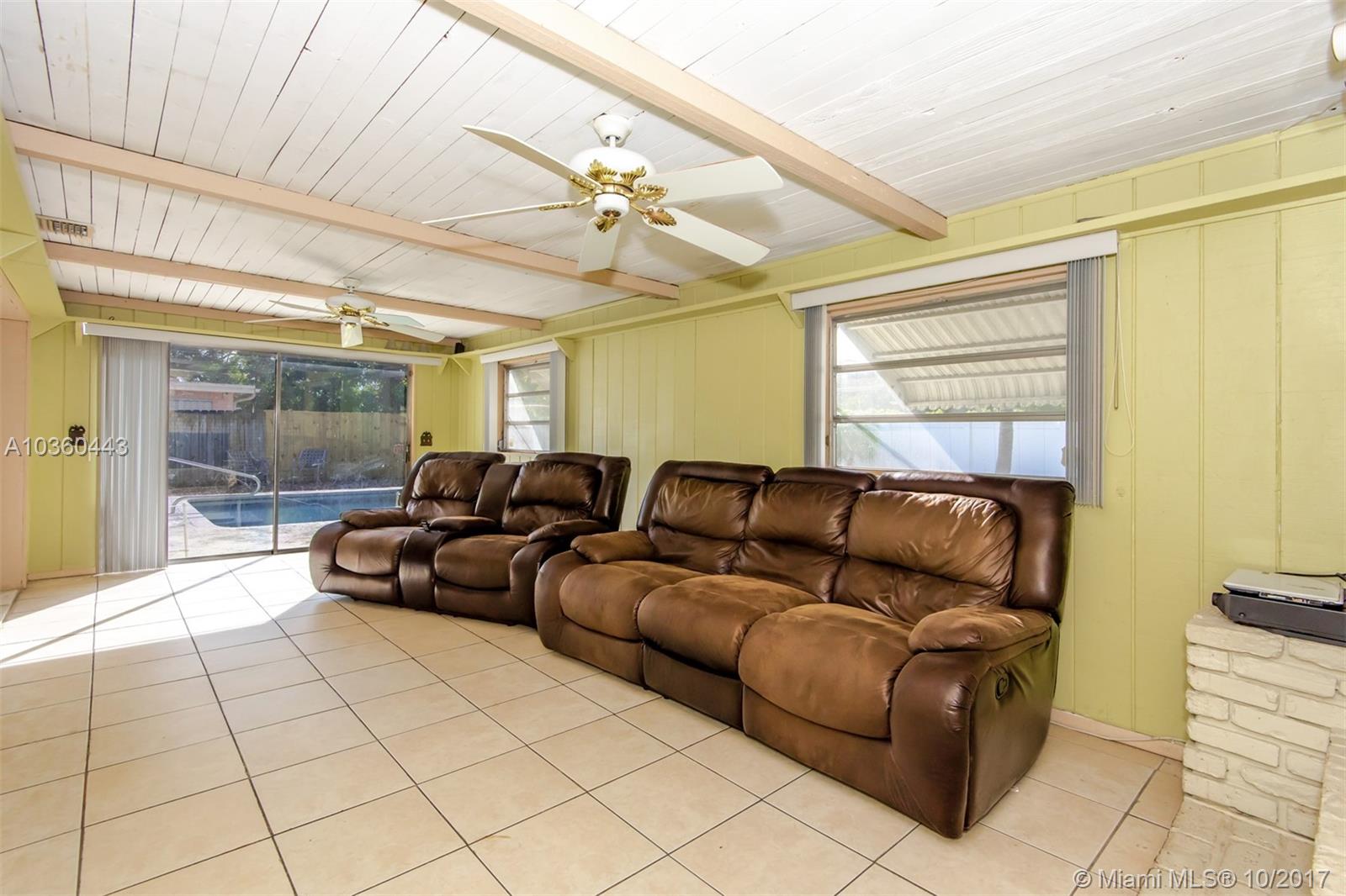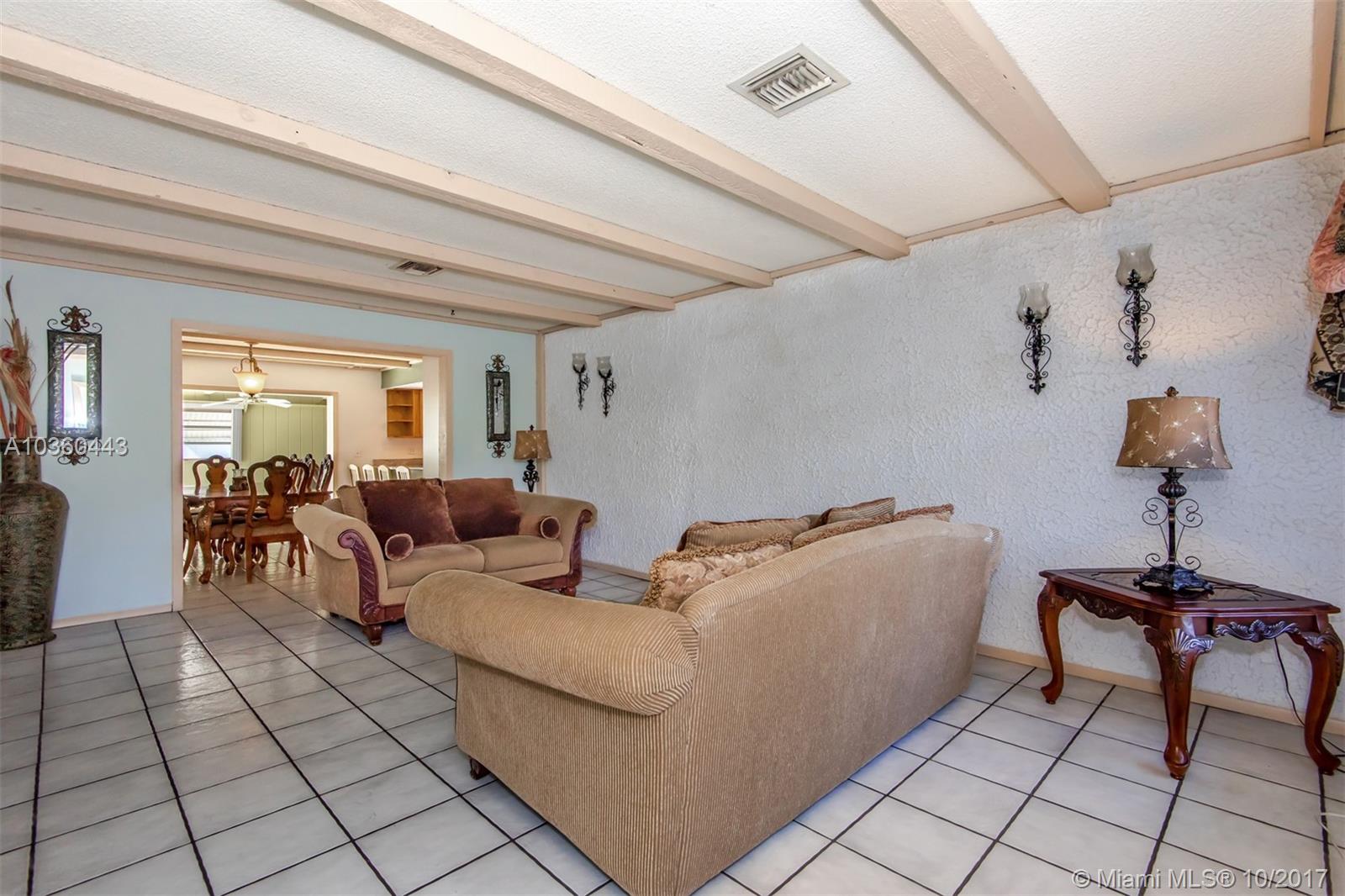 Large family home has 4 real bedrooms and 2 bathrooms, in ground swimming pool. Updated kitchen with granite countertops and a large breakfast bar. Family room has fireplace on the back of the house and goes out to the pool. Garage has been converted to office under a/c, could be converted back into 1 car garage. Large driveway, room for 7 cars. Easy access to the turnpike and I95. No neighborhood association.