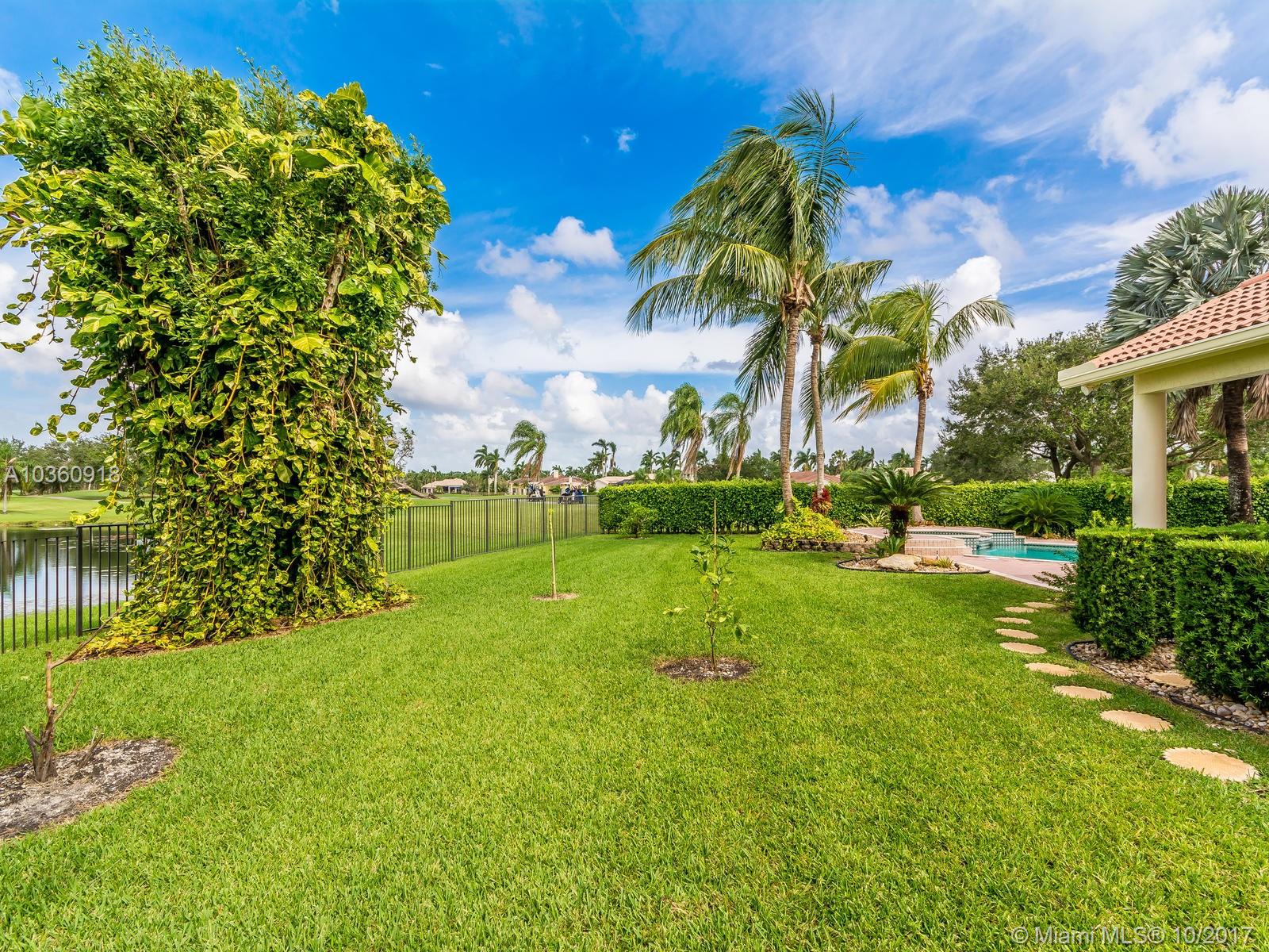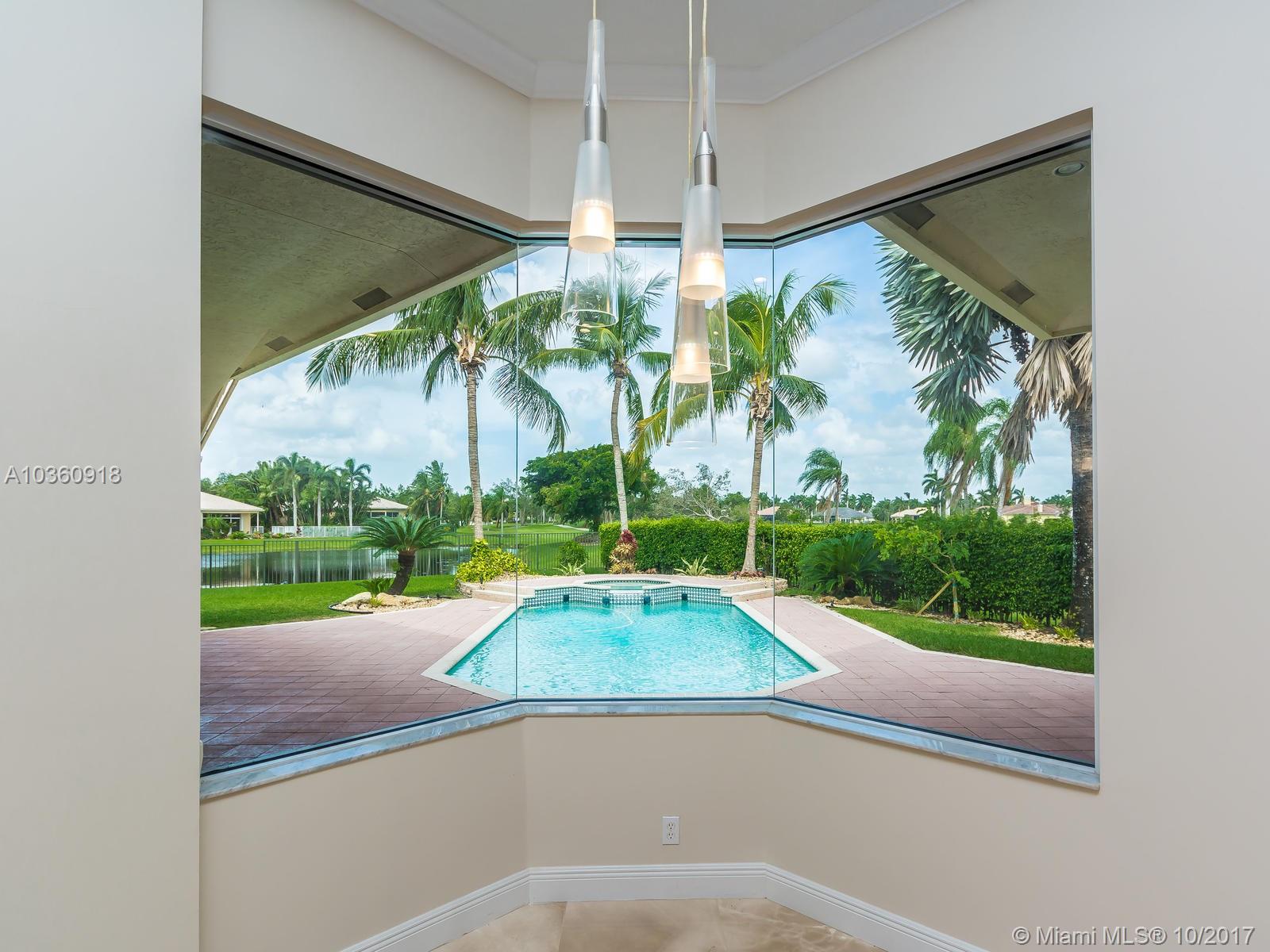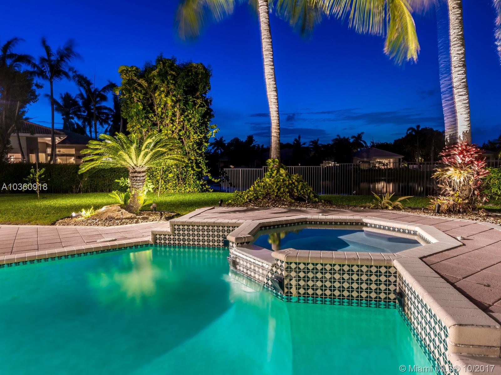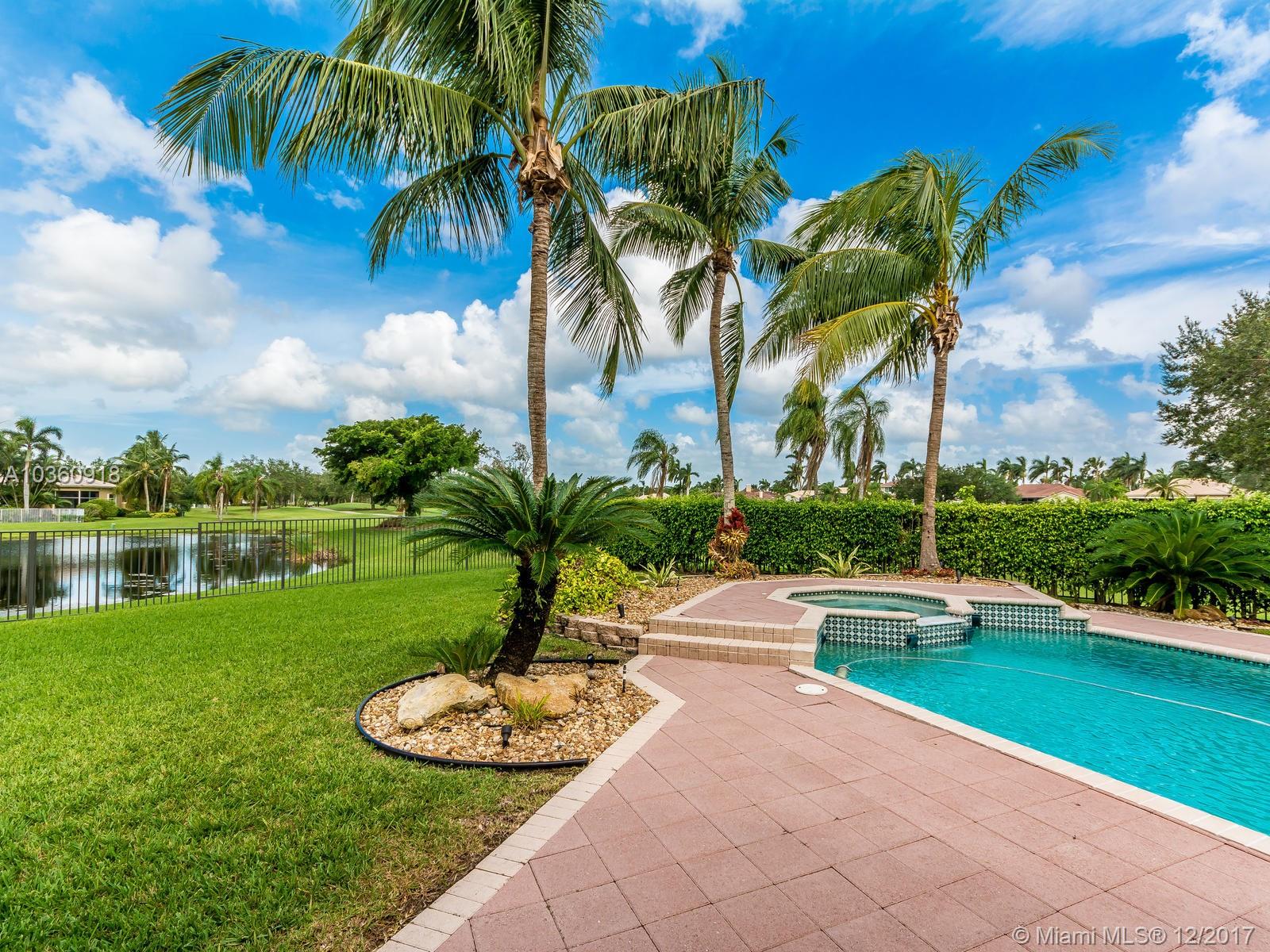 Custom golf course estate in the prestigious community of Monterey at Weston Hills Country Club, located along the 2nd hole of The Player's Course on a 17.854 sqf lot. Grand circular paver driveway welcomes you home. Gorgeous view of golf course, lake and pool. Heated pool/spa. 3 way split open floor plan. Marble floors in living areas and hardwood floors in bedrooms. 5BR, 4BA and Den. 3 car garage. Master bedroom with sitting room. Beautifully maintained. Gourmet Kitchen, separete breakfast area with bay window. Soaring ceiling, crown molding. New air condition with ecobee thermostats. New Bathrooms and laundry room. New led ilumination interior and exterior. Just painted entire house inside and outside.