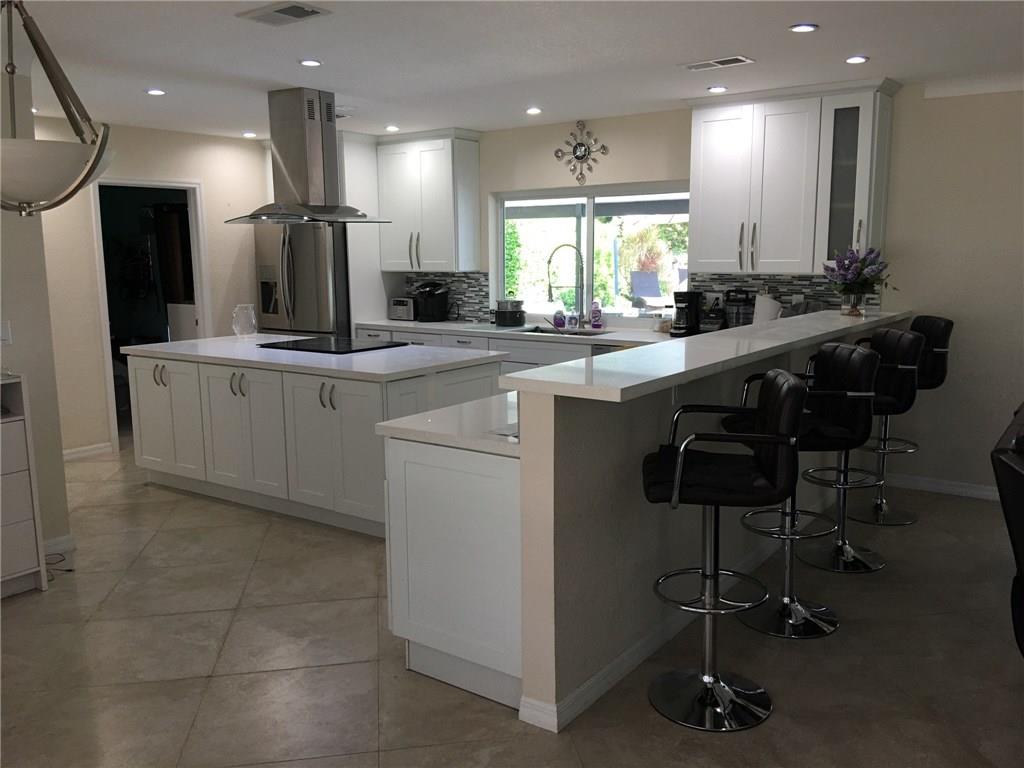 One of the most desirable houses on 7th Avenue - 4 bedrooms, 2 baths, 2 car garage, triple split floor plan, 75' waterfront, huge tiki hut, built in spa, pool and extended roof (great for huge parties). Desirable Eastern Exposure overlooking extra wide canal, One fixed bridge - 12' clearance, huge dock, new $50,000 kitchen with extra large center island, open floor plan, separate dining area, extra wide paver driveway holds 6 cars (3 across). Rarely available home priced to sell at $699k. It's a 10+++.