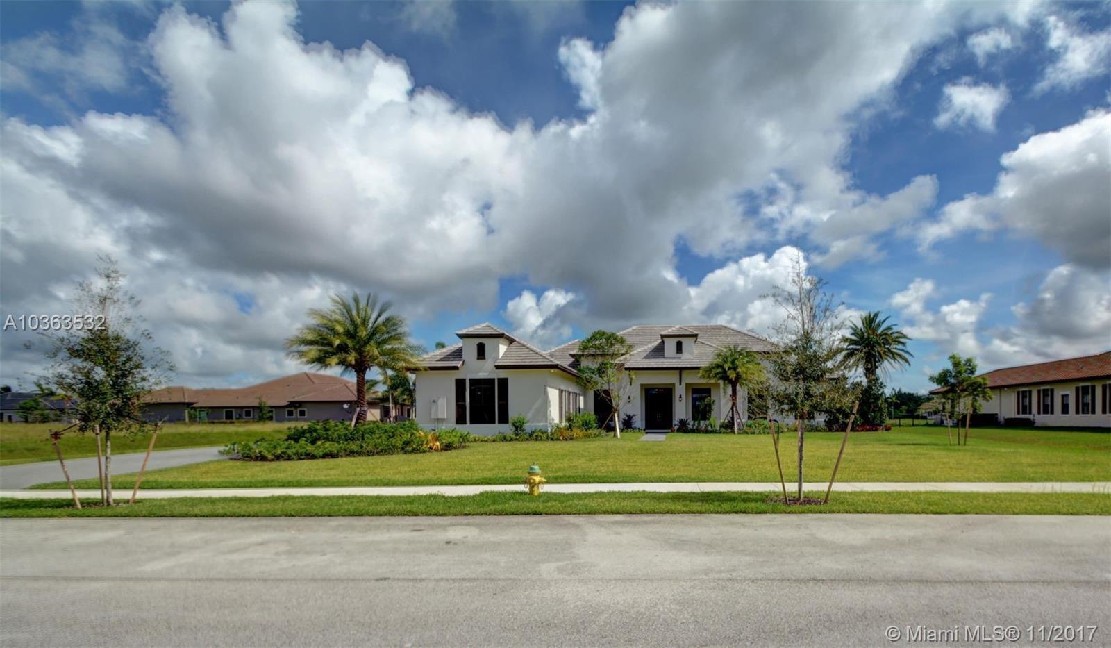 BRAND NEW! Just completed a gorgeous 1 story - contemporary style home with a unique courtyard that the living area and master suite overlook. Located on a picturesque lake in Davie's newest luxury development - Camelot Estates. This is a private neighborhood in central Davie with just 19 builder's acre home sites. A RATED Middle school district. This home is airy and completely surrounded by windows letting in natural light. Home features high end kitchen counter cabinets and quartz counter tops, top of the line 36 x 36 porcelain flooring, butler pantry with glass doors, Impact windows, french cabana doors, a huge master suite with custom closets and sitting area, Fleurco Aria free standing bath tub, electric car charger and more upgrades! HBW Builders warranty included.