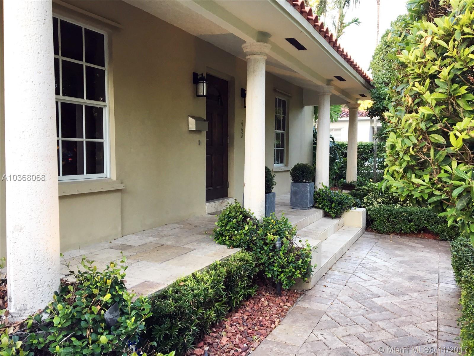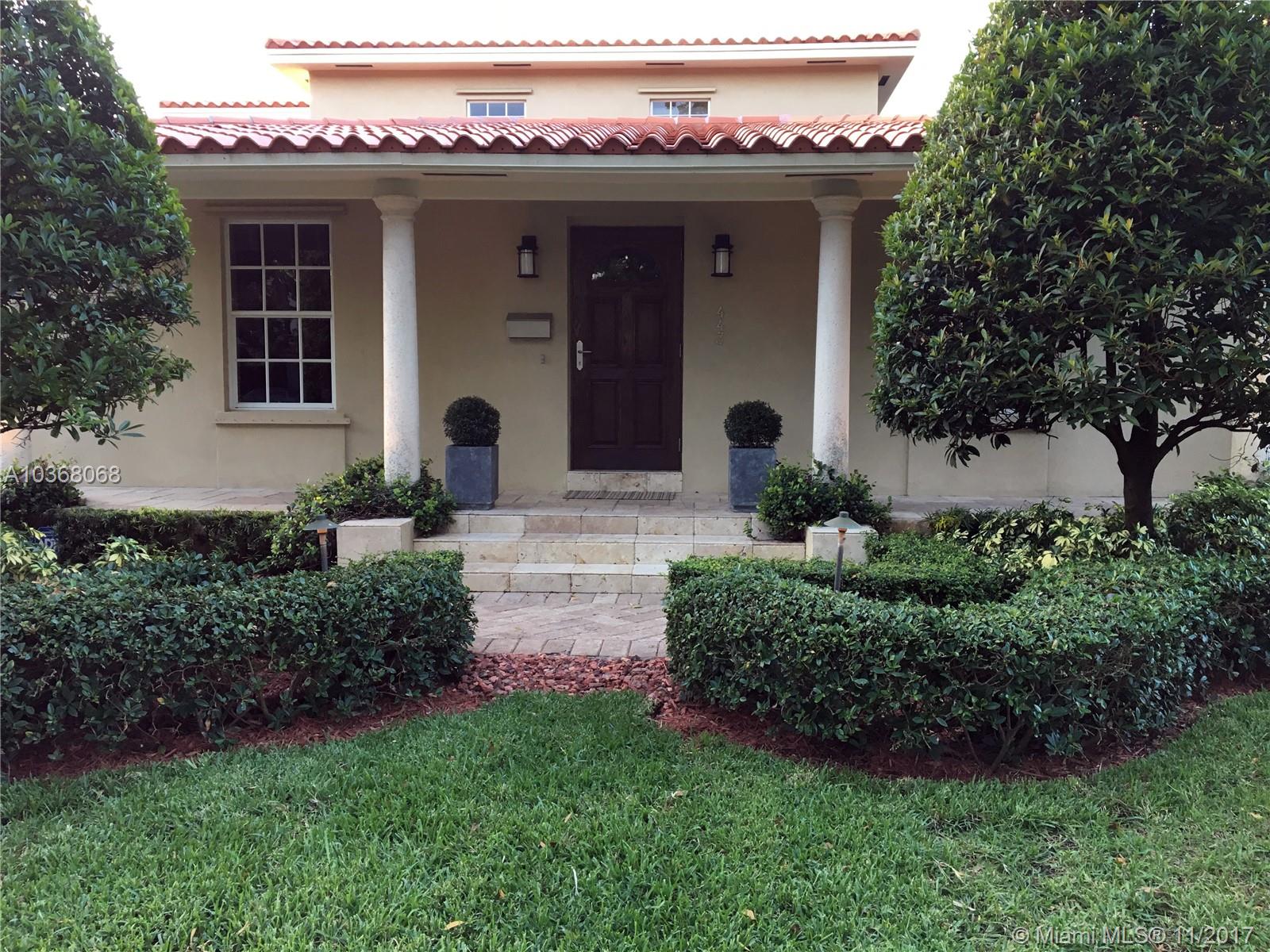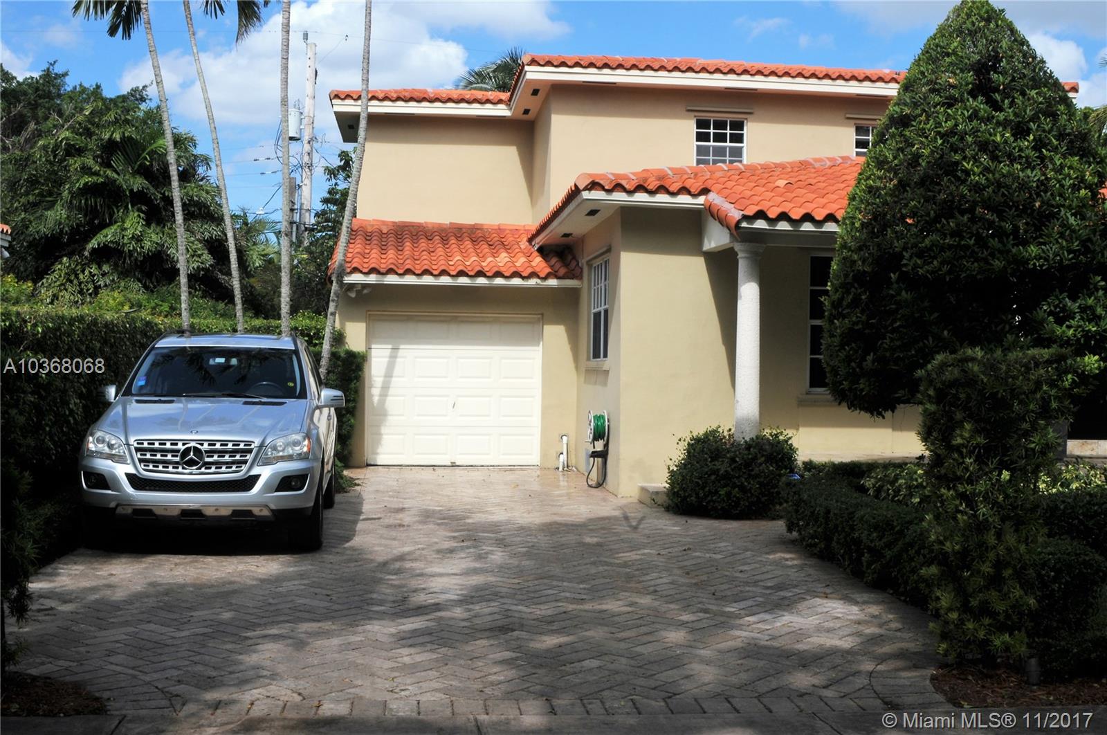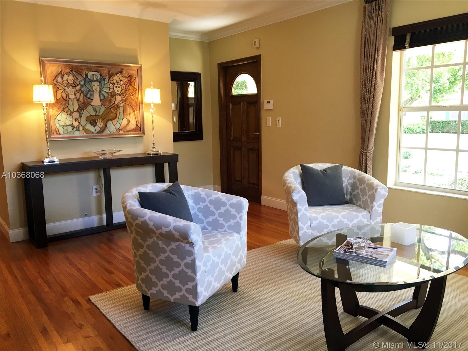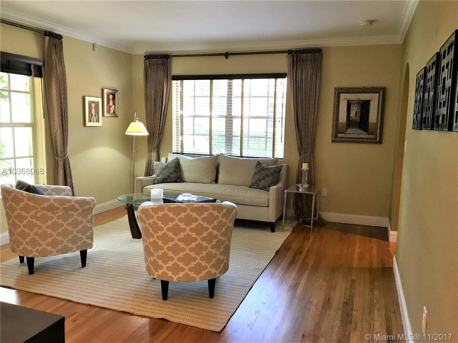Charming 2-story residence on a quiet Coral Gables Street near UM. This home has 2414 adj. sq. ft. It is updated and features a formal LR, DR and a spacious great room which includes a family room, breakfast area and eat-in kitchen. French doors open to the patio and a covered terrace with a wood beamed ceiling. Landscape lighting makes the setting perfect for entertaining. 2 bedrooms and 1.5 baths are on the first floor. The 2nd floor hosts the master suite with a walk-in closet, a master bath with separate tub and shower and a terrace. This house has 3 new central AC units, hardwood floors, one car garage and more and is well priced.