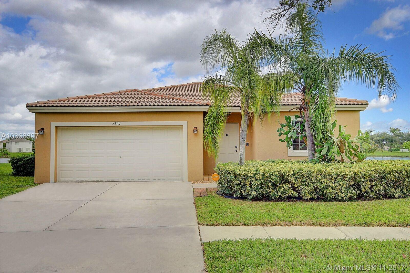 Lakefront home in desirable private community of Avalon. Relax in the over sized screened patio overlooking the lake. Home features 4 Bedrooms 2 Baths, family room and a 2 car garage with A/C used as a video room. Can be used as a play room but still a working garage. Updated stainless appliances, wood flooring in living and family. Upgraded carpeting in bedrooms. Two community pools with playground for the kids! Close to shopping and all amenities.