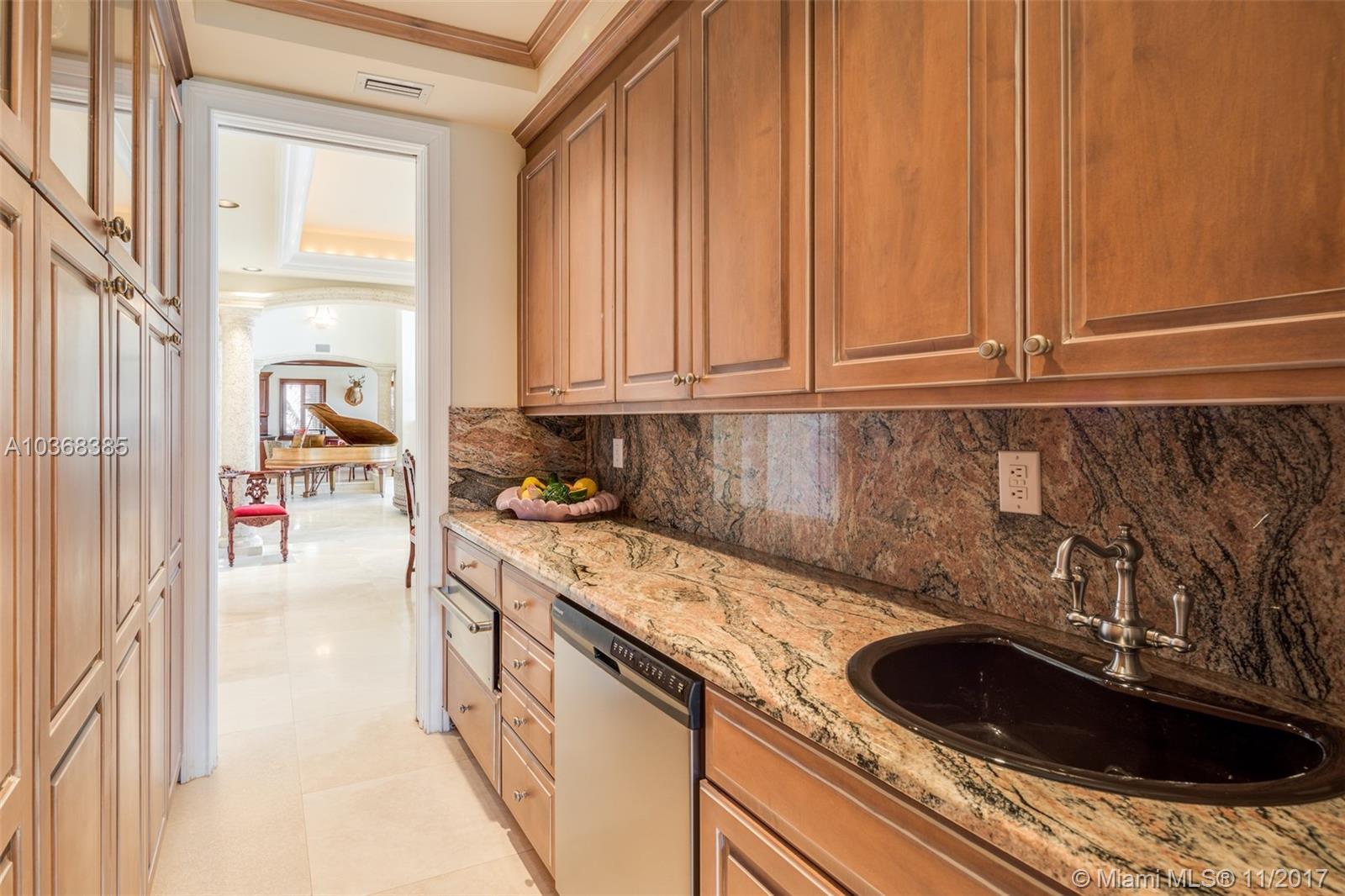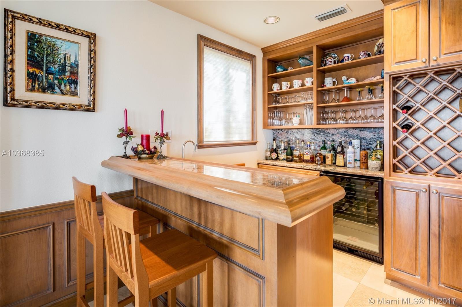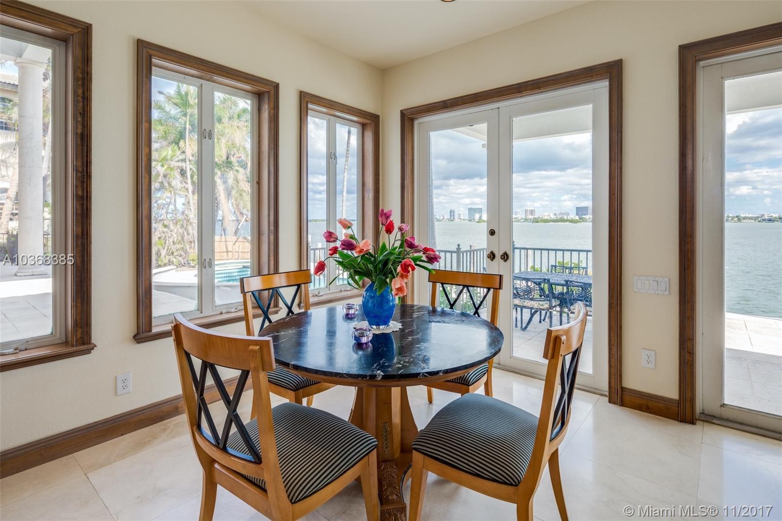 Waterfront Mediterranean Oasis in the heart of Key Stone Island featuring 102 Ft on the open Bay. Sophisticated design featuring grand entry w direct unobstructed water views, impeccable marble floors, volume ceilings, high impact windows & doors, gourmet kitchen w/double wall oven, double refrigerator, gas stove. Master suite bathroom w his & hers everything! Walk- in closets for each. Private terrace w stunning views. Heated pool & spa overlooking new dock. Great for entertaining! Separate guest room w private entry, formal butlers pantry, wet bar, 3 car garage--