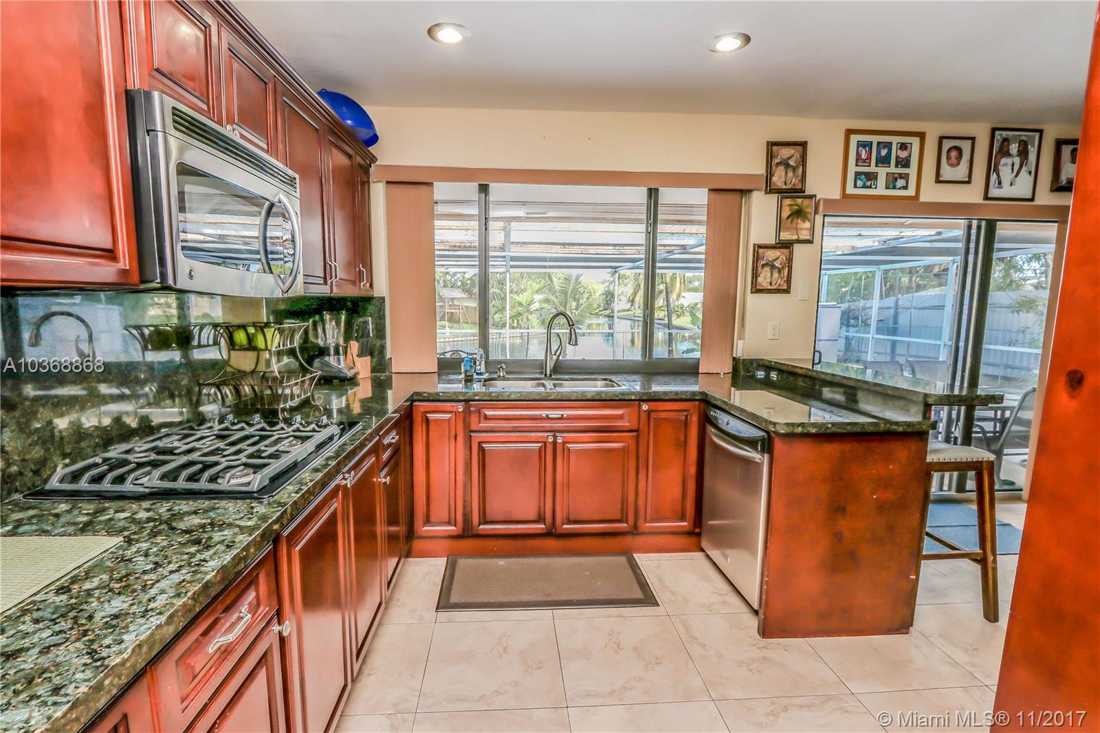 Renovated 3/2 Lake front Home with Pool in Hollywood. Great layout with open kitchen overlooking sparkling pool, granite countertops, new top of the line SS appliances, tile & wood floors throughout. Formal Dining room, Family room. New screen for Pool enclosure, Hurricane impact windows & doors.