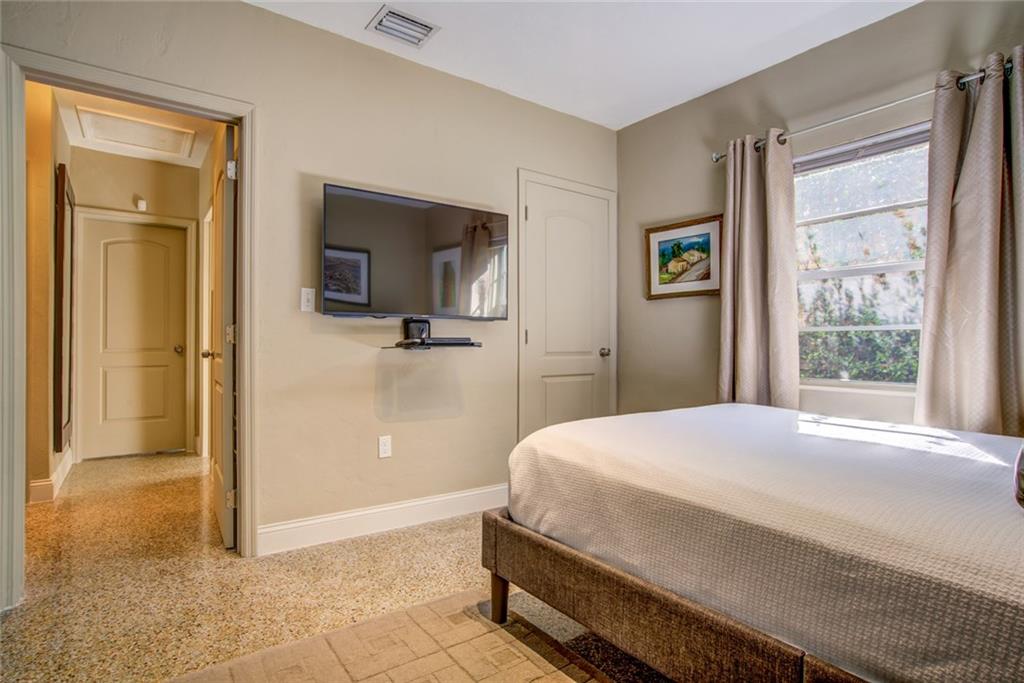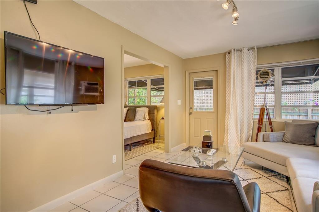 Victoria Park, totally private cul-de-sac location. Property consists of two separate concrete block structures. Updated and meticulously maintained property. Main house consists of two bedrooms and one bath with an attached efficiency/loft with full bath and private entrance. Separate guesthouse is a one bedroom, one bath with full kitchen. All televisions excluded. Perfect for an airbnb or a homeowner that would like income and/or needs separate guest quarters.