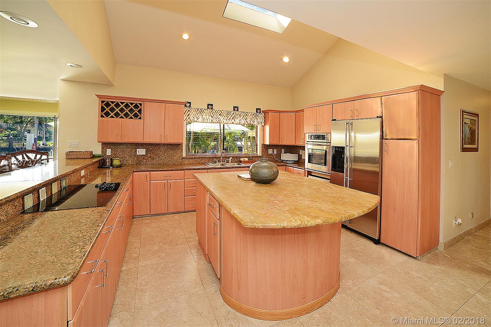 Gorgeous & classic styled Mediterranean two story home on a very unique tree lined corner lot w/ 88 Feet of Deep water, only three homes from the Intracoastal. Many significant architectural details greet you from the moment you enter this home through the elegant edged class & rich wood front doors. Downstairs: 24 inch marble floors, open kitchen w/ a huge island, formal dinning room, beautiful living room w/ fireplace, & two guest bedrooms each w/ on suite baths. Fantastic two story foyer w/ a winding solid wood staircase to the second level. An oversized master bedroom w/ vaulted ceilings, wood floors, gorgeous stone fireplace, big walk-in closet, and a massive private patio overlooking the pool & water. Master bath has marble floors, infinity edge tub, & huge shower.