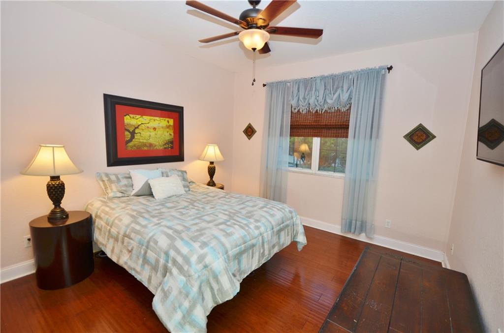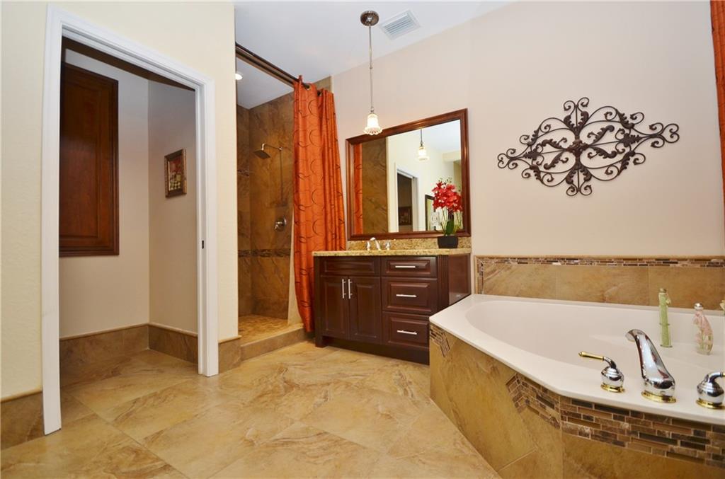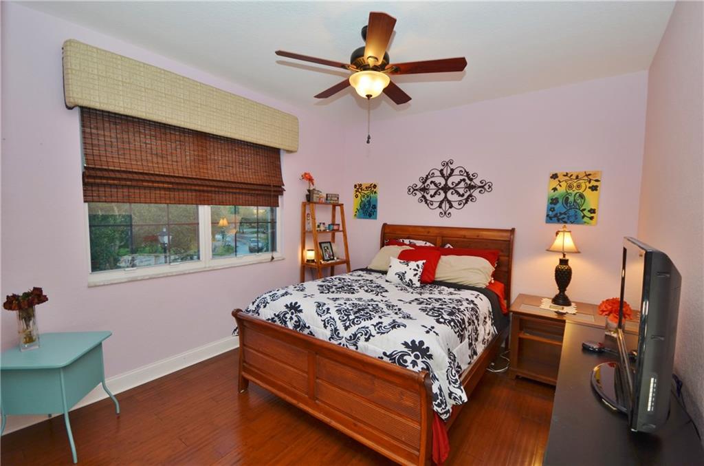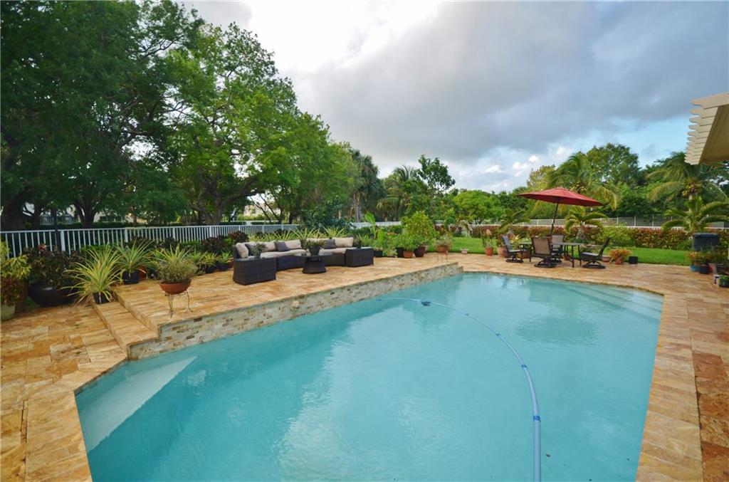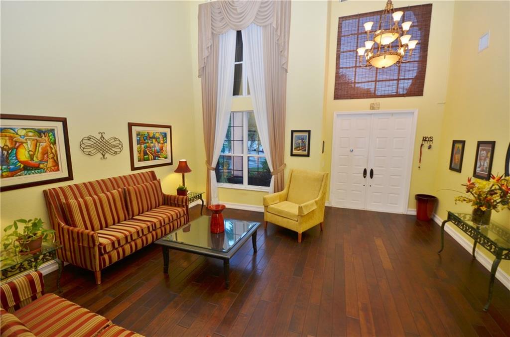 Wow!! Enter this expansive 5 bedrooms+ 6th for den or bedroom, full bath nearby, & 2 full sized master suites, with endless possibilities! From the gorgeous REAL WOOD flooring throughout, stunning totally renovated kitchen, with virtually every possible feature, upgraded baths & a grand wrought iron staircase. Custom closets in most bedrooms, recessed lighting, & epoxy garage floor, are only a few features. Travertine Patio & inviting pool & huge yard, & even accordion shutters! Guard gated & Rec Center