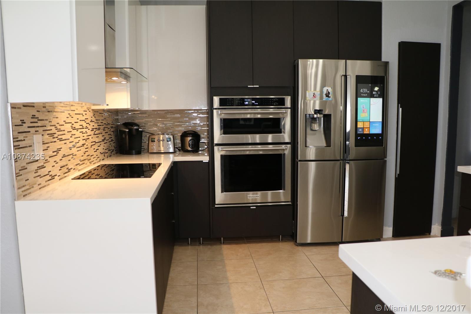 Spacious corner lot 5/5 home in PSN/Miami Lakes. 1 Master Bedroom on level floor, another on second. New kitchen with quartz countertop and waterfall. All Stainless Steel appliances, smart refrigerator and induction cooktop. Modern cherrywood 96" double door with fingerprint/card and code lock. Huge backyard with gate on both sides. Large master suite with marble in master bathroom. Great school district and centrally located mins away from main highways. Agent/Owner.No HOA