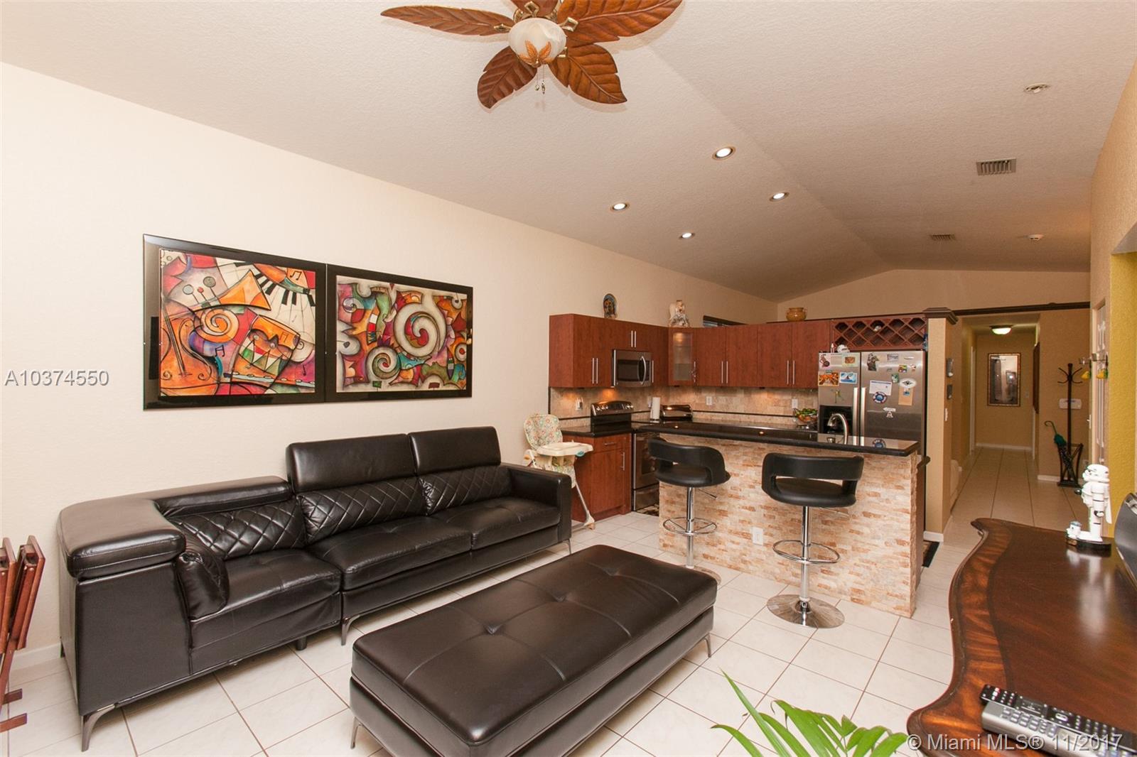 Beautiful 1 story single family home located in SILVER SHORES (GATED Community with Security guards on both entrances). 4 beds, 2 baths; family, dining and living rooms and garage. Renovated kitchen with island and granite countertops opens to the family room. Patio with PVC fence and gates on both sides. Master bedroom has walk-in closet for her and closet for him. Renovated bathrooms. Renovated / tiled garage with closets, attic ladder and insulated garage door. Can still be used as a garage. New A/C. New tankless water heater. New Household filtration system (full house). Excellent and well maintained community, low HOA, immediately west of I-75, clubhouse with ballroom, swimming pool, renovated (full equipped) gym, mini-golf, playgrounds, gazebo / BBQ, and lake with fishing deck.