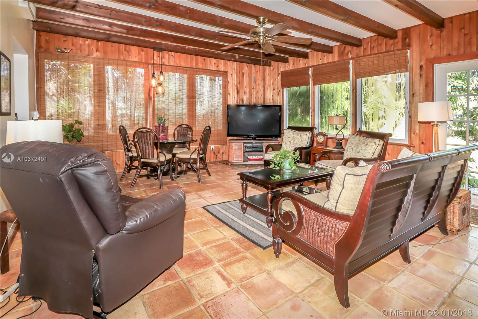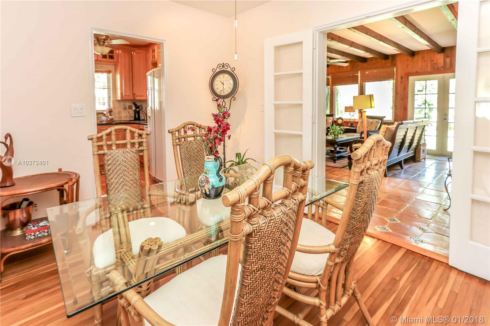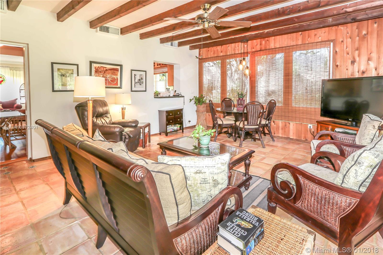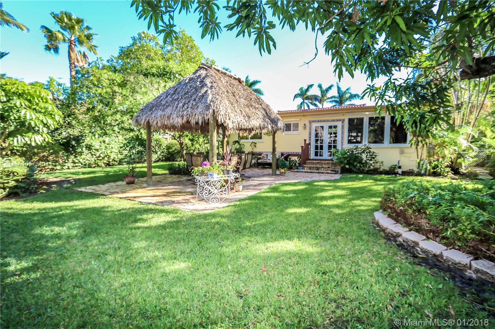 Classic, elegant and warm with a touch of the tropics, this home is on a double lot and features vaulted ceilings. Located east of US1 in the Hollywood Lakes area. Two blocks from south lake. This fantastic property features 3 bedrooms/2 baths, and 1 car garage. Formal living room and formal dining room. Original hardwood floors and crown molding, Spacious master bedroom has en suite bath and walk in closet with built in storage. Kitchen features granite counter tops and custom cabinetry. The over sized family room has exposed wood beams and is surrounded by windows facing a stunning backyard. The private backyard showcases tropical landscaping and large tiki hut. Great for entertaining. Impact windows. Room for a pool. Close to the beach, shopping, dining and FTL Int’l Airport.
