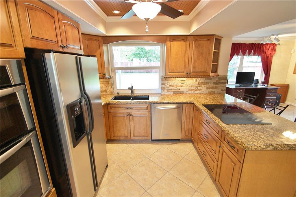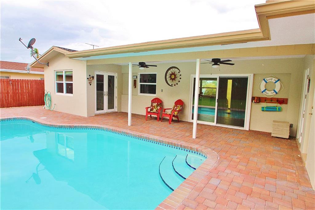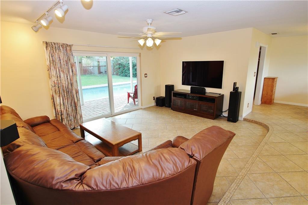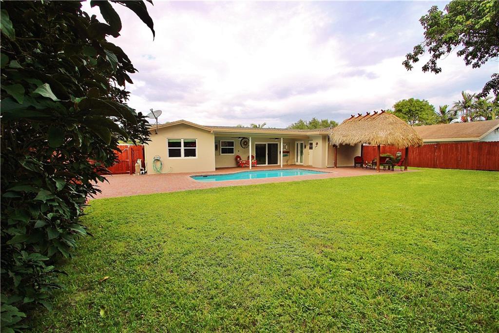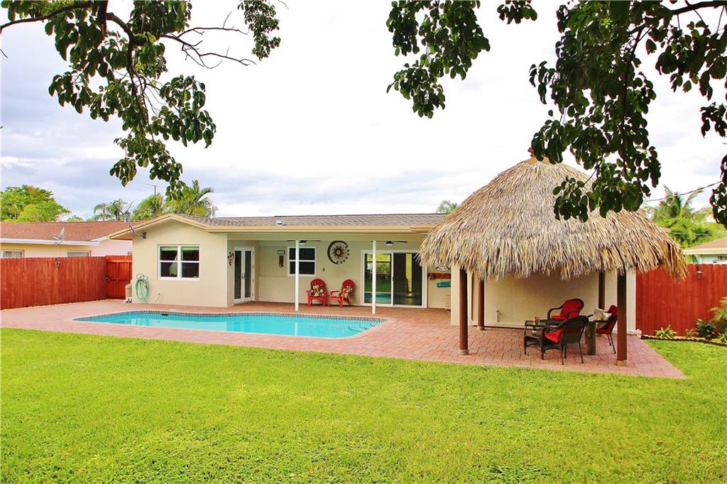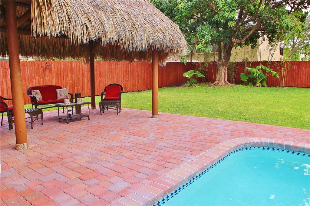 Wow what a rare opportunity to get an awesome "Home" on a Huge, Over Sized Lot in a great location!!. Lovely Open concept Kitchen with Wood Cabinets, Granite Counters & Window onto the Pool/Garden. 30k on Impact Windows, Huge 10,000+ Sq Ft Fenced, Lot, Huge pool with lots of paver area and a large Tiki Hut, Nice Laundry Room, 2yrs on H2O Heater/1 Car Garage/Crown Molding/Gutters/Sprinkler System/Great Roof. Living Room Sliding Doors flow out onto covered Porch Area...