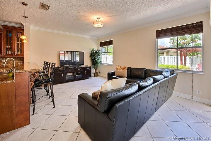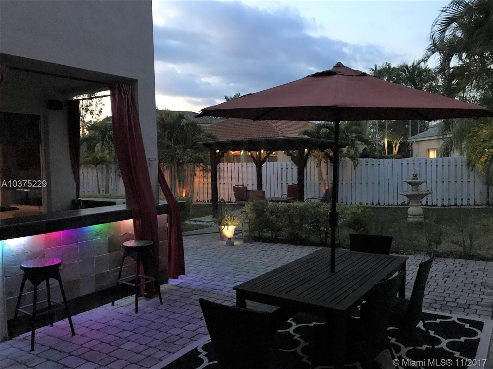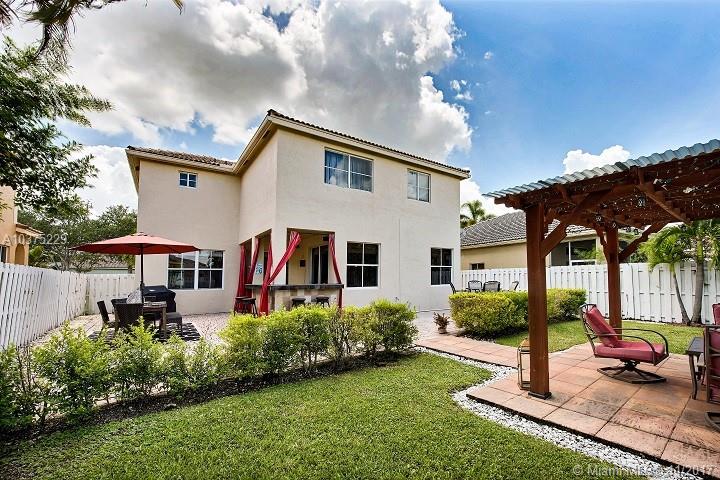 Built strong, Concrete brick exterior on both levels. Enjoy this Mediterranean style upgraded home in gated Meadows community! Spacious 4 bedroom, 2½ bath, 2 car garage w/covered front porch & fenced backyard for privacy. Plenty of room for kids and pets to enjoy! Fantastic area for year round entertainment w/outdoor speakers, lighted custom bar, and pergola. Renovated baths and kitchen w/custom wood cabinets, stainless steal appliances & granite countertops. Built-in organizer in bedroom closets and crown molding on both levels. Front load washer & dryer are upstairs. Property is just steps from community pool, clubhouse, kid playground, & basketball ct. Low HOA of $125.00 per mo (Pay quarterly)! A+ zoned schools, Close to shops, schools, highways, roads ++. Excellent place to call home!