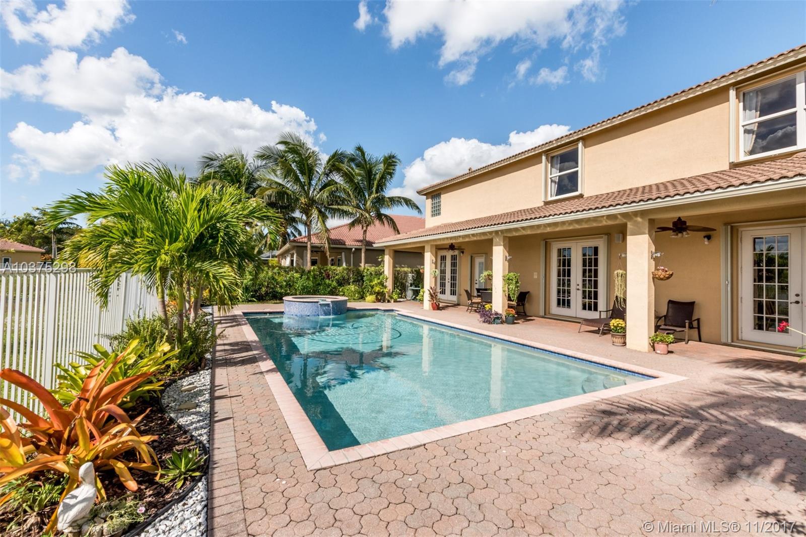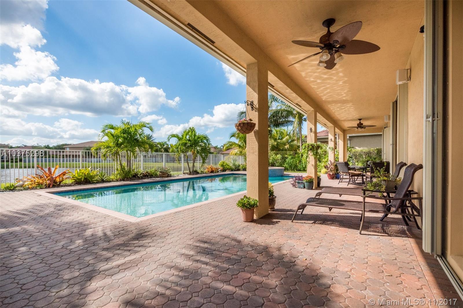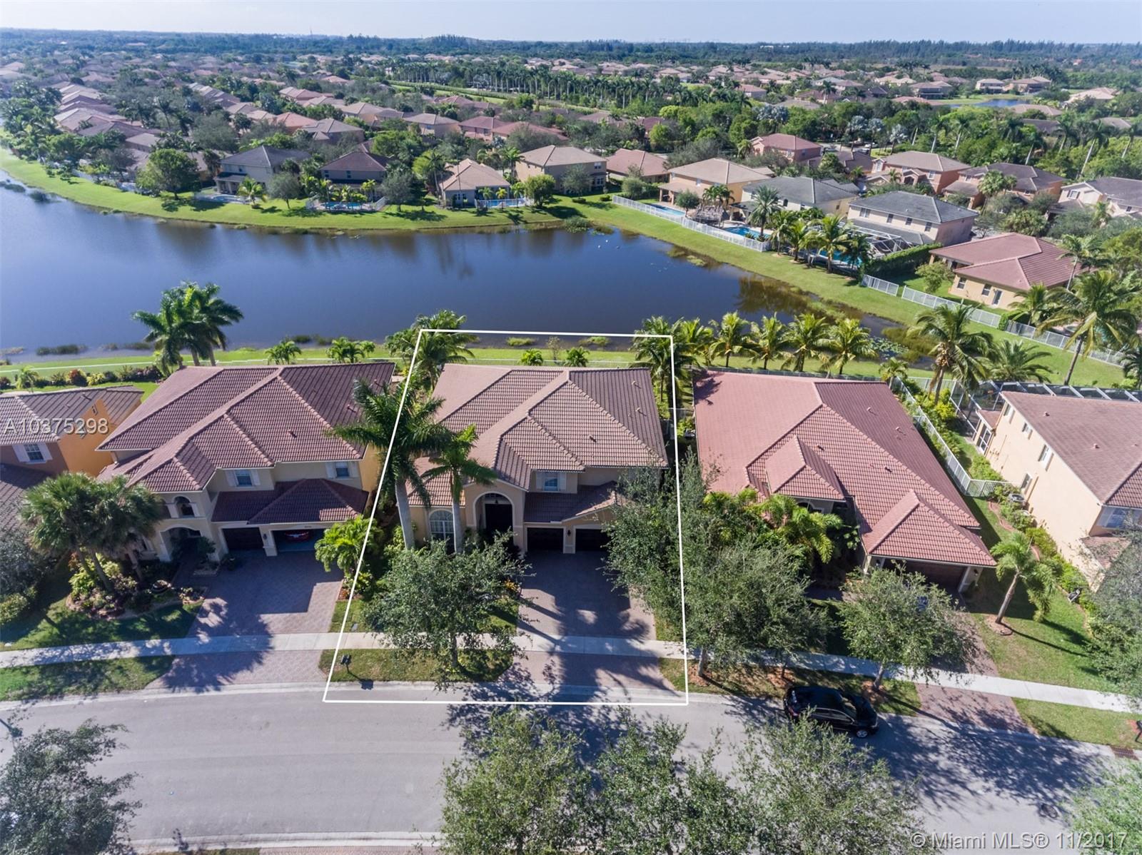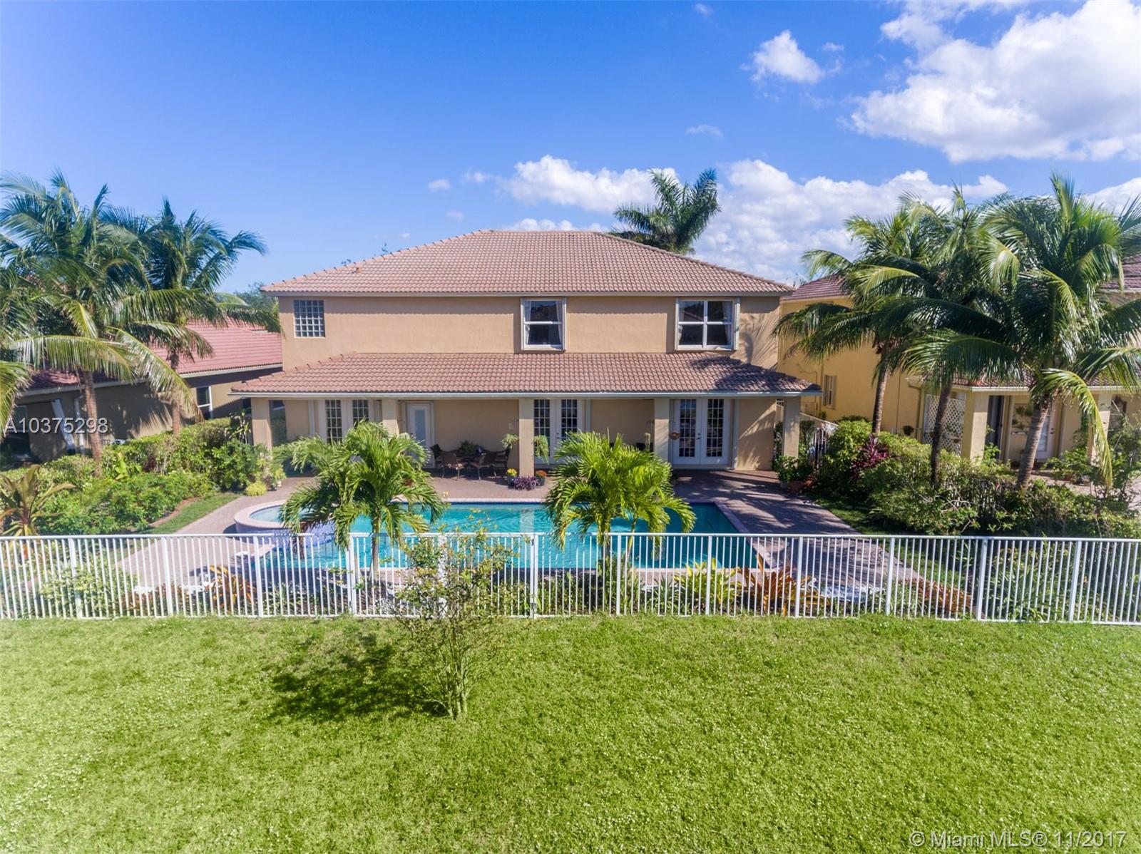 Turn Key Violet model with upgrades galore. Tucked on a quiet lakefront lot, fully fenced and privacy hedged with oversized 36x18 custom pool, paver patio and full length overhang for your comfort. Enter this decorators delight with warm real wood floors flowing through the living areas. House transformed in 2010. Marble flooring in the gourmet kitchen with upgraded 42 inch wood cabinetry, granite countertops, wall oven, Stainless Steel appliances. French doors to private yard. Full bed and 2 baths first floor (cabana) perfect as an in-law suite. All wood floors up with wrought iron dual stairs. Loft converted to playroom with closets. All bathrooms renovated. Oversized master bedroom with sitting area. New A/C(2010) and hot water heater.Extensive crown moldings. Accordion Shutters