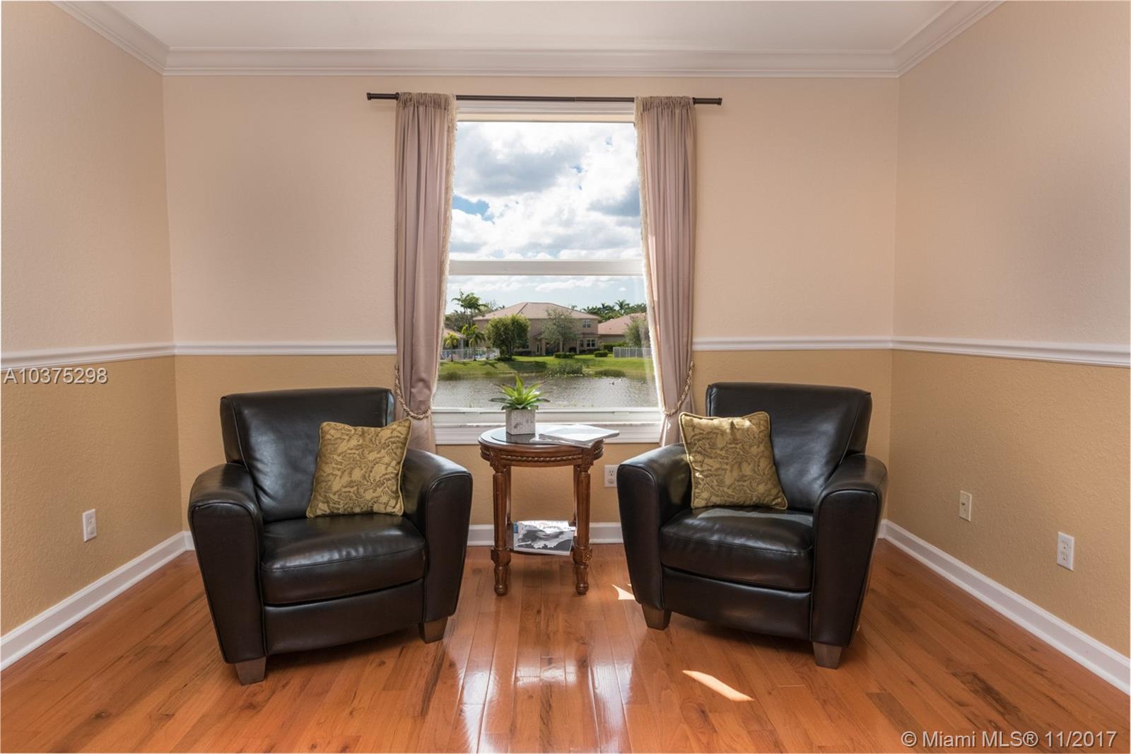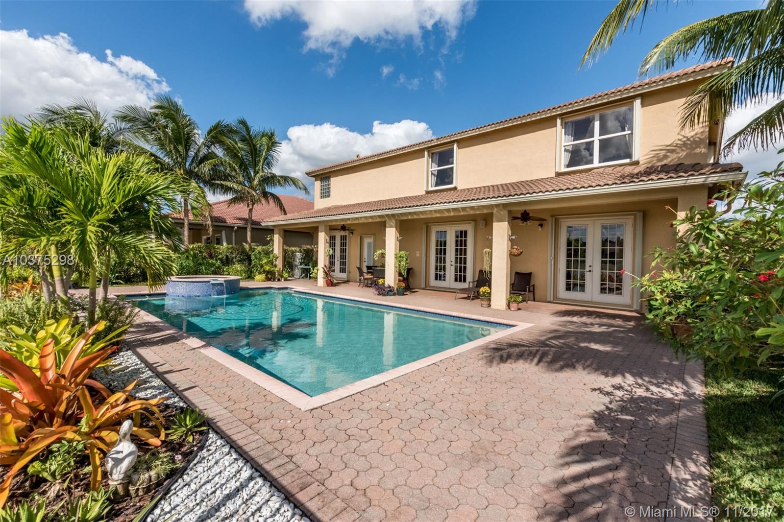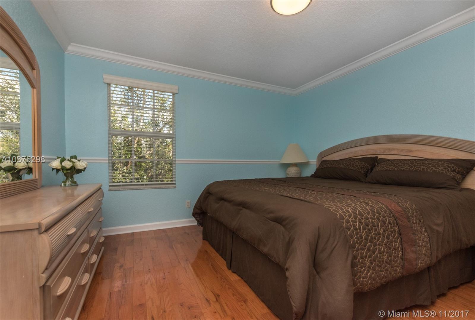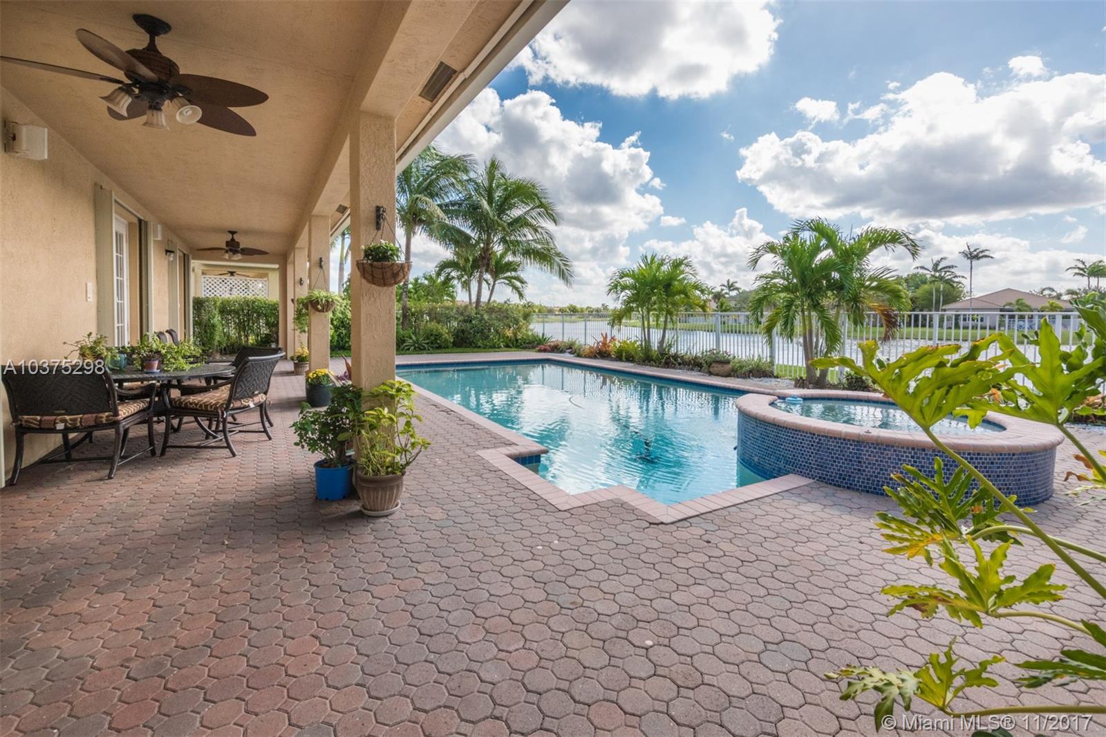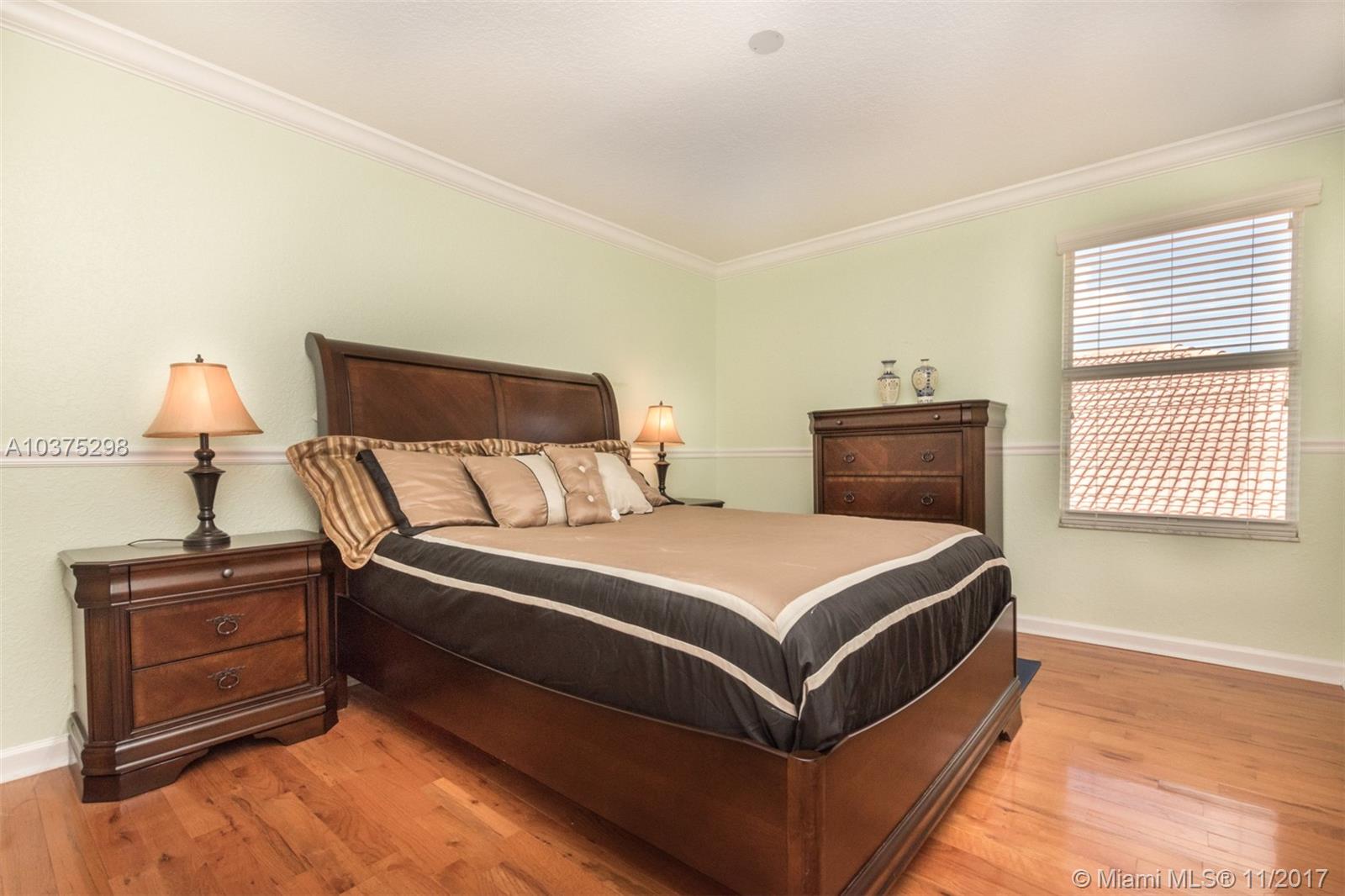 Turn Key Violet model with upgrades galore. Tucked on a quiet lakefront lot, fully fenced and privacy hedged with oversized 36x18 custom pool, paver patio and full length overhang for your comfort. Enter this decorators delight with warm real wood floors flowing through the living areas. House transformed in 2010. Marble flooring in the gourmet kitchen with upgraded 42 inch wood cabinetry, granite countertops, wall oven, Stainless Steel appliances. French doors to private yard. Full bed and 2 baths first floor (cabana) perfect as an in-law suite. All wood floors up with wrought iron dual stairs. Loft converted to playroom with closets. All bathrooms renovated. Oversized master bedroom with sitting area. New A/C(2010) and hot water heater.Extensive crown moldings. Accordion Shutters