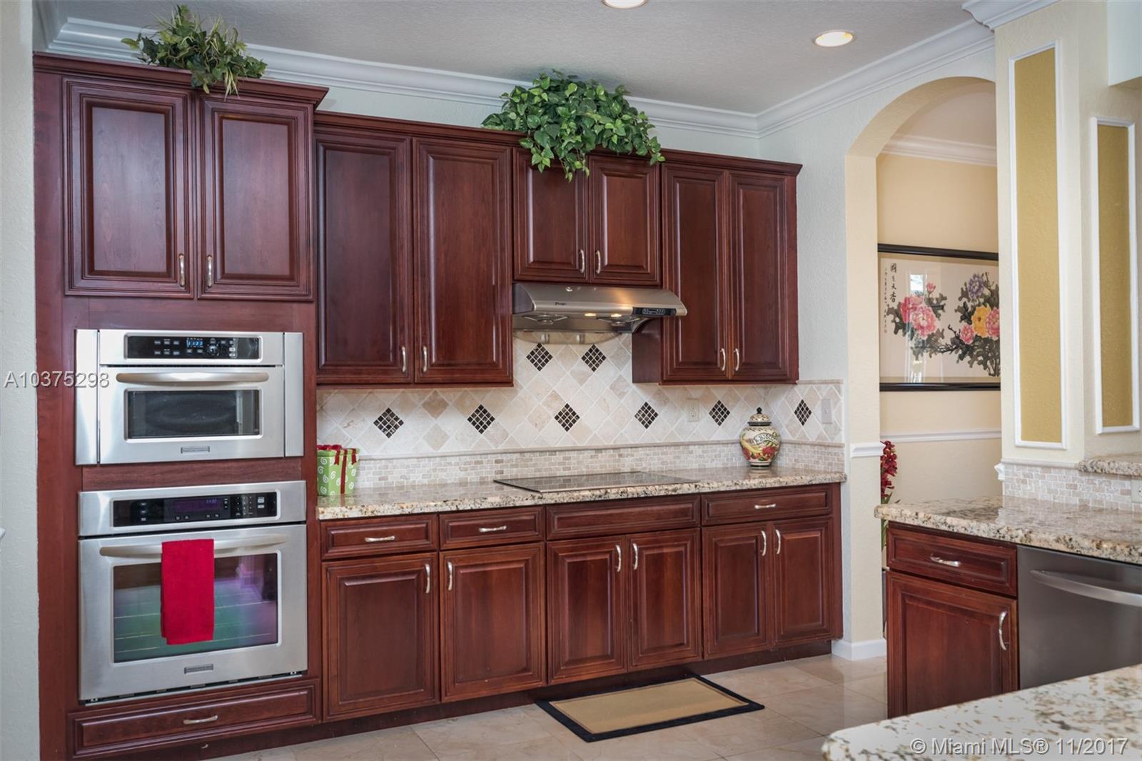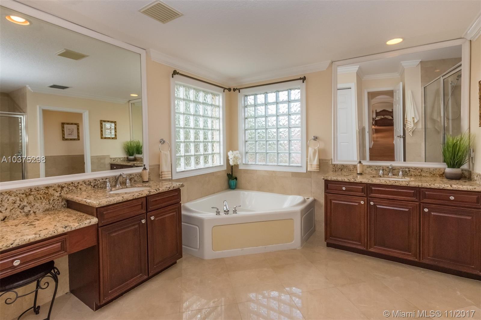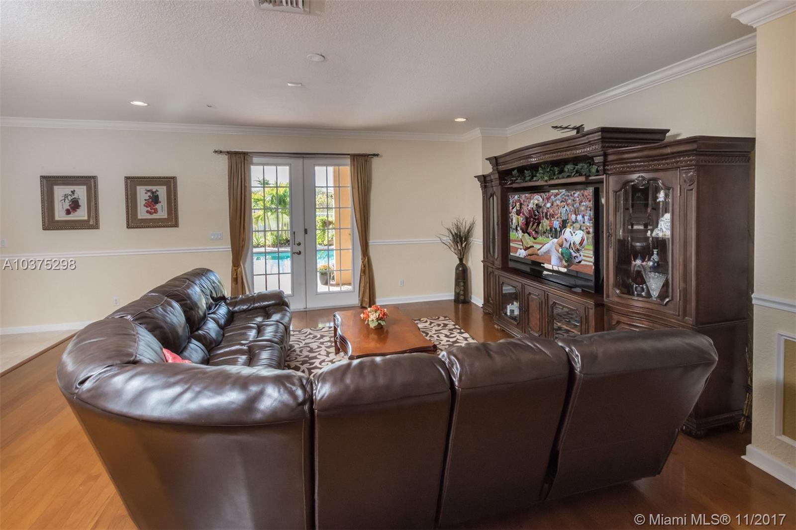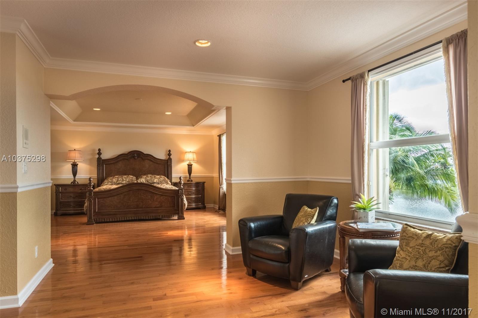 Turn Key Violet model with upgrades galore. Tucked on a quiet lakefront lot, fully fenced and privacy hedged with oversized 36x18 custom pool, paver patio and full length overhang for your comfort. Enter this decorators delight with warm real wood floors flowing through the living areas. House transformed in 2010. Marble flooring in the gourmet kitchen with upgraded 42 inch wood cabinetry, granite countertops, wall oven, Stainless Steel appliances. French doors to private yard. Full bed and 2 baths first floor (cabana) perfect as an in-law suite. All wood floors up with wrought iron dual stairs. Loft converted to playroom with closets. All bathrooms renovated. Oversized master bedroom with sitting area. New A/C(2010) and hot water heater.Extensive crown moldings. Accordion Shutters
