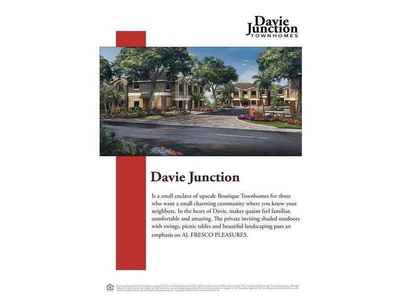 NEW HOME CONSTRUCTION * DELIVERED December 2017 Immaculate Townhouse located near the heart of Davie Great new family town homes offered in 3 and 4 bedroom models.Just under 2000 sq. ft. 3/2.5 with a garage, 4/3.5 bedroom does not have a garage. Community will have 12 homes and a small family park.Close to major highways , The Hard Rock Hotel and Casino.and a short drive to the new train station with access to Miami and West Palm Beach opening in fall 2017 and will be expanded to Cocoa and Orlando to come
