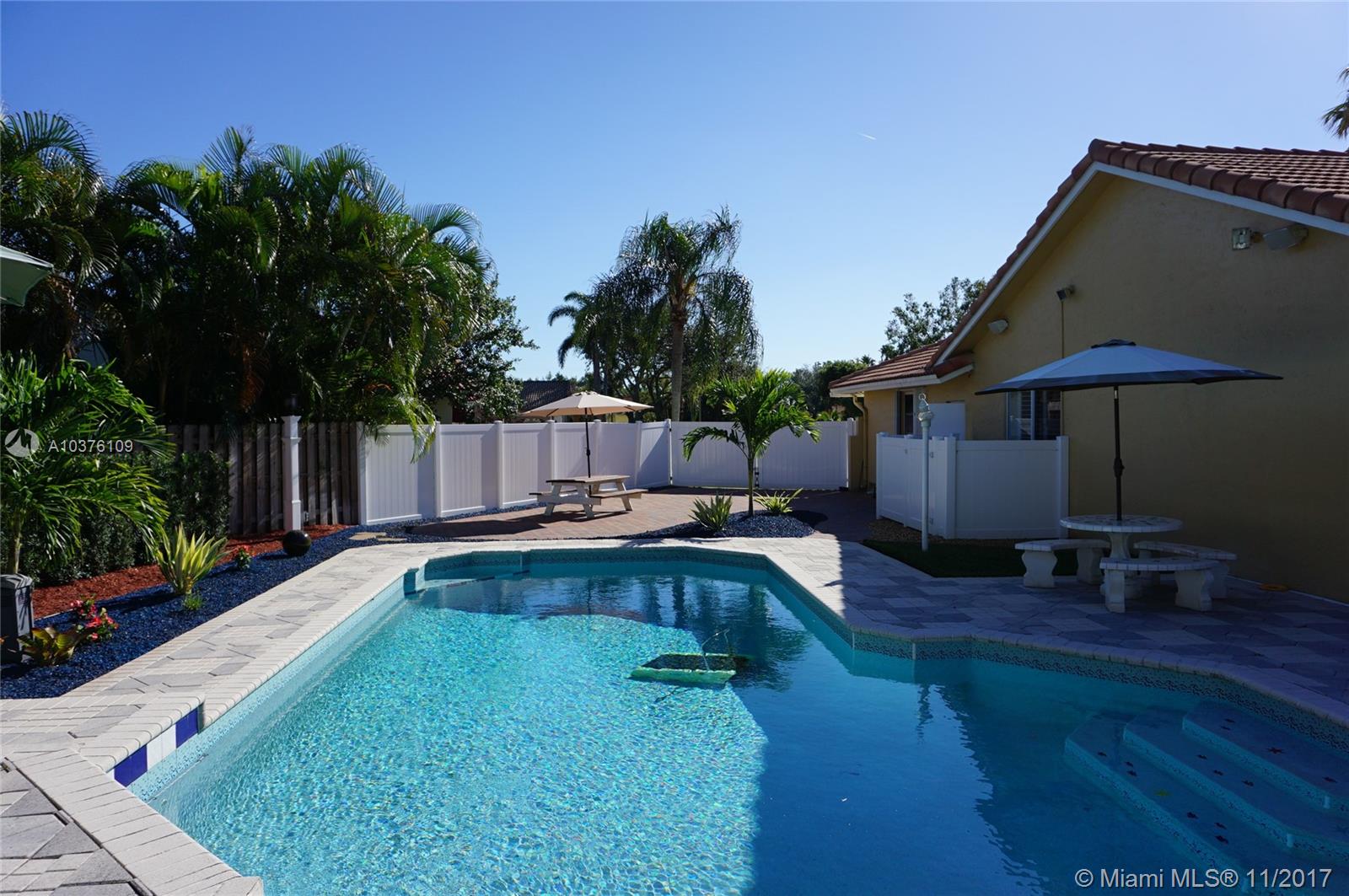 Exquisite 4 bed 2 bath renovated house with oversized lot and Salt water pool with fiber optic lights & waterfall with raised sundeck. Spacious dining & living room, beautiful kitchen with the leather finish granite counters, Designer renovated baths. All closets wooden custom made. 24x24 marble floors in foyer, hallways, family & dining rooms. Full perimeter al arm system, full 5 channel surround sound in family rm. Outdoor speakers. Oversized cul de sac lot with new fenced in yard &pavers bricks.Screened patio, Top of the line brand new digital AC, Digital garage opener, Re-done landscaping, tile roof with 3 brand new skylights, Divided backyard from the pool for Child safety,Organized California style closets. This is a real gem with perfect A + rated schools and great family neighbors.