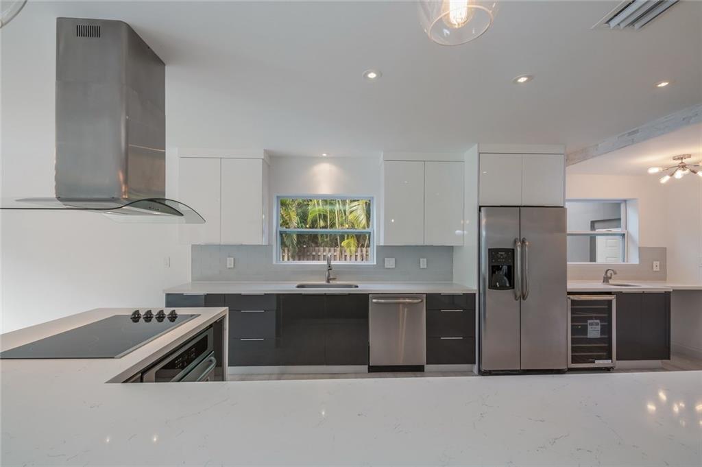 Amazing location East of Bayview Dr. in prestigious Coral Ridge! Completely "Turn Key"! This immaculate 3 bed, 2 bath, 2 car garage pool home incorporates modern design w/ an open concept kitchen complete w/ wrap around bar, white quartz countertops w/ waterfall edges, custom Luxor cabinets, wine cooler, separate prep sink & wet bar. White wash plank style porcelain tile floors throughout, custom bathrooms w/ floating vanities & custom fixtures. Impact windows, newly landscaped! Bayview School district!