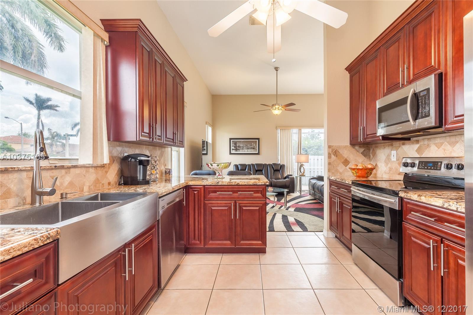 REDUCED STUNNING CORNER HOME LOCATED IN PALM COVE AT MONARCH LAKES. 3 BEDROOM, 3 BATHS AND LARGE LOFT. FIRST FLOOR BOASTS OF 1 BEDROOM WITH WALK IN CLOSET AND LAMINATE FLOOR, FULL BATHROOM, LAUNDRY ROOM, UPGRADED CHERRY WOOD KITCHEN CABINETS WITH BRAZILIAN MARBLE COUNTER TOP AND BACK SPLASH, LAZY SUSAN, FARM SINK, BREAKFAST AREA, SPACIOUS FAMILY ROOM 15X25FT . SECOND LEVEL HAS LARGE LOFT THAT CAN EASILY BE CONV. TO 4TH BEDROOM, LAMINATE FLOOR THROUGHOUT, HUGE MASTER BEDROOM WITH FULLY REMODELED BATHROOM, SEPARATE TUB AND SHOWER WITH FRAMELESS DOORS, DOUBLE SINK, LINEN AND WALK IN CLOSET. BACK YARD HAS SCREENED PATIO AND DECORATIVE STAMPED CONCRETE, LARGE YARD WITH ROOM FOR POOL, SPRINKLER SYSTEM, READY TO MOVE IN.