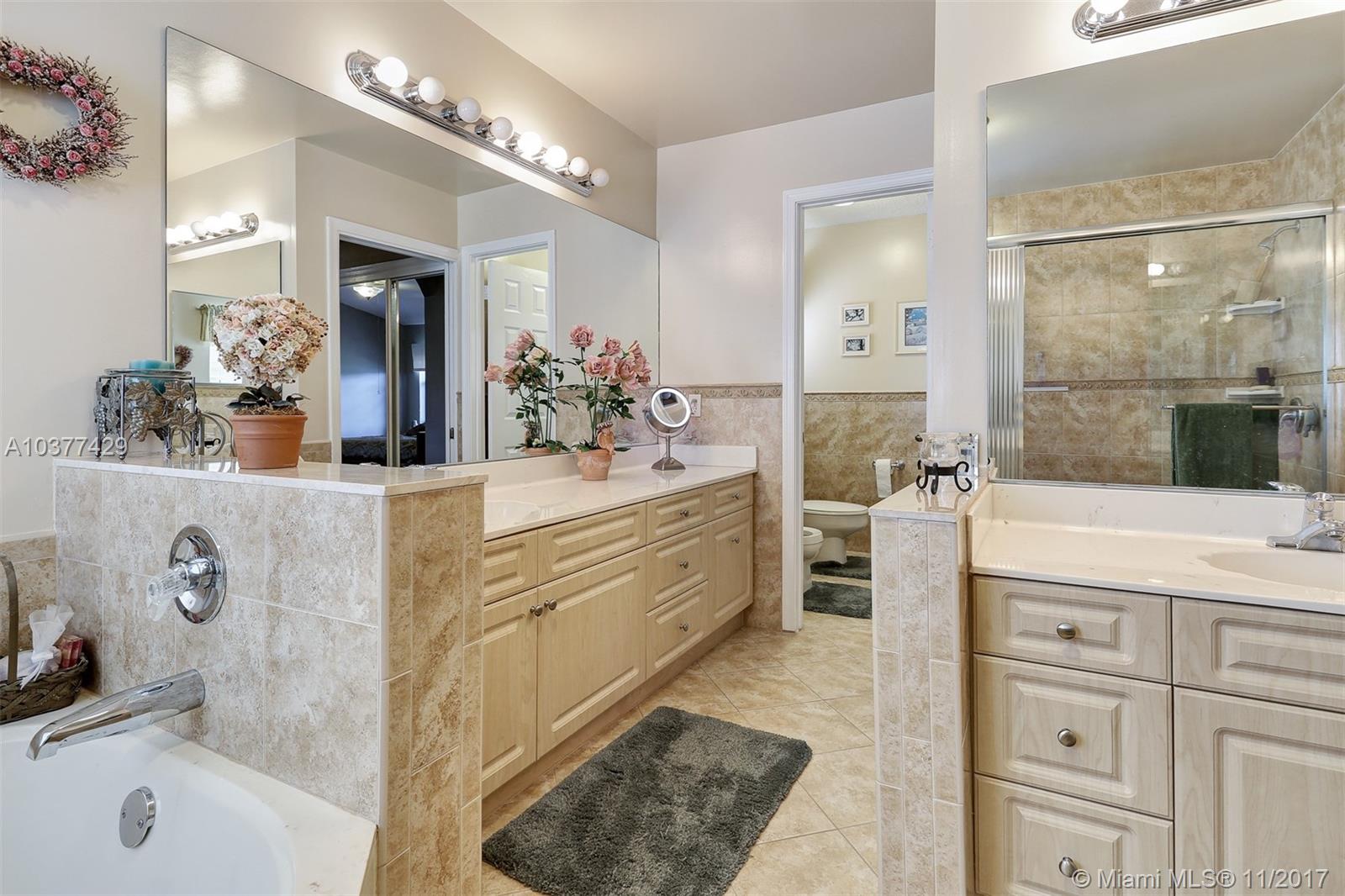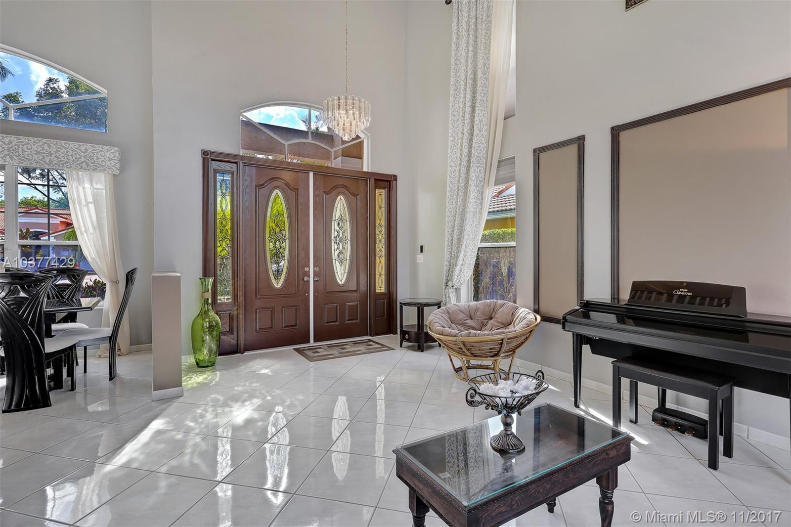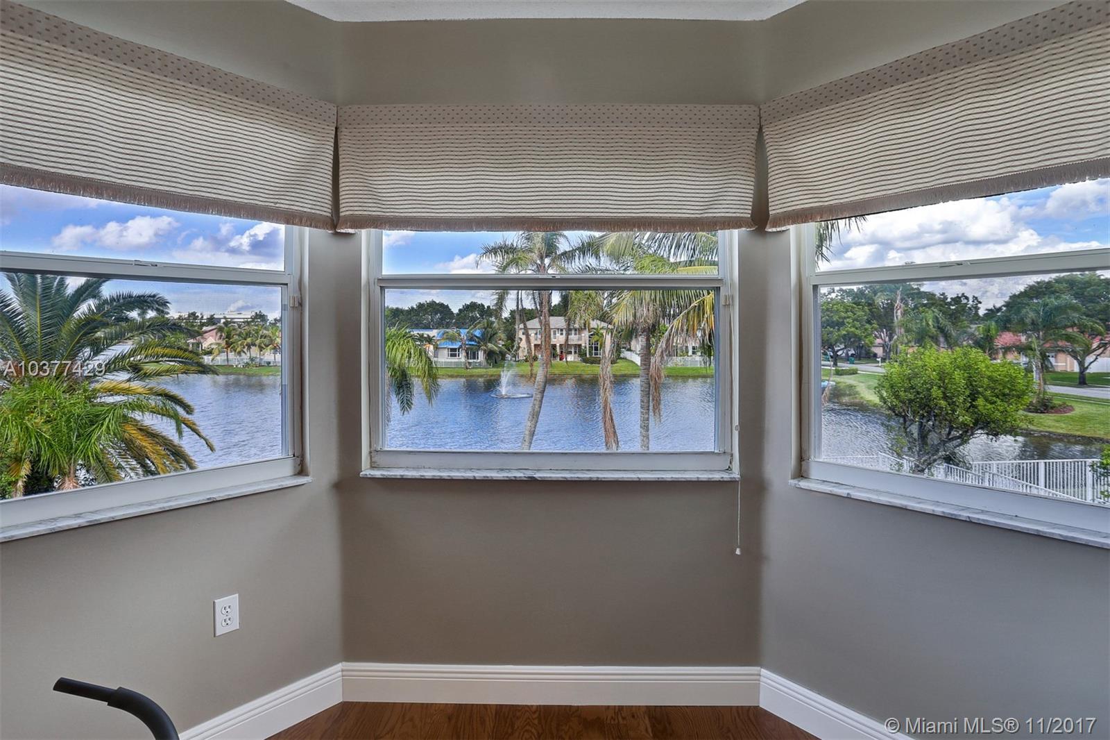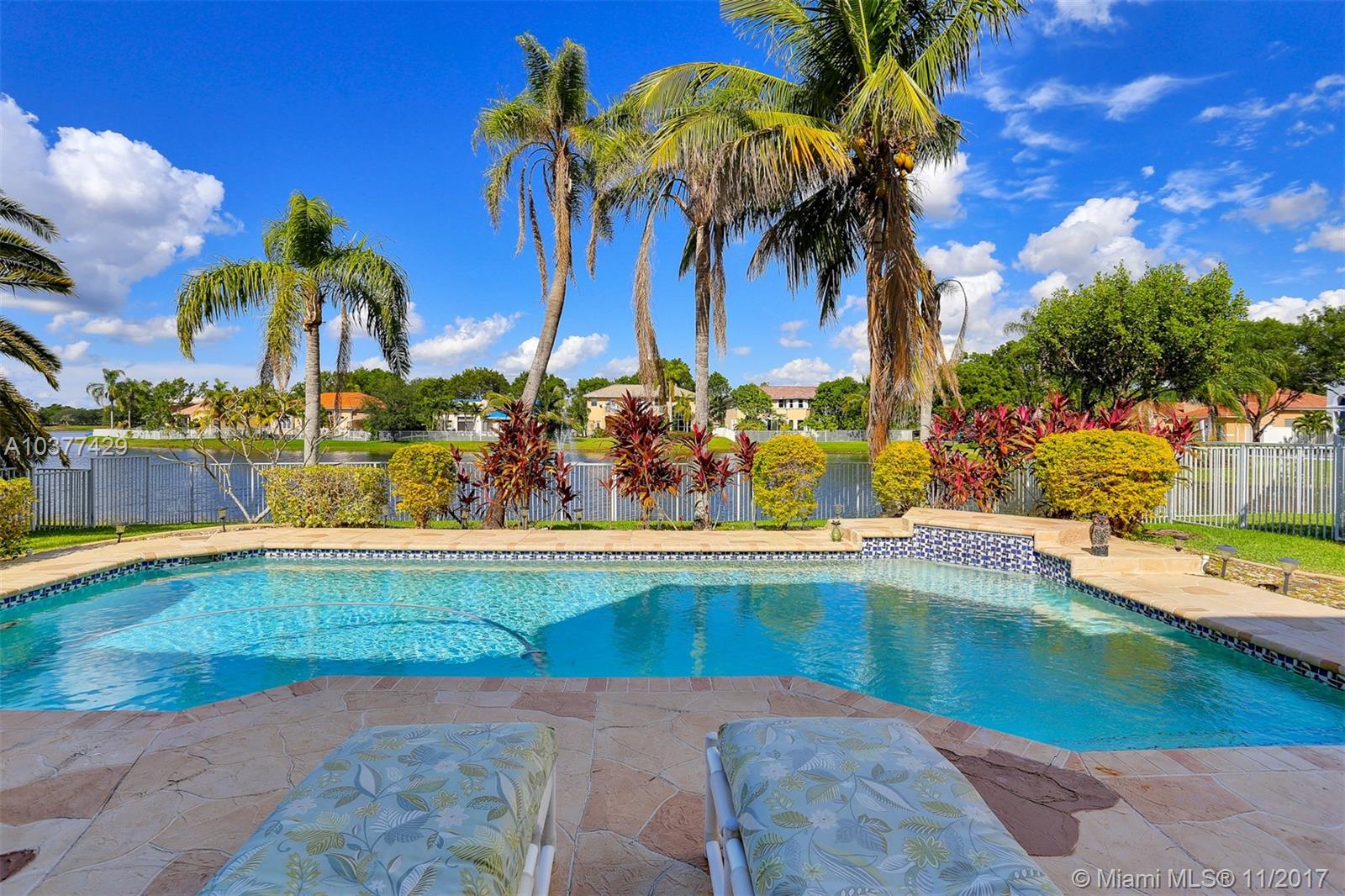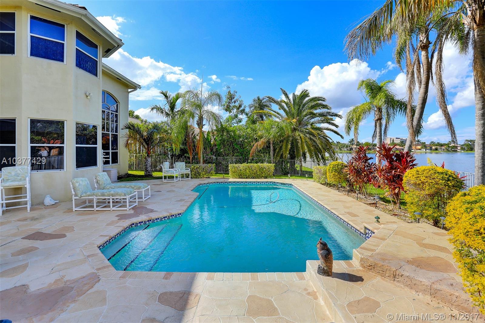 Look no further! This gorgeous pool home sits on a wonderful lake with fantastic tranquil views. Soaring ceilings the minute you walk in, lots of windows and natural lights. 1 bedroom downstairs! Open kitchen with breakfast area overlooking the lake. All tiled on 1st floor. Huge Master Bedroom with double door entry, a separate sit-in area large enough for another bedroom. Master has real hardwood floors. wonderful walk in closet, , Updated Master bathroom with whirlpool spa. Laundry chute in hallway upstairs.The outside features a heated pool, stamped concrete patio and a large electrical retracting butterfly awning. This home is the perfect Florida living!