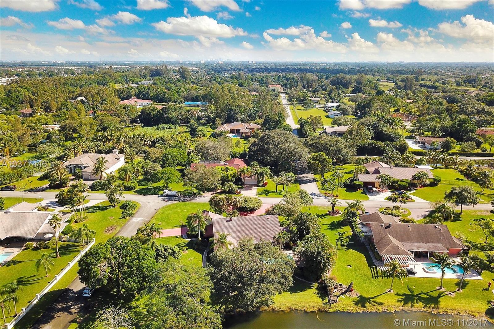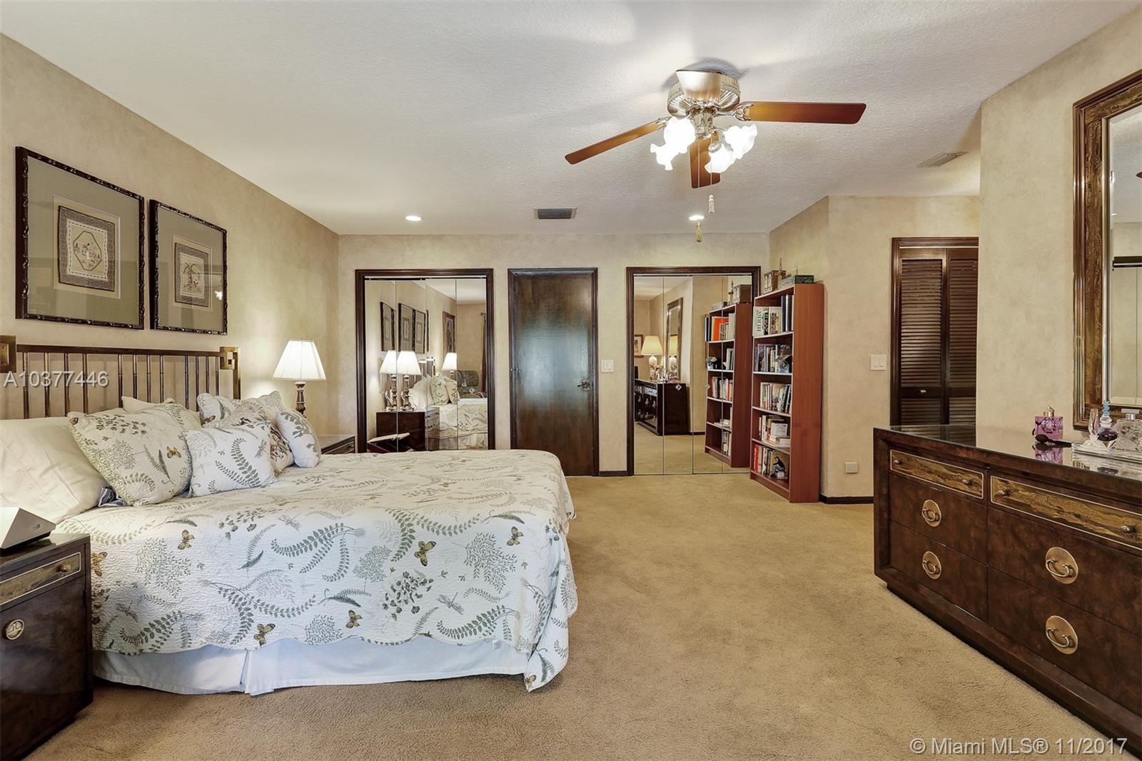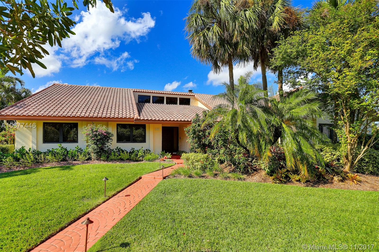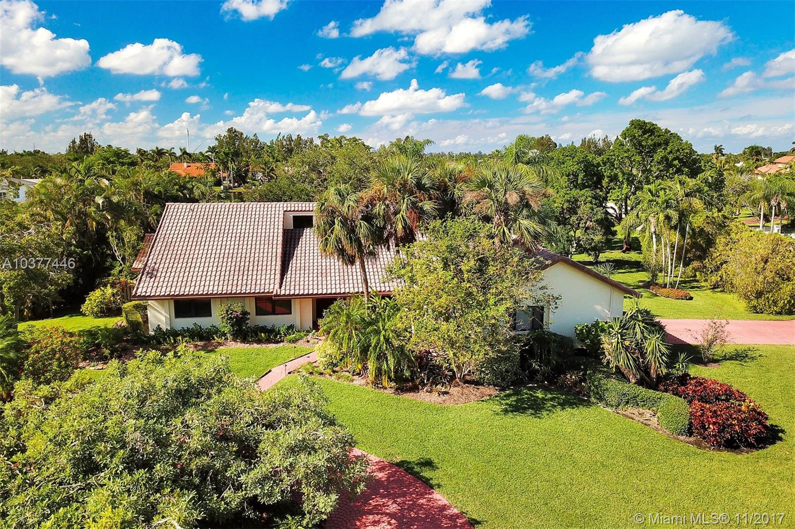 An architectural beauty! This waterfront pool home sits on a tranquil lake with breathtaking views. The lot is a builder's acre, the minute you walk in, you are greeted with 18 ft' soaring cedar ceilings , natural lights, lake views and a wonderful open floor plan. Living room features a sunken fireplace area with Old Chicago bricks accent, remodeled kitchen with silestone countertops. Large Master bedroom with a dressing area, gorgeous remodeled Master bath with a large walk in shower and floor to ceiling windows overlooking an atrium .Private mother-in-law wing with bath and cabana pool door. 80% hurricane windows. Central vac system. Two central air units.Stamped concrete front circle driveway and side driveway to garage. Fantastic 2 level patio area with amazing lakeviews!