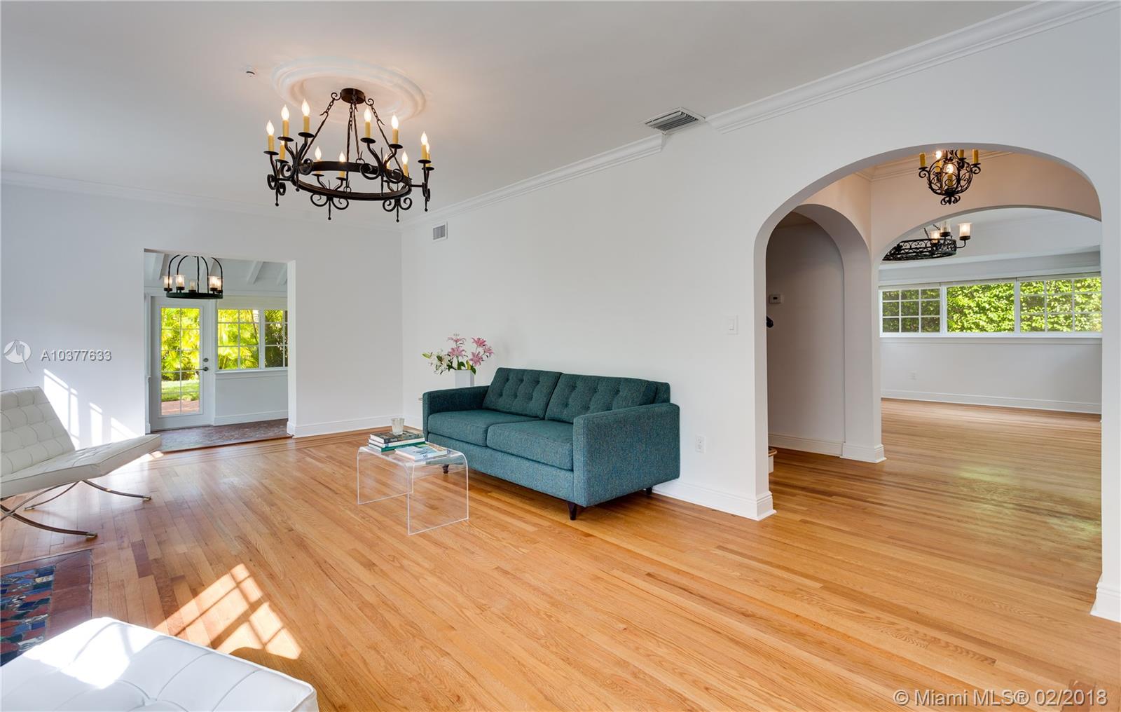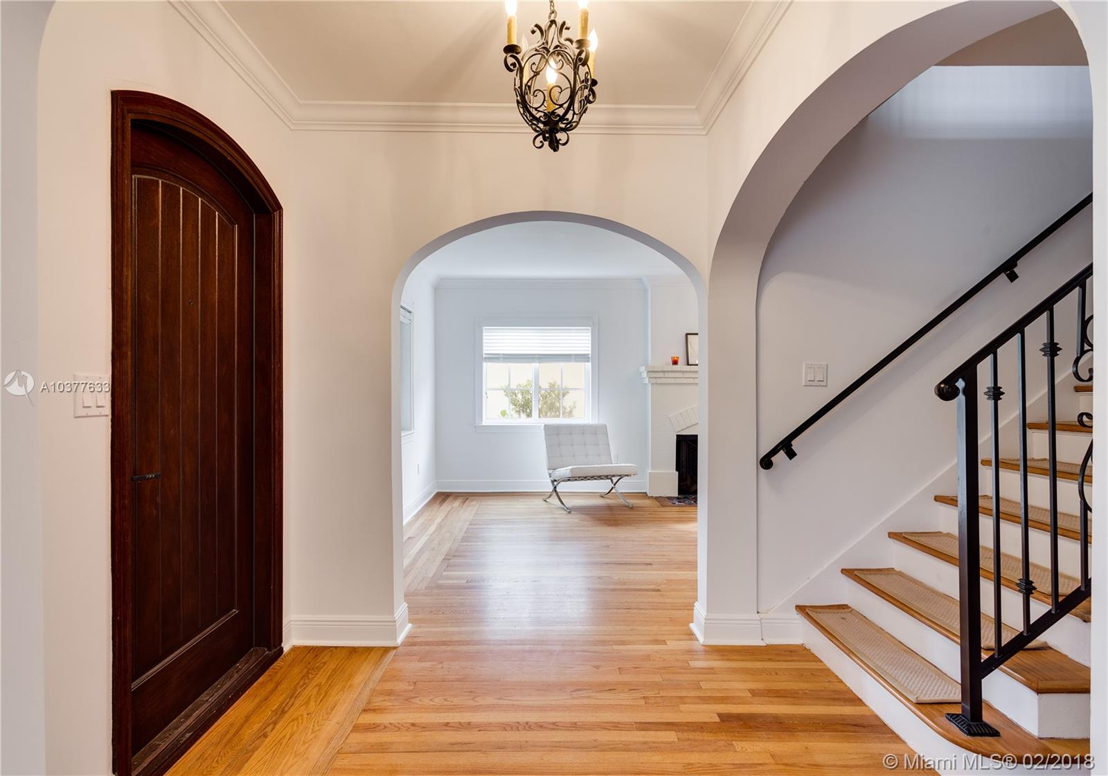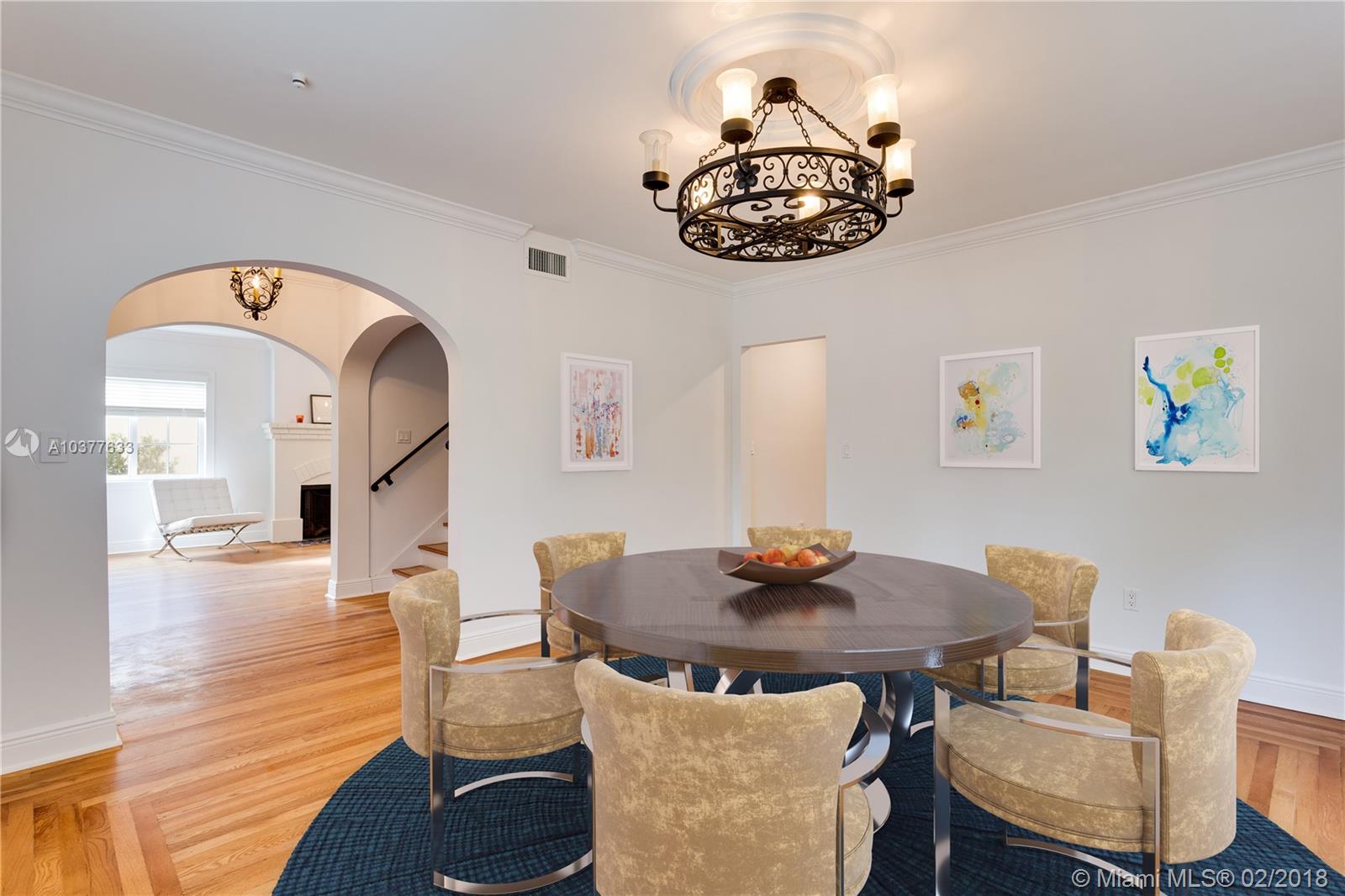 Turn-key, beautifully updated classic 1920's 2-story "Old Spanish" style 4/3.5 on quiet, low traffic Coral Gables street within walking distance to UM campus and in the David Fairchild School District. This is an unusually spacious vintage home with big rooms, big closets and high ceilings. New kitchen, new baths, impact doors and windows. 3/2.5 main house with a 1/1 guest house and a 1 car garage. Center hall stairwell foyer, large formal dining room, 23' long living room with fireplace. 17'X13' master bedroom with 10'X6' master closet
